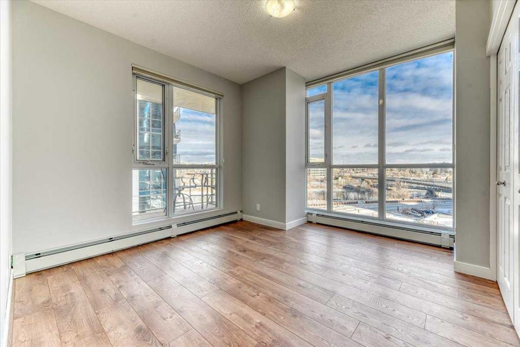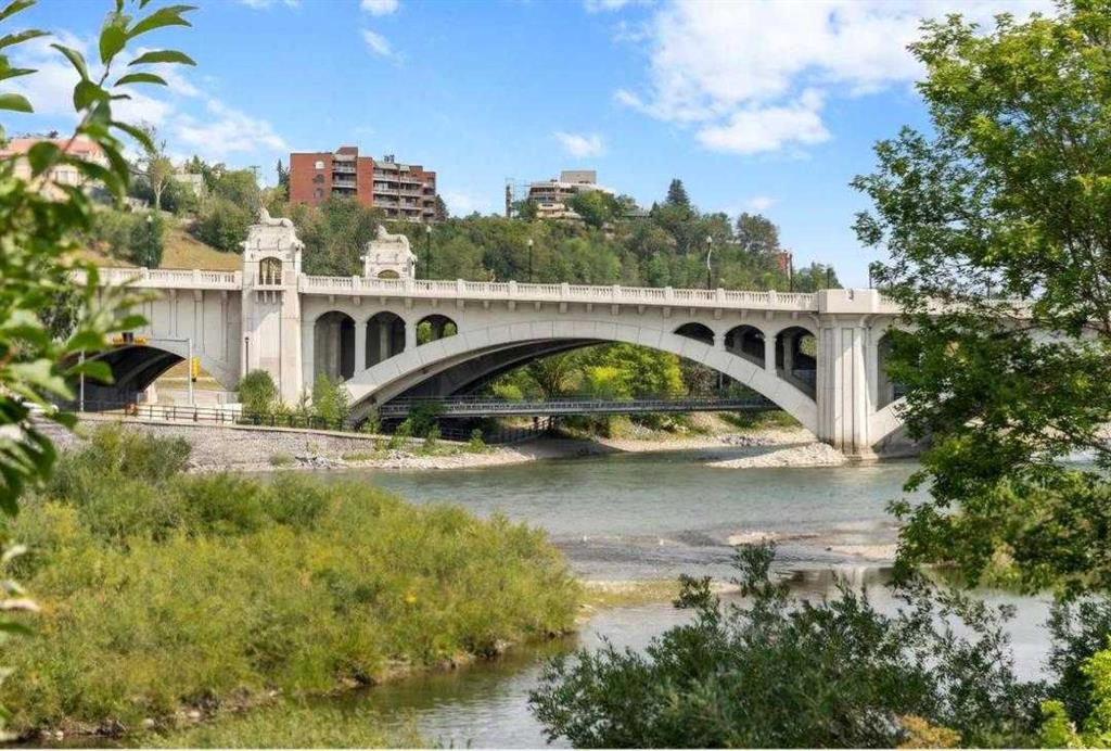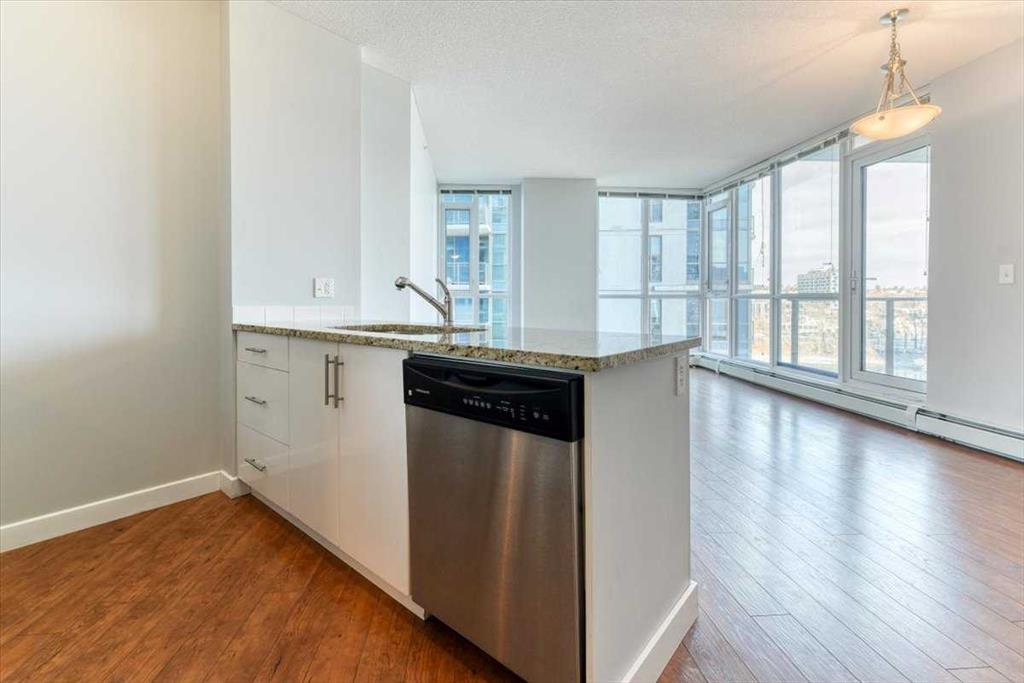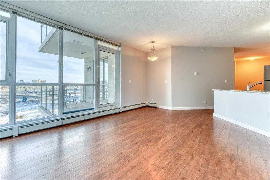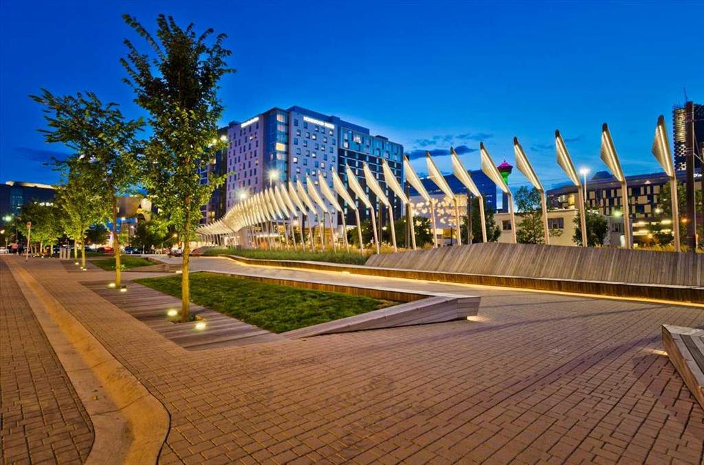 Welcome to Riverfront Pointe, where this splendid 2-Bedroom, 2-Bathroom, 1 heated underground parking stall Condo awaits. Enjoy Panoramic views of the river and lush river valley from every window, including the Balcony. The open-concept kitchen, dining and living area is ideal for entertaining, enhanced by 9-foot ceilings and abundance of natural light. Convenience is key with in-suite laundry, and fully equipped fitness room. Enjoy the modern kitchen, granite countertop and SS appliances. Stroll to trendy restaurants, live music venues, the world-class Library, and scenic Bow River Pathways. Hurry and schedule your showing, and make this your Downtown Oasis.