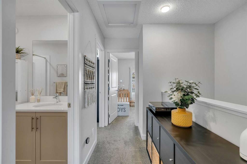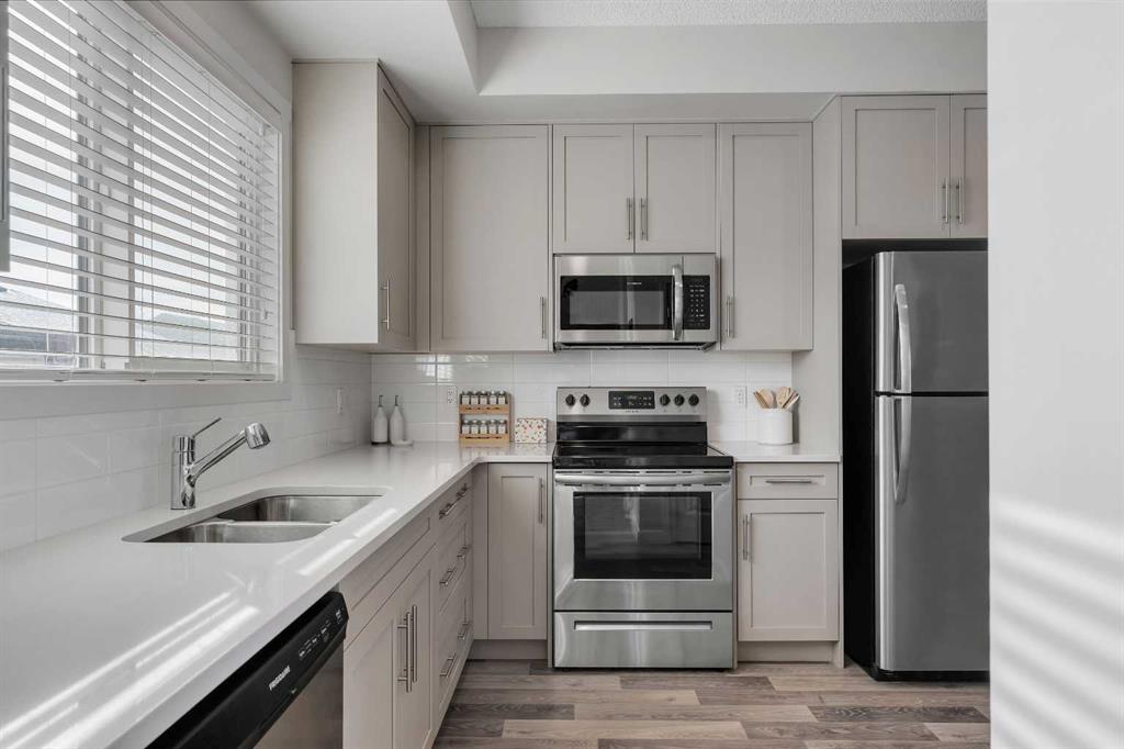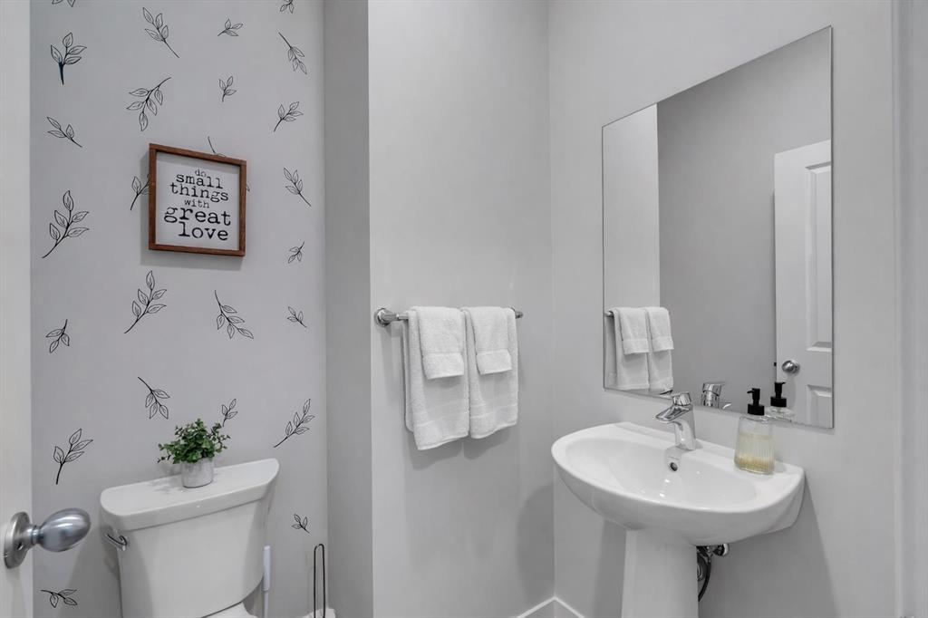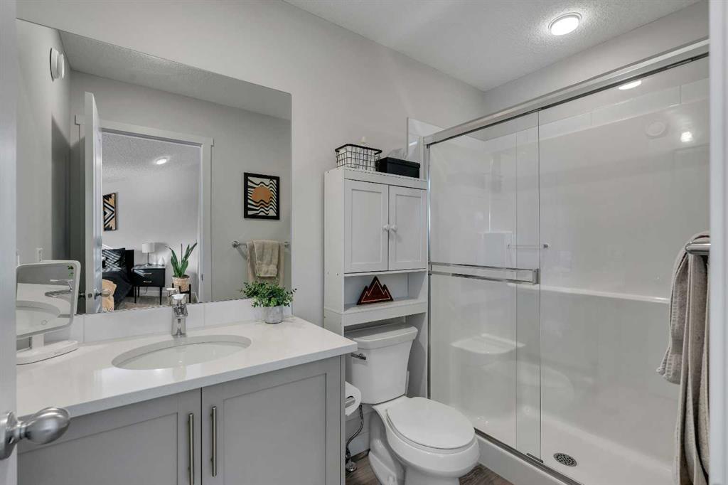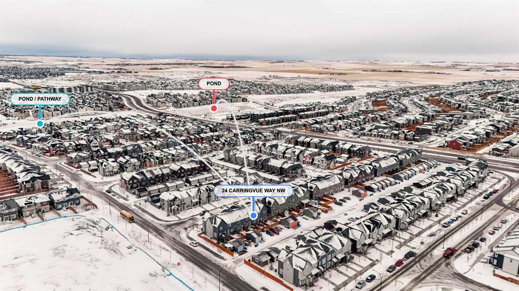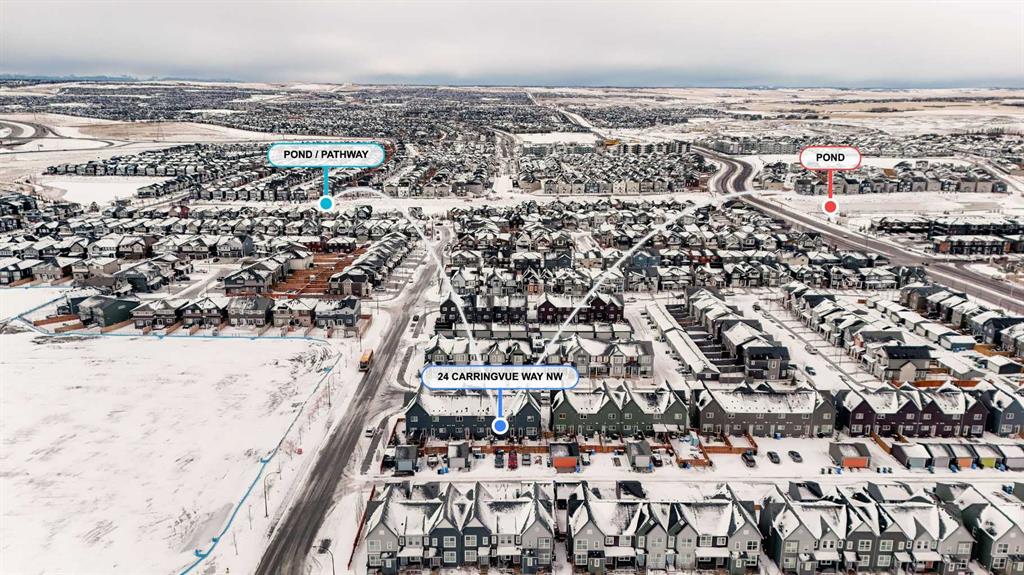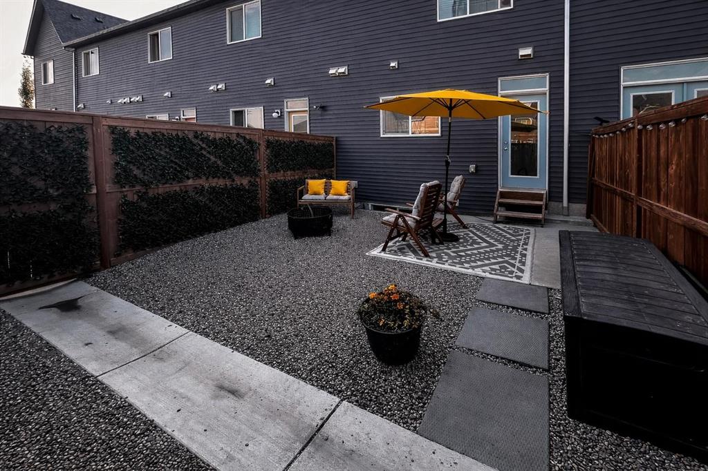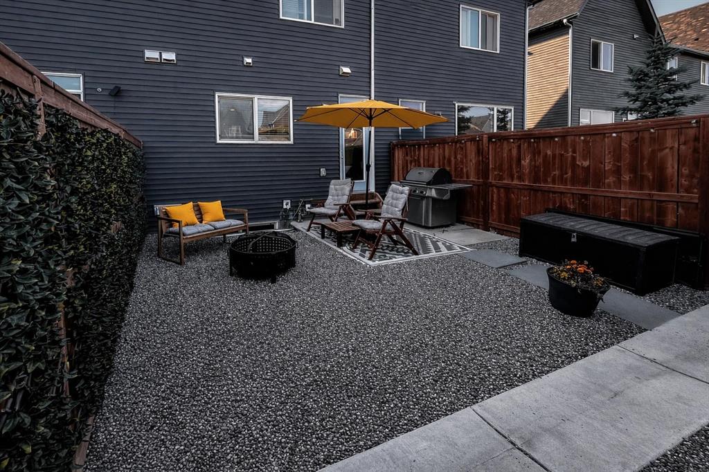 **Open House Sat. April 4 from 12-3p** NO CONDO FEES and MOVE-IN READY, this 2021-built 3-bedroom, 2.5-bath townhome in Carrington offers 1,224 sq.ft. above grade, a professionally finished basement, private fenced yard, and private parking for 2 vehicles. With east–west exposure, the home is filled with natural light throughout the day, and the open-concept main floor features quartz countertops carried throughout the home, stainless steel appliances, high ceilings, and a functional layout designed for everyday living and entertaining. Upstairs you’ll find three bedrooms, including a primary suite with walk-in closet and private 3-piece ensuite, along with a full 4-piece bathroom. The finished basement adds valuable additional living space ideal for a second living room, home office, gym, or media room, while still offering a large storage and utility area. Outside, the low-maintenance private backyard includes a gas BBQ line and opens to the rear parking area with wiring rough-in for a future garage if desired. Located on a quiet street steps from Carrington’s pathway network, parks, and green space, with quick access to Stoney Trail and nearby shopping and amenities, this home offers a great combination of space, flexibility, and long-term value without condo fees.