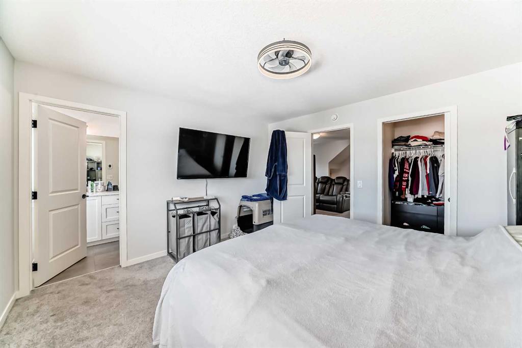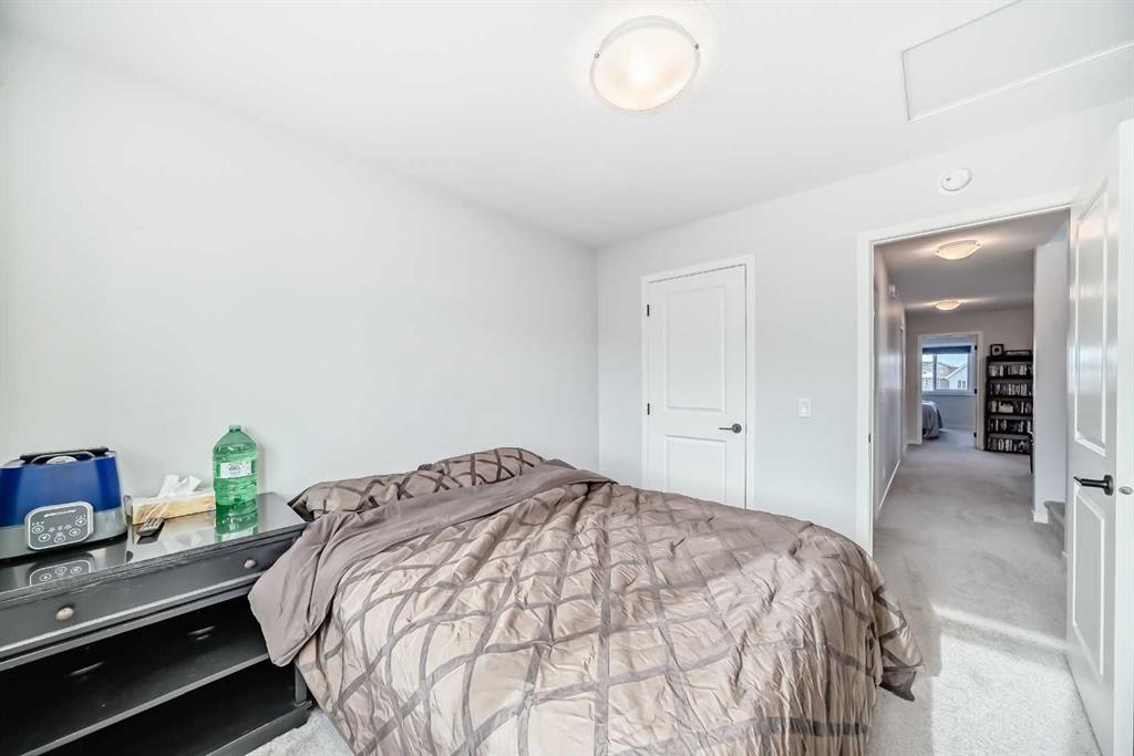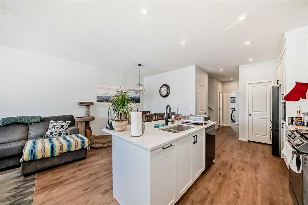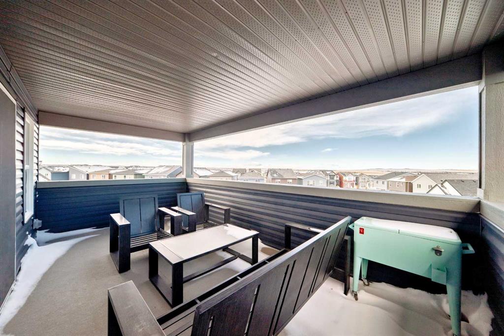 Welcome to this exceptional 2,200+ sq ft air conditioned three-storey home in the vibrant community of Livingston —a property thoughtfully designed for generational living without compromising style or comfort. Step inside to a bright, open main level featuring 9 ft ceilings & luxury vinyl plank flooring. The main floor includes a spacious bedroom and a full 3 piece bathroom, ideal for multi generational families, guests, or a private home office. At the heart of the home, the modern island kitchen impresses with smart Samsung appliances, Quartz countertops, ample cabinetry, pantry and seamless flow into the dining and living areas—perfect for everyday living and entertaining. Upstairs, you’ll find three generous bedrooms, including a serene primary suite, complete with a walk-in closet and 5 pce ensuite with heated floor, along with convenient laundry, 4 pce bath and well-appointed secondary bedrooms. The third level elevates your lifestyle with a large recreation room and access to a covered rooftop patio offering beautiful mountain views—a rare and highly desirable feature in the community. The basement includes a 1 bedroom illegal suite, complete with its own kitchen, living area and laundry, providing excellent flexibility for extended family. This home is fully equipped with triple-pane windows and on demand hot water to enhance energy efficiency and year-round comfort. Outside, a heated triple detached garage offers abundant parking and storage. Rounding out this home’s impressive list of features is 220 Amp power and water softener/dechlorinater and exterior soffit lighting. Located in one of Calgary’s fastest-growing master-planned communities, this property delivers space, versatility, and modern comfort in a prime location.