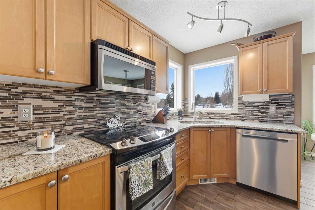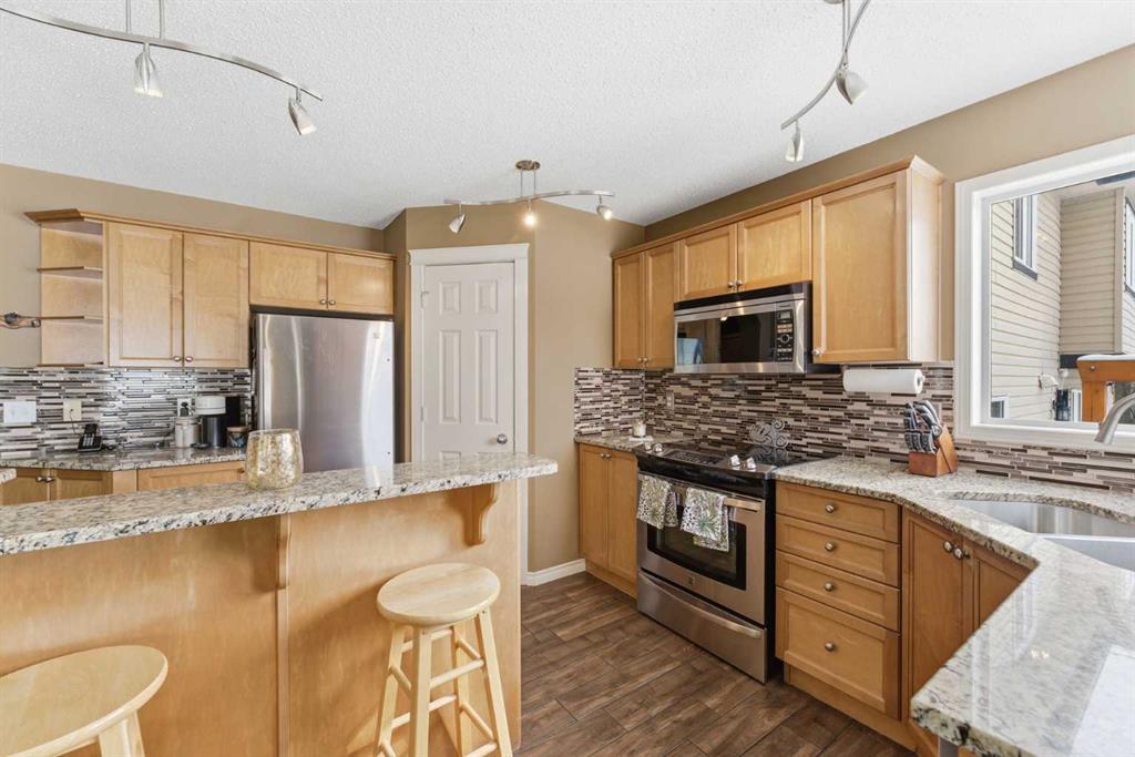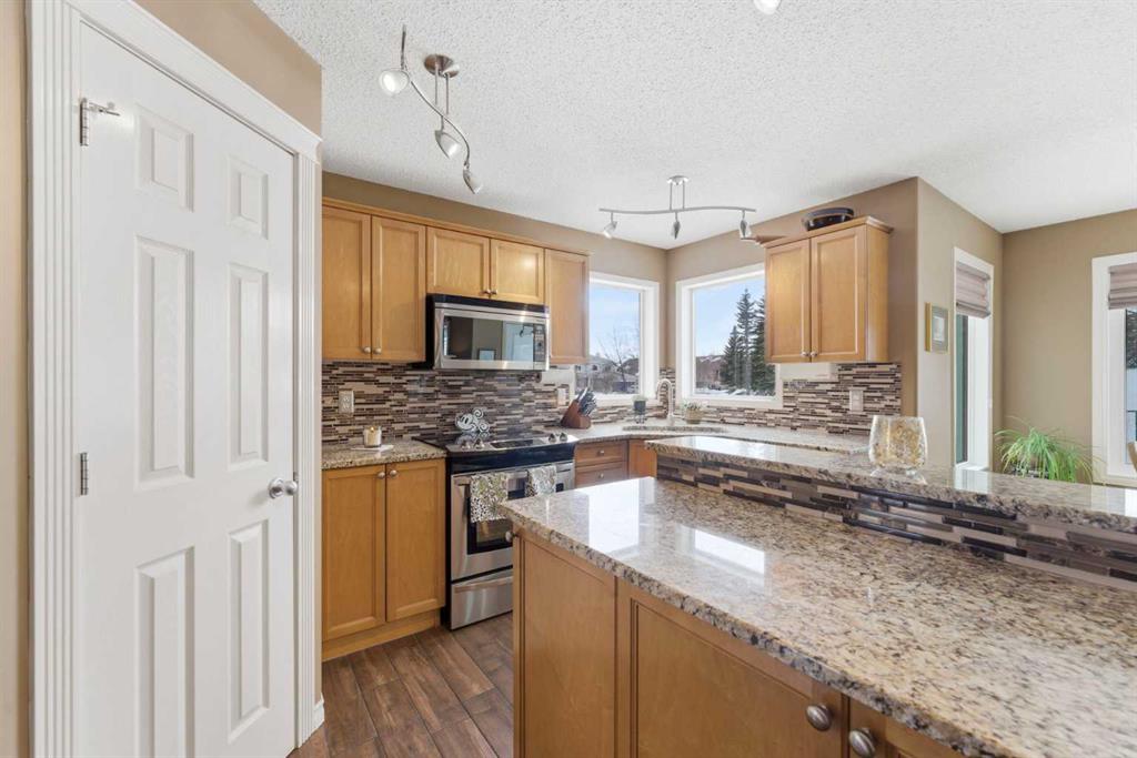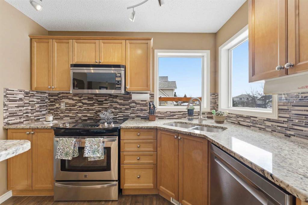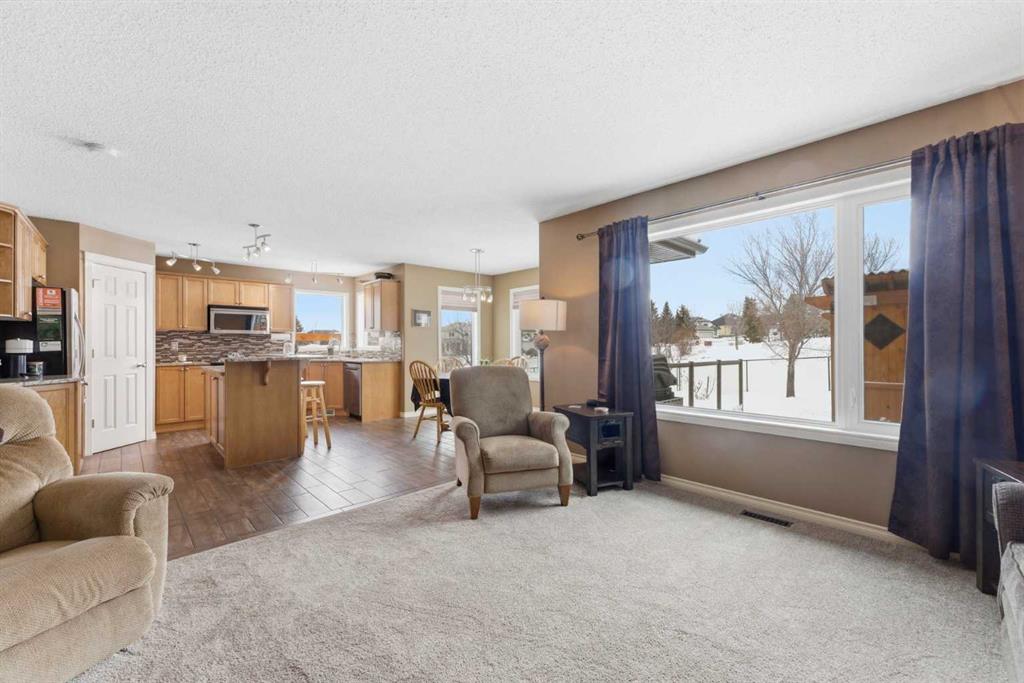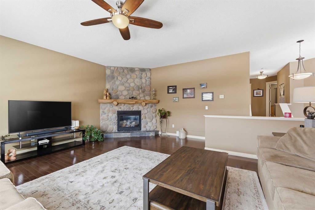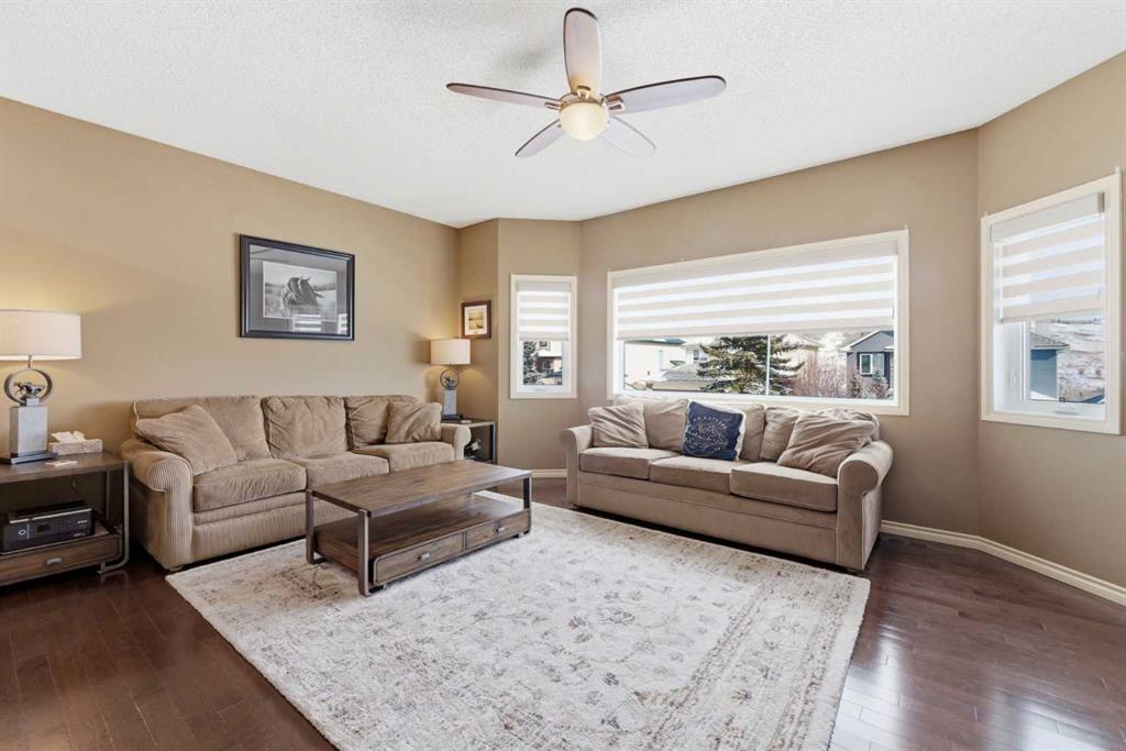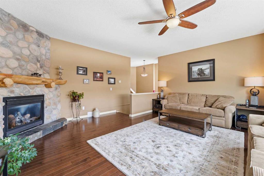 Backing onto a green space, this well cared-for 2-storey home is offered by the original owners. This 3-bdrm residence features an open-concept layout with warm earthy tones, hardwood and tile flooring, and a kitchen adorned with maple cabinetry, granite counters, an island, and a walk-in-pantry. The large bonus room boasts 9' ceilings, a stone feature wall with fireplace, and stunning sunrise valley views. The primary suite comes complete with a WIC, a 5-pc ensuite, and a mountain vista sunset! Enjoy peace of mind with LUX triple-pane windows (transferable warranty), new doors (front & back), a high-efficiency furnace, and central AC (2023). The professionally finished basement includes a family room, a 4th bedroom which can easily become a home office, and a furnace/storage area. Two egress windows and a 4-pc bath finish this space. Outside, the cedar deck with privacy glass leads to a 2-man hot tub inside the pergola, garden, and mature trees. The heated/insulated double garage includes a workbench and overhead storage. There’s a specific kind of quiet you only find in Gleneagles. This home has been meticulously kept, allowing you to skip the renovations and head straight to the trails. With the Glenbow Ranch Provincial Park as your neighbour, you have instant access to river views and kilometers of paved paths. It’s rare to find a spot that feels this secluded while staying so well-connected to the heart of Cochrane. Truly a pristine home in a prime location! Call your favourite Realtor® to book your private showing today!