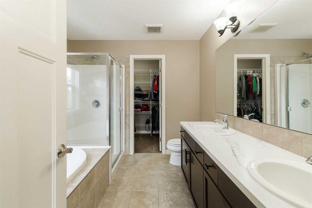 (Open House Sunday April 26 from 2:00 - 4:00 PM) Start spring in your new Dream Home in the family friendly lake community of Auburn Bay, where year-round recreation and an exceptional lifestyle await. This beautiful home welcomes you with rich hardwood floors and large windows streaming in natural light, creating a warm and inviting atmosphere. The living room, complete with a cozy gas fireplace, is perfect for relaxing evenings, while the dining room with a patio door creates a seamless flow to the backyard, ideal for both indoor gatherings and outdoor entertaining as the warmer weather arrives. The gourmet kitchen is designed to be both beautiful and practical, featuring granite countertops, stainless steel appliances, abundant cabinetry and prep space, and a walk-in pantry—an inviting place to cook, gather, and stay connected with family and friends. A welcoming front entry makes a great first impression, while the mudroom offers a smart, everyday drop zone to keep things organized and out of sight. Upstairs offers a spacious bonus room perfect for family movie nights, along with a dedicated office area for work or study. The primary suite is a true retreat, offering plenty of space for a king-sized bed, along with a spa-inspired 5-piece ensuite featuring a relaxing soaker tub and a walk-in closet. Two additional generously sized bedrooms provide the perfect setup for a growing family, while a well-appointed 4-piece bathroom and the convenience of upper-floor laundry complete this level. The unfinished basement, with two egress windows, offers excellent potential for future development and is ready for your personal touch. This home is move-in ready and thoughtfully updated, including a brand new furnace (February 2026), newer washer and dryer and hot water tank (2023), and central air conditioning (2022) to keep you cool and comfortable all summer long. Step outside to enjoy the private backyard, where a lovely deck sets the stage for summer BBQs and there’s plenty of room for kids to play. A double attached garage provides ample parking and storage. Ideally located just a short walk to schools and Auburn Bay Lake, with easy access to shopping, amenities, and Stoney Trail, this home offers the perfect blend of comfort, community, and convenience