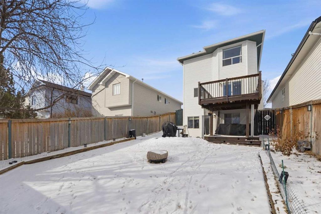 **PRICE REDUCED** Packed with value and EXTENSIVE UPGRADES, this bright, functional home offers 3 bedrooms, 3 bathrooms, and 1,674 sq ft of developed living space — delivering true turnkey convenience. Major updates include a NEW KITCHEN, refreshed bathrooms, full Poly-B replacement, new hot water tank (2024), plus newer shingles, siding (2025), and garage door. The main floor features an open-concept layout with hardwood flooring, a spacious living and dining area, and a sun-filled kitchen complete with stainless steel appliances, oversized fridge, massive pantry, and abundant cabinetry. Step outside to a large deck overlooking the expansive, fully fenced backyard — perfect for entertaining or unwinding. Upstairs offers 3 generous bedrooms, including a comfortable primary suite with ensuite, plus a full main bath. The fully developed WALKOUT BASEMENT adds significant living space with a cozy gas fireplace, oversized rec area, and excellent storage. Set on a large lot with back lane access, this home suits first-time buyers, growing families, or investors looking for long-term upside. Ideally located with quick access to Deerfoot Trail, and close to shopping, golf, parks, and schools. A rare opportunity in a mature, established community!