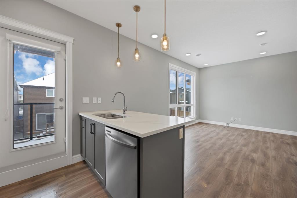 Welcome to this beautifully maintained 2-bedroom, 2.5-bathroom townhome offering low condo fees in the vibrant and growing community of Savanna. Thoughtfully designed with a bright open-concept layout, this home provides comfortable living with modern finishes and functional space throughout. The modern kitchen features stainless steel appliances, ample cabinetry, and a spacious island, seamlessly connecting to the dining and living areas — ideal for both everyday living and entertaining. Large windows allow plenty of natural light to fill the home, creating a warm and inviting atmosphere. Upstairs, the primary bedroom retreat includes a walk-in closet and private ensuite, while an additional bedroom provide flexibility for family, guests, or a home office. Step outside to the large balcony right from your kitchen, a perfect spot to enjoy morning coffee or unwind in the evening. Located just steps from schools, parks, walking paths, shopping, and public transit, this home offers exceptional convenience with quick access to major routes and nearby amenities. Whether you're a first-time buyer, downsizer, or investor, this property presents an excellent opportunity to own a stylish and low-maintenance home in one of Calgary’s fastest-growing communities. ***virtual photos used for representation purposes only***