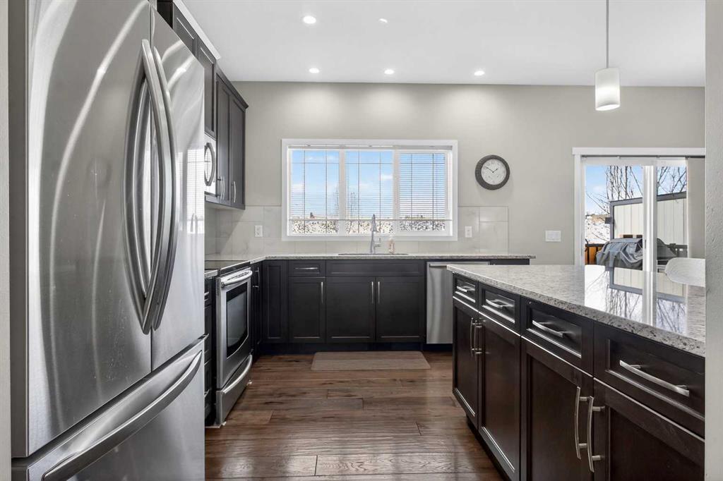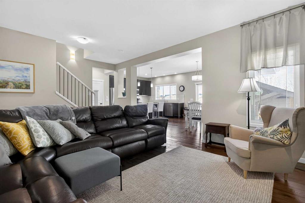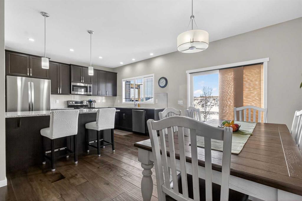 Beautiful family home BACKING ONTO GREEN SPACE with a WEST-FACING YARD in community of Reunion in Airdrie! Offering 2,181.56 sq ft above grade plus an additional 828.06 sq ft unfinished basement, allows you to develop further for your family's needs. The bright and open main floor features 9’ ceilings, engineered hardwood flooring, and a gourmet kitchen with granite countertops, stainless steel appliances, and ample cabinetry, perfect for the everyday chef. Large windows frame the peaceful greenspace views and fill the home with natural light. Upstairs you’ll find a spacious bonus room, ideal for a kids’ play area or quiet study space, along with a huge primary retreat featuring extended ceilings, large walk-in closet, and a spa-inspired 5 pc ensuite with dual sinks, walk-in shower, and relaxing soaker tub. Two secondary bedrooms, main 4 pc bath, and upstairs laundry complete this level. The home backs onto a peaceful walking path, green space and playground. Ideally located close to Herons Crossing School, A.E. Bowers Elementary, and W.H. Croxford High School, with shopping and amenities nearby including Coopers Town Promenade, Sierra Springs Shopping District, Save-On-Foods, Sobeys, and Walmart Supercentre. Enjoy quick access to Veterans Boulevard, Yankee Valley Boulevard, and Highway 2, making commuting to Calgary simple and convenient. This fantastic home combines location, space, and lifestyle in one of Airdrie’s most desirable communities.