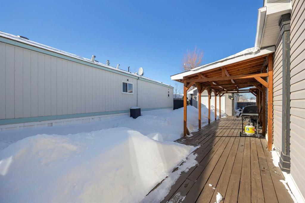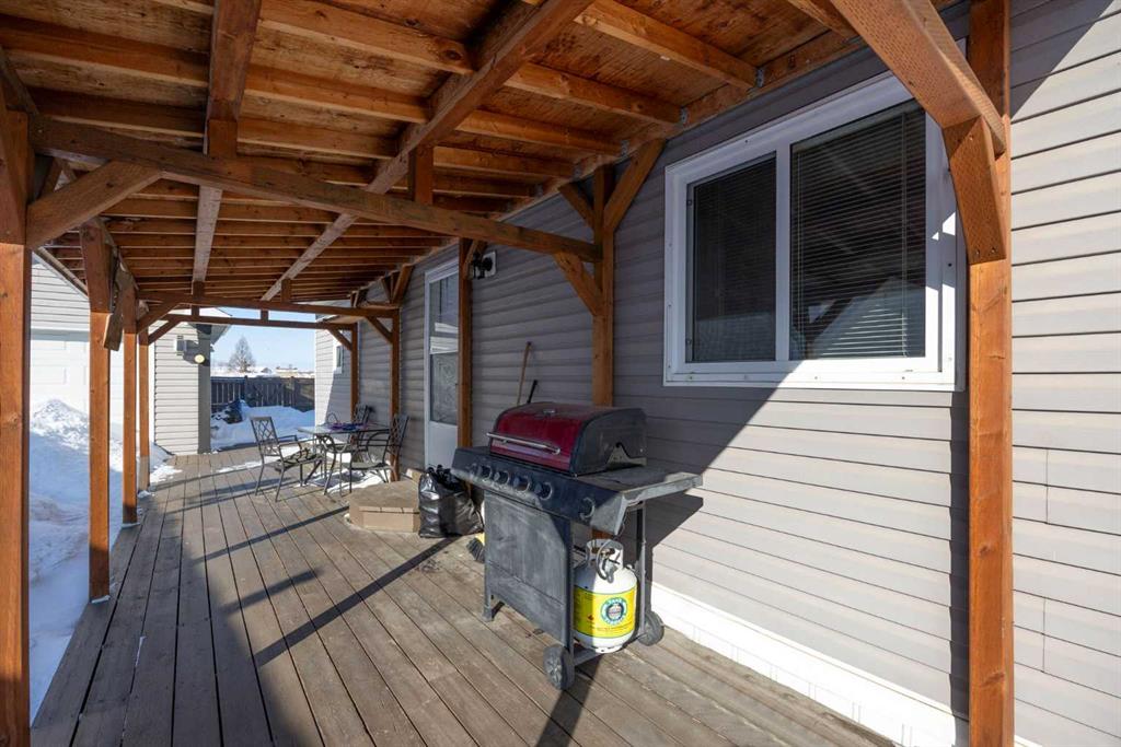 Welcome to 172 Gregoire Crescent — a spacious 3-bedroom, 2-bath home offering over 1,500 sq ft of comfortable living space. Situated on a 4,700+ sq ft lot backing onto green space with NO NEIGHBOURS BEHIND, back-alley access and additional space for parking or unloading off-road vehicles. Inside, the home features a bright and functional layout with a large living room with electric fireplace, a dedicated dining area, and a spacious kitchen complete with ample cabinetry, pantry, and generous counter space. The primary bedroom provides plenty of room to relax and includes a walk-in closet and a large 5-piece ensuite. Two additional bedrooms, a full 4-piece bathroom, and a separate laundry room complete the interior. Flooring throughout the home includes carpet and linoleum for easy maintenance. Step outside to enjoy your morning coffee on the large deck. The wide-opening fence allows convenient access to the fully fenced yard, making it ideal for those with recreational vehicles. The insulated shed is electrically heated and features a loft, providing excellent storage or workshop space. Paved driveway for 3 vehicles. Convenient access to nearby parks, playgrounds and shopping. Book your private showing today!