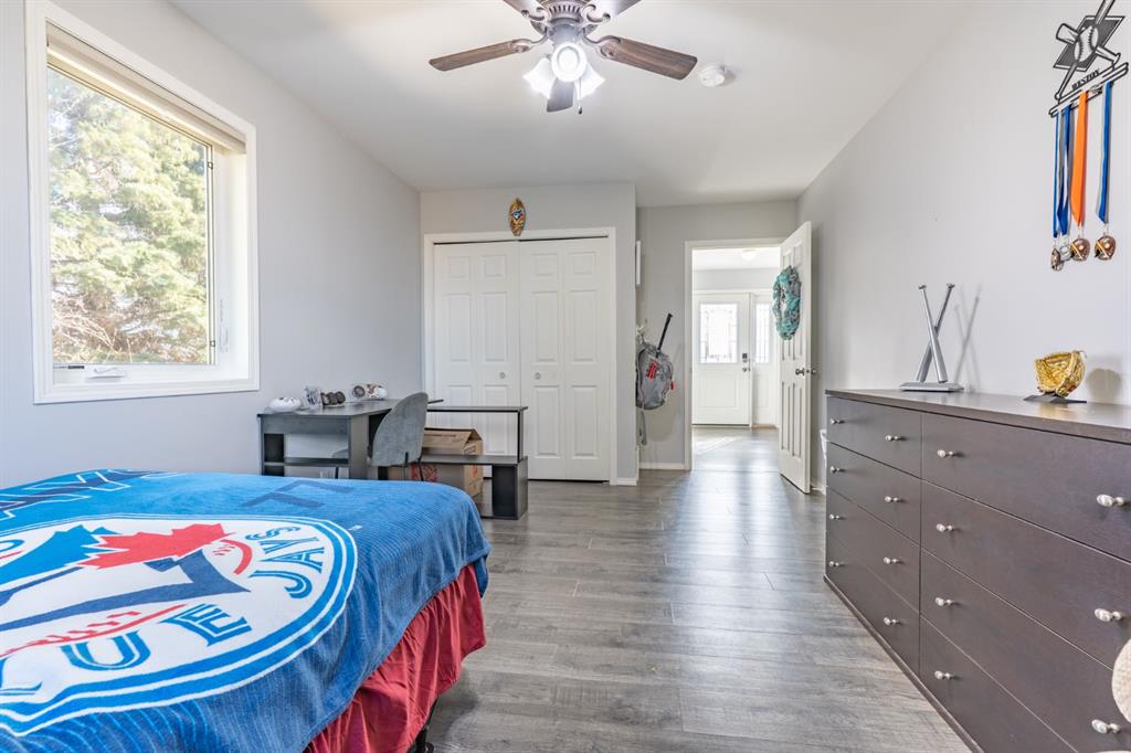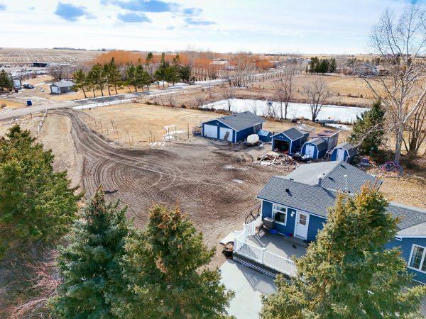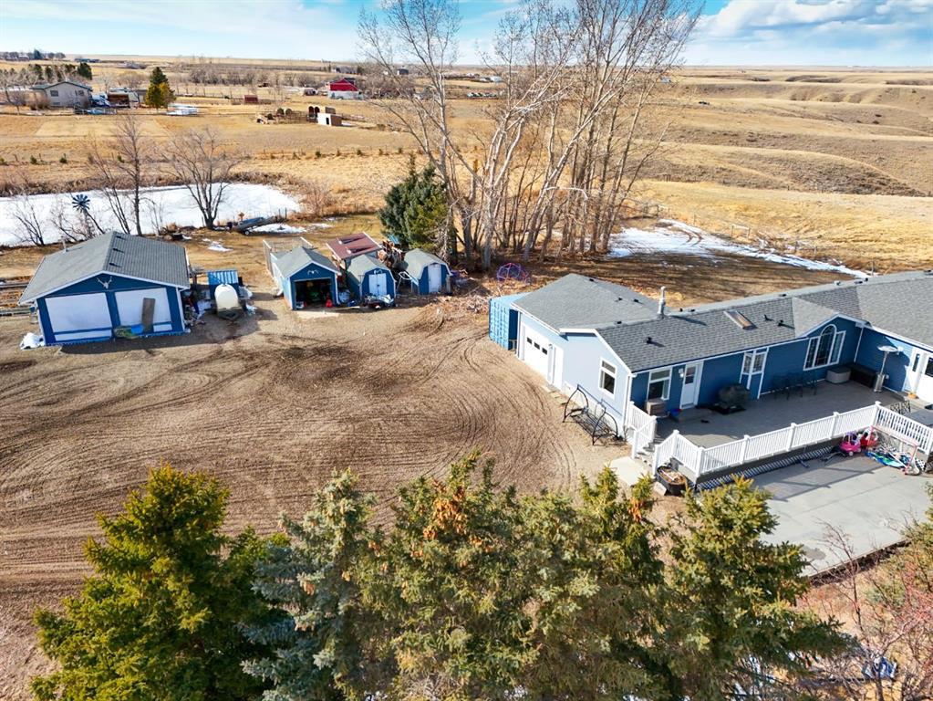 If you’ve been dreaming of wide open skies and peaceful prairie views without sacrificing convenience, this beautiful acreage may be exactly what you’ve been waiting for. Tucked away just 6 minutes from the city limits of Medicine Hat, this peaceful 4.94 acre acreage welcomes you with a long driveway, mature trees, and a sense of privacy that instantly sets the tone for country living. Step up onto the expansive deck and take in the incredible prairie landscape stretching out before you. It’s the perfect place to enjoy your morning coffee, host summer BBQs, or simply relax and watch the wide open skies that make acreage living so special. Inside, the home offers 1,871 sqft of living space, including a thoughtfully designed addition completed in 2016, all conveniently laid out on one level. A spacious entryway welcomes you in with plenty of room for coats, boots, and even a small sitting or play area where you can enjoy the natural light coming through the windows. Just off the entry is the laundry room, while the hallway leads to the bright kitchen and dining area that creates a warm and functional gathering space. The adjoining living room features vaulted ceilings, a cozy gas fireplace, and a built-in counter area, perfect for a laptop workspace or organizing daily life. Down the hall you’ll find 4 bedrooms plus an office, including the primary bedroom with its own ensuite, along with three additional bedrooms and a full bathroom. At the end of the home is a functional mudroom that opens to the deck, complete with a walk-in closet for additional storage. The property also features a 21 x 16 attached oversized single garage AND 23 x 29 double detached garage with radiant heat. The home is serviced by a cistern for household water and SMRID irrigation for the yard. Additional features include two furnaces, central air conditioning, composite decking and a large patio area. The perfect setup for horses, ponies and chickens! A private slice of prairie living, just minutes from the city.