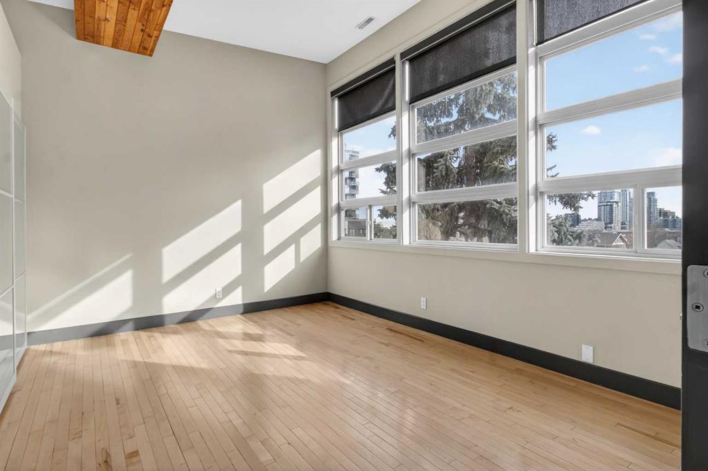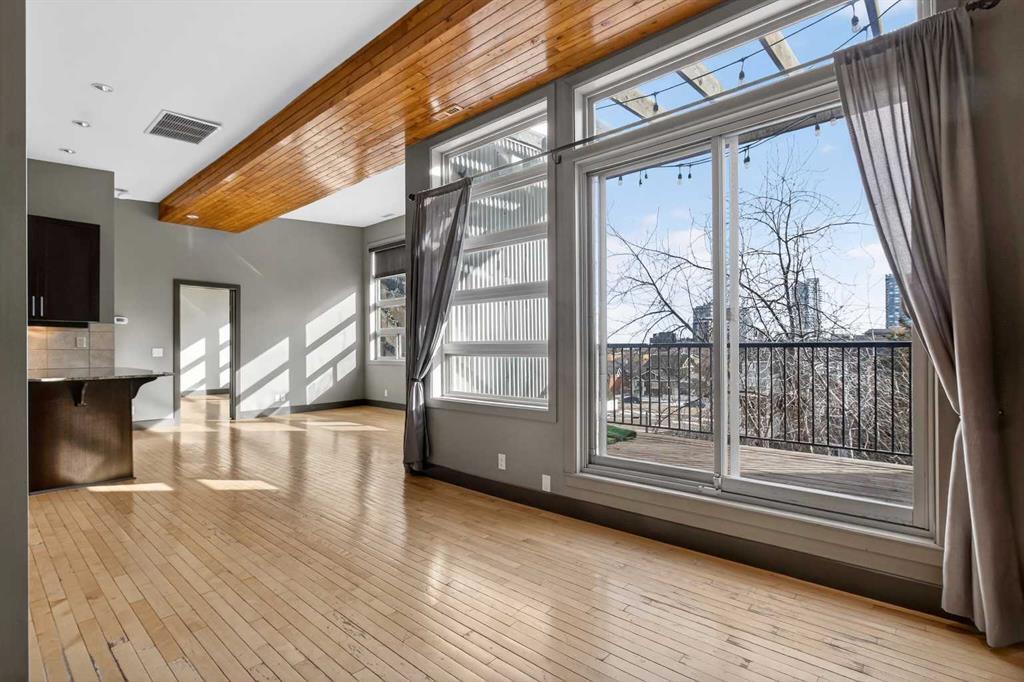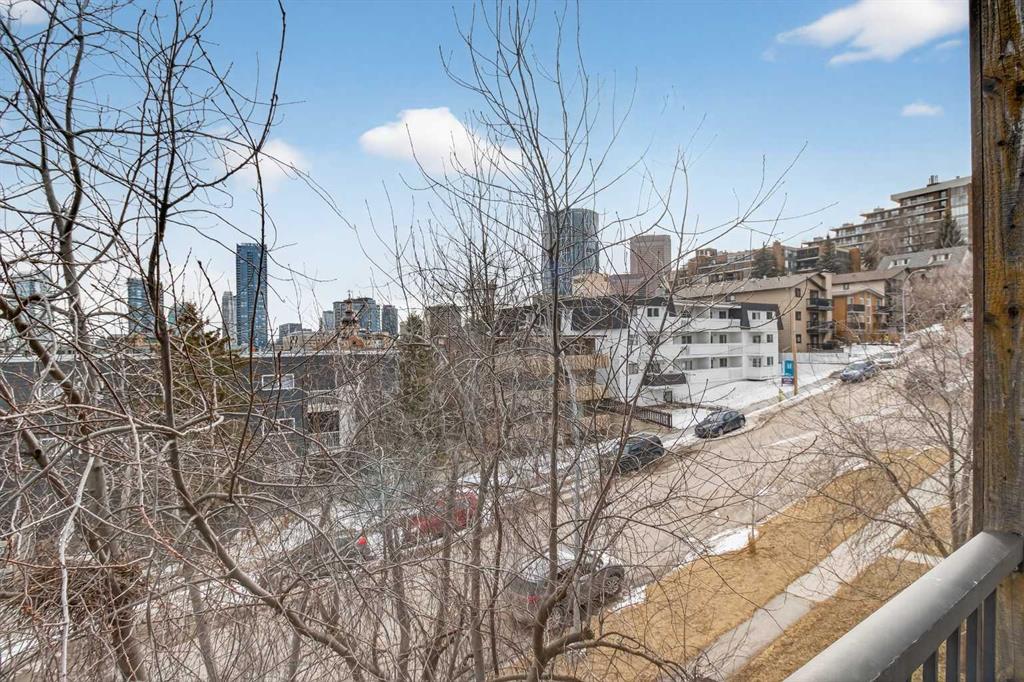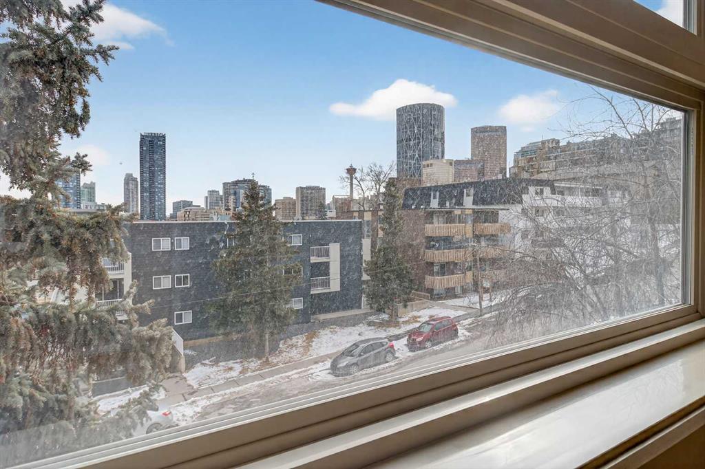 Experience luxury living at its finest in this stunning Crescent Heights penthouse, perfectly situated just moments from downtown. Boasting 2 bedrooms and 2 full bathrooms, this residence combines sophisticated design with unparalleled convenience. Step into the open-concept layout, enhanced by vaulted ceilings with striking accent beams and gleaming light-colored hardwood floors. South-facing windows flood the space with natural light while framing stunning city skyline views. Relax by the cozy gas fireplace or enjoy year-round comfort with central A/C. The gourmet kitchen is a chef’s dream, featuring stainless steel appliances, granite countertops, and a walk-in pantry, complemented by numerous thoughtful upgrades throughout. The spacious bedrooms offer both comfort and style, while the spa-inspired master suite includes a walk-in steam shower and double large closets. Step out from the living room onto the big balcony, perfect for BBQs and entertaining while enjoying spectacular views. Additional perks include 2 assigned covered parking stalls and its own assigned storage unit. Nestled in a prime inner-city location, you’re within walking distance to the trendy Bridgeland strip, Bow River, East Village, Kensington, Downtown, and the Bow River Pathway system. Explore nearby premier restaurants and lush city parks—everything you need for vibrant city living. This penthouse isn’t just a home; it’s a statement of style, comfort, and convenience. Don’t miss the chance to own this exceptional residence!