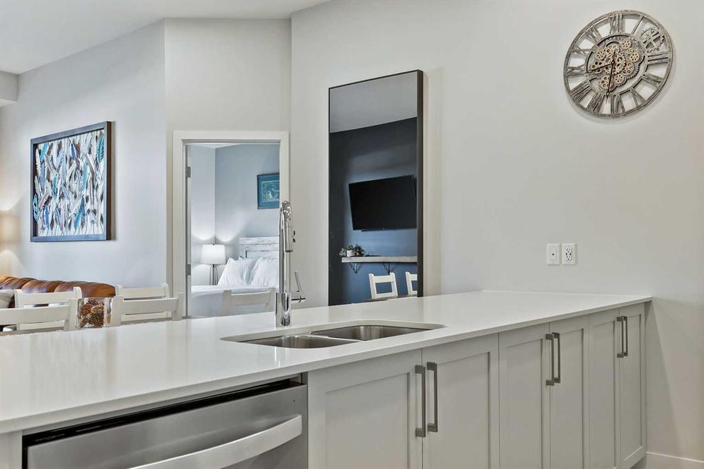 ** OPEN HOUSE SATURDAY 2-4** Prepare to be amazed by this beautiful main floor home at Les Jardins by Jayman BUILT! Step into this popular California split suite that will leave you in awe with is 10FT ceilings, expansive living spaces, large bedrooms and bathrooms plus a rare 33'4FT by 8'10FT patio - exclusive to only main floor homes! This outdoor space is perfect for any size dog, BBQ dinner parties or even relaxing on a hot summery day! Enjoy the luxury kitchen with QUARTZ counter tops, STAINLESS STEEL WHIRLPOOL APPLIANCES, a perfectly curated color palette that will make you feel right at home. As you enter the primary bedroom, you will be met with a large space with endless opportunity as well as a walk through closet, big enough for two, leading into the beautifully designed 3pc ensuite. Transitioning to the secondary bedroom, big enough to be a guest room or be used as an at home office and the main bath housing the relaxing tub / shower, you will notice the attention to details with design and execution in this home! This amazing unit includes the Washer and Dryer, Central Air Conditioning, high end fixtures and Smart Home Tech (Kasa light switches, Weiser Smart Lock, Ring Floodlight located above the exterior patio door and the Ecobee Smart Thermostat!!) Within the common areas of the building you will find countless amenities that will peak your interest in this fascinating community! With the State-Of-The Art FITNESS CENTRE , Bike Storage room, CCTV cameras, seating areas throughout, and last but not least, the 2 ACRE PARK inspired by the Gardens of France, you will step into this community and IMMEDITALY feel at home! Neighboring both Quarry park and Douglas Glen, there is an endless array of shopping, restaurants, schools, daycares as well as bikes paths and walking trails to Calgary's very own Bow River and Fish Creek Provincial Park to help feed any outdoor cravings you may have. If there is anything out of reach from the community, fear not, you have access to both Deerfoot Trail and Glenmore trail within a 5 min drive - making your commute downtown only 20 minutes! If this sounds like your new dream life, schedule your viewing today!