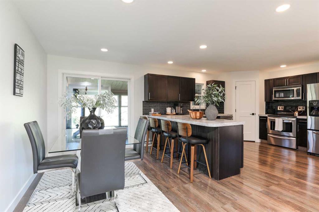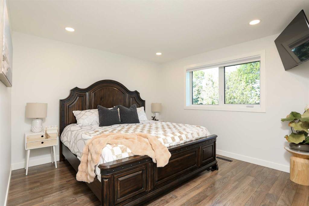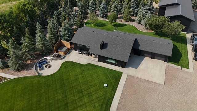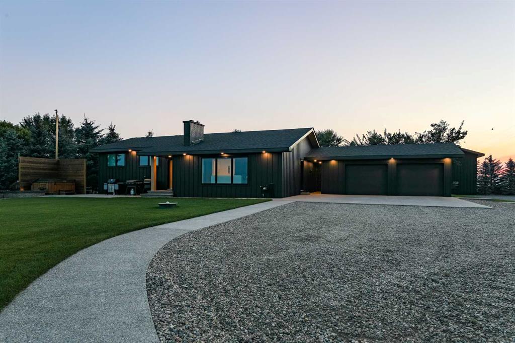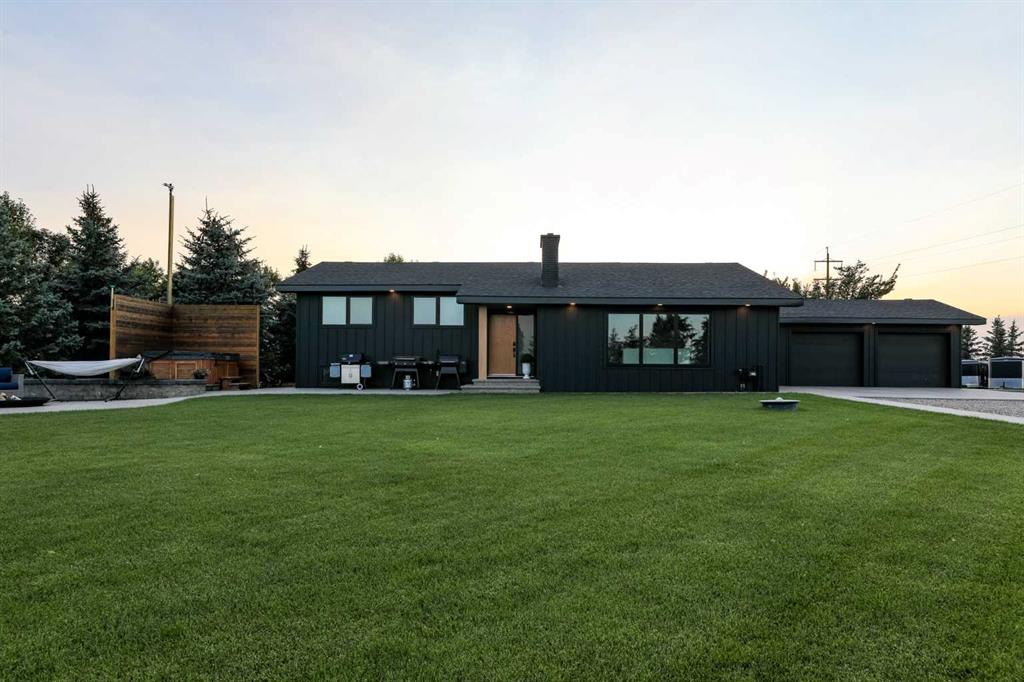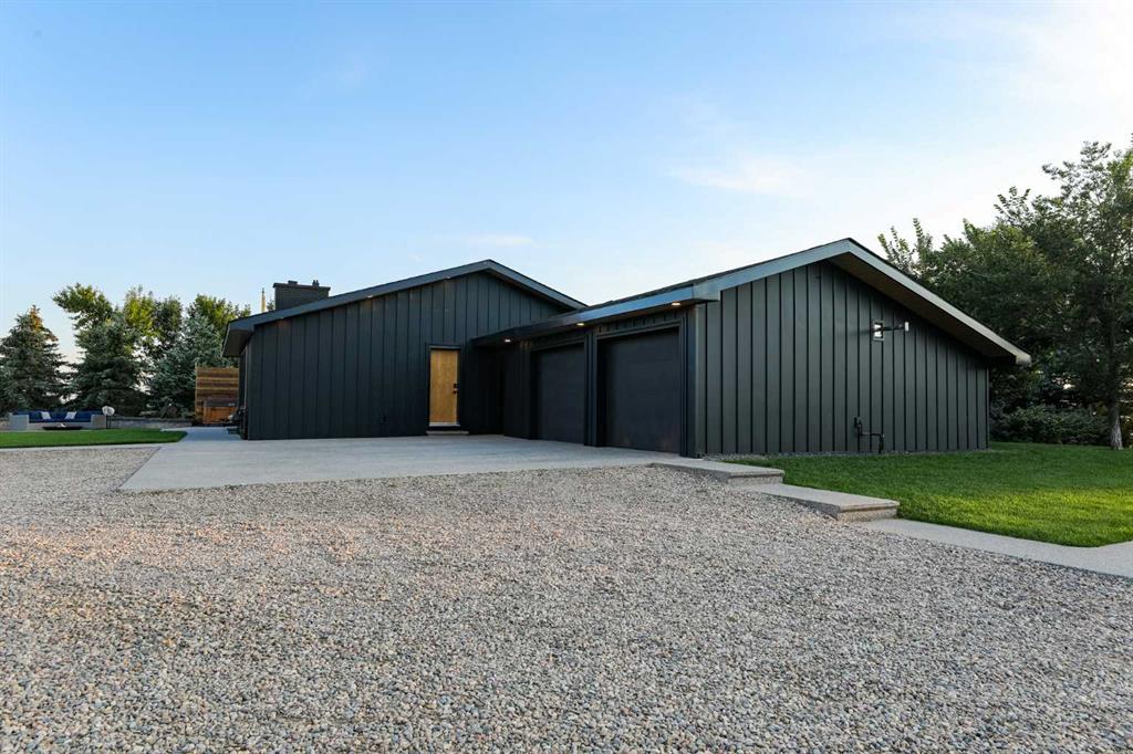 Beautifully renovated bungalow offering over 2,900 sq. ft. of developed living space** with 5 bedrooms and 2.5 bathrooms**, showcasing exceptional upgrades inside and out. This home has been meticulously updated to create a modern, comfortable space that truly feels brand new. The fully renovated interior features fresh paint, new trim, updated windows, and new doors throughout. The bathrooms have been tastefully upgraded, including a custom tile walk-in shower with modern fixtures, adding a touch of luxury to everyday living. Energy efficiency was a priority in the renovation, highlighted by staggered stud walls and new triple-pane windows. The exterior is equally impressive with an elegant board-and-batten finish complemented by light pine soffits, offering both style and low-maintenance durability. Additional upgrades include new eavestroughs, new garage doors, and a roof that is approximately four years old. The heated double attached garage with floor drain comfortably accommodates two full-sized trucks. Major mechanical upgrades provide peace of mind, including: * High-efficiency furnace with humidifier and new ducting * High-efficiency tankless hot water system * Central air conditioning * Thermostat-controlled gas fireplace plus two wood-burning options (fireplace and stove) * All new plumbing, venting, filtration, and water systems * Updated septic system The professionally landscaped yard has been designed for both relaxation and entertaining, featuring: * Exposed aggregate patios, curbing, and sidewalks * A beautiful stone firepit area with retaining wall and water feature * Mature trees with mulch beds and newer sod * Fully automated underground irrigation with 2” risers and drip irrigation for trees * A 750,000-gallon trout-stocked dugout * Arctic Spa saltwater hot tub For those needing space to work, build, or create, the outbuildings add incredible functionality: * Brand new 1,850 sq. ft. shop with drains and a standing seam metal roof — ideal for small business or hobby use * 20' x 30' tarp building on a concrete pad for additional storage * Custom-built chicken coop * Vegetable garden and established flower beds Located just minutes from the city and zoned Urban Fringe, this exceptional acreage offers flexibility, privacy, and long-term potential. *A rare opportunity to enjoy acreage living with modern upgrades and incredible amenities, call your REALTOR® today to book your private showing.