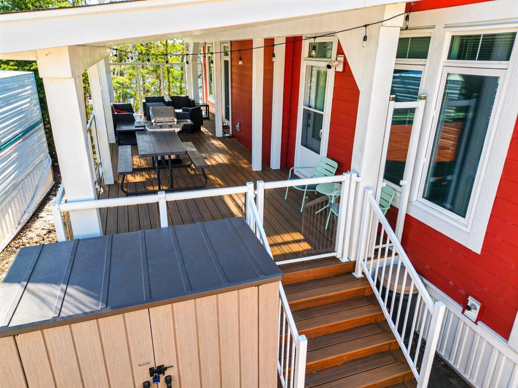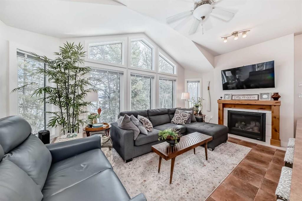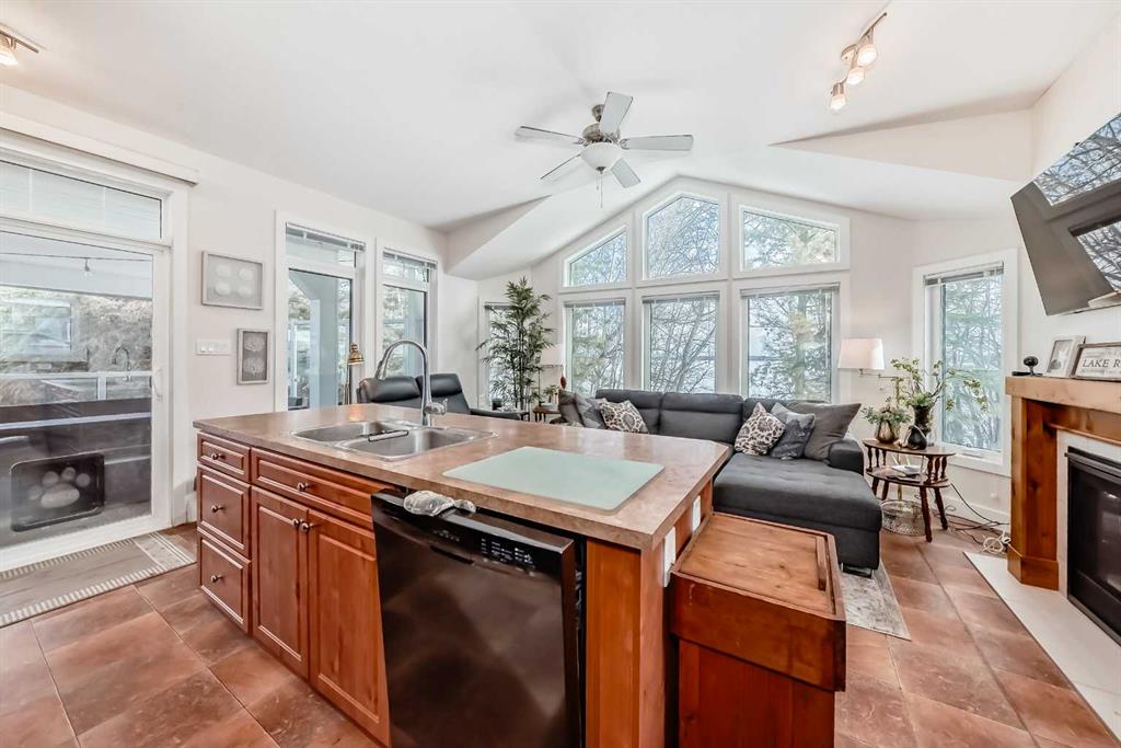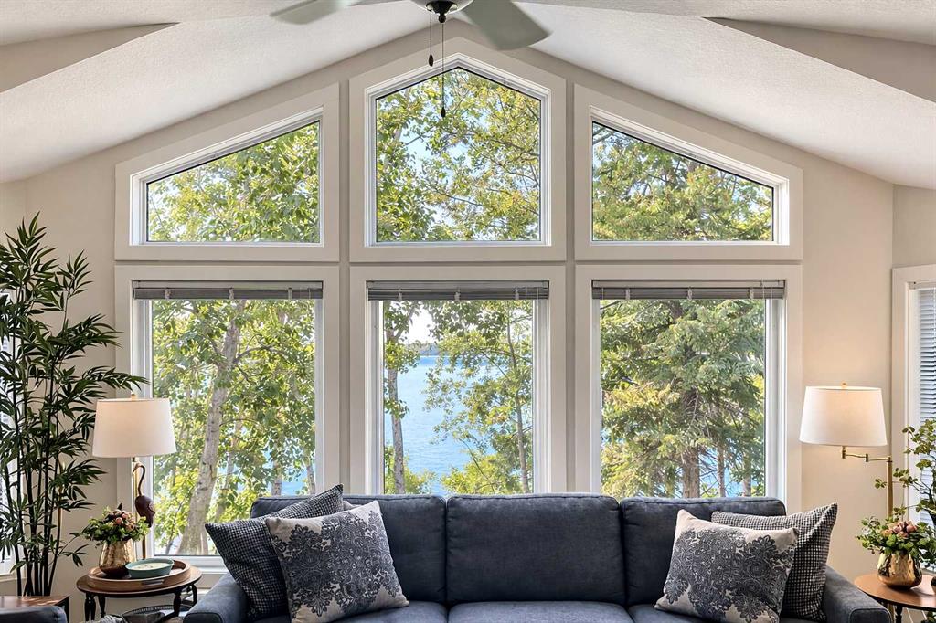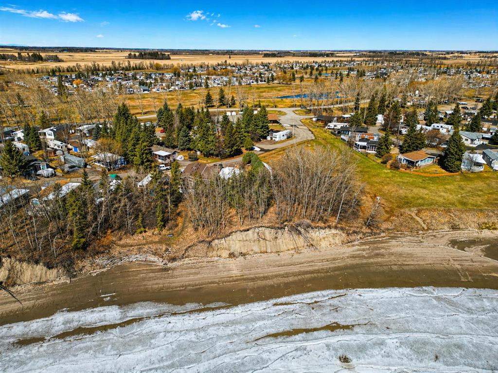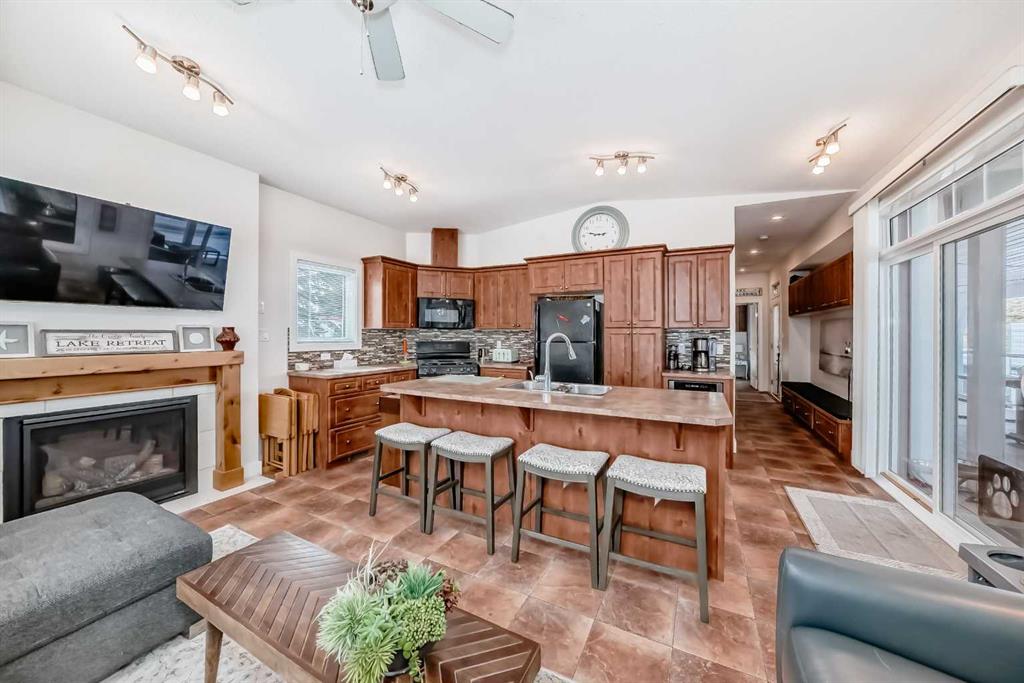 Welcome to this beautiful rare lakeside home at Gleniffer Lake Golf & Country Club ~ located on a large lot in Phase 1, which is a 3 season Phase. Situated right on the shores of Gleniffer Lake, this property offers stunning lake views, mature trees for privacy and wind protection, and direct access to the water. Built in 2016 with quality 2x6 construction and drywall interior, this well-maintained home offers a bright and spacious layout designed to maximize the views. The open-concept kitchen and living room feature large windows overlooking the lake, filling the home with natural light. The kitchen includes a large center island perfect for entertaining, while the cozy propane fireplace creates a warm and inviting living space. This lake home features 2 bedrooms, 2 bathrooms, and a separate laundry room with stacked washer and dryer, offering comfort and convenience for full-time summer living or a relaxing weekend getaway. Step outside onto the large covered deck with glass railing and new composite decking (2023)—the perfect place to enjoy your morning coffee while taking in the peaceful Gleniffer Lake views. Under the home and deck you will find ample storage space for outdoor gear and lake toys. A finished bunkhouse provides additional sleeping space for guests, making this property ideal for hosting family and friends. A pathway leads directly from the property down to the lake, allowing easy access to all the recreation Gleniffer Lake has to offer, including boating, fishing, and swimming. Included with the property are: fridge, stove, built-in dishwasher, microwave hood fan, stacked washer and dryer, window coverings, propane fireplace, beds and mattresses, BBQ, bunkhouse and beds, ceiling fan, storage shed, propane pig, and two fobs. If you’re looking for a lake property at Gleniffer Lake Golf & Country Club with incredible views, extra guest space, and one of the largest lots in Phase 1, this is a must-see opportunity.