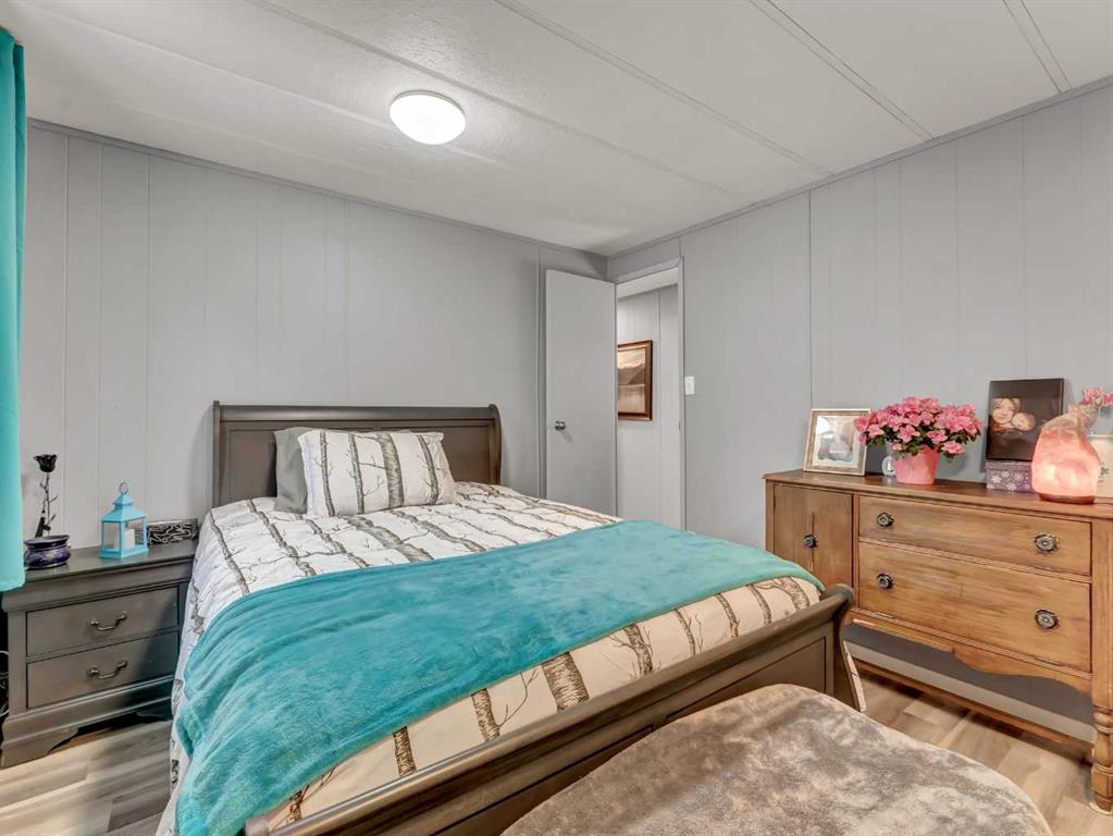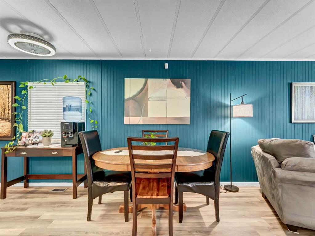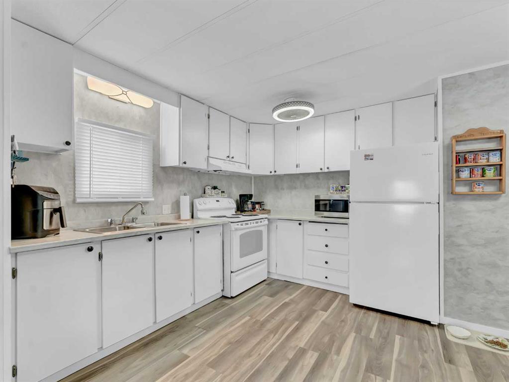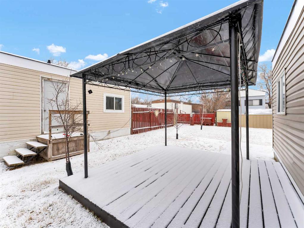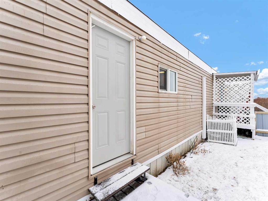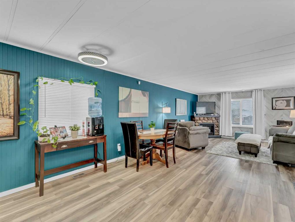 Step into this stylish and inviting 2-bedroom home, where a bright atmosphere greets you. The open-concept layout connects the kitchen, dining, and living areas, making it easy to enjoy time together. The bathroom has been thoughtfully updated, and durable flooring throughout offers low-maintenance comfort. Cozy up to the corner fireplace with a good book or a hot beverage on those chilly days or spend summer evenings beneath the spacious pergola after puttering in the fenced, roomy yard, which features plum and crab apple trees. A rechargeable lawnmower is also included with the purchase – no long chords to trip over! Newer vinyl windows have been installed as well as new blinds for most of the windows. For low maintenance and stress free living, this is the one for you! This home is located in a well maintained park that has a playground for the kids and is close to restaurants, shopping, schools, walking trails, public transit and much more! It's almost springtime planting season, so now is the perfect time to make the move! Utilities are included in the pad fee except for electricity.