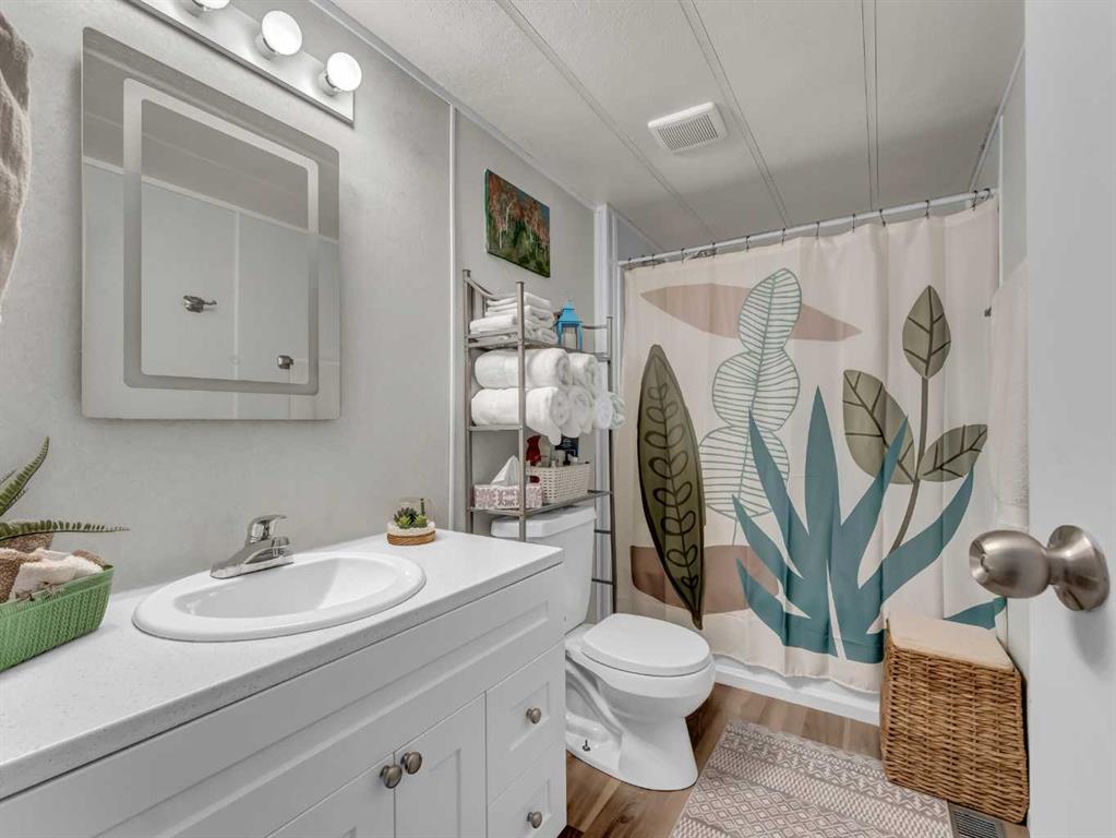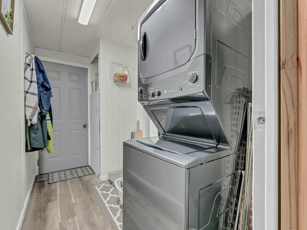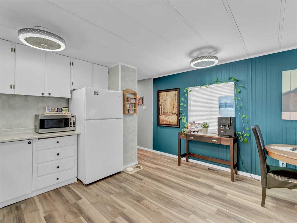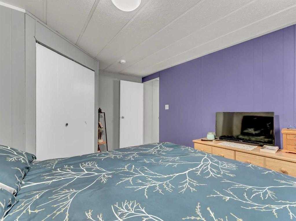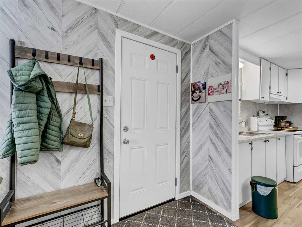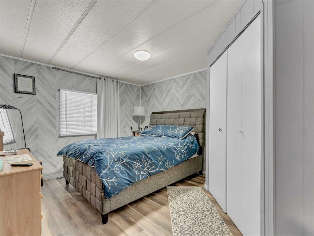 Step into this stylish and inviting 2-bedroom home, where a bright atmosphere greets you. The open-concept layout connects the kitchen, dining, and living areas, making it easy to enjoy time together. The bathroom has been thoughtfully updated, and durable flooring throughout offers low-maintenance comfort. Cozy up to the corner fireplace with a good book or a hot beverage on those chilly days or spend summer evenings beneath the spacious pergola after puttering in the fenced, roomy yard, which features plum and crab apple trees. A rechargeable lawnmower is also included with the purchase – no long chords to trip over! Newer vinyl windows have been installed as well as new blinds for most of the windows. For low maintenance and stress free living, this is the one for you! This home is located in a well maintained park that has a playground for the kids and is close to restaurants, shopping, schools, walking trails, public transit and much more! It's almost springtime planting season, so now is the perfect time to make the move! Utilities are included in the pad fee except for electricity.