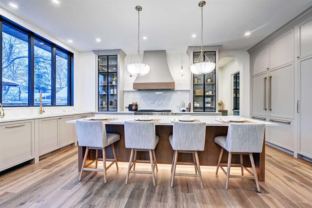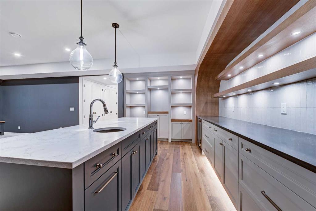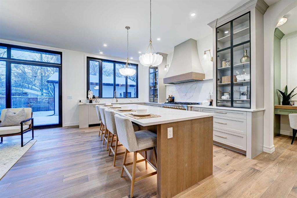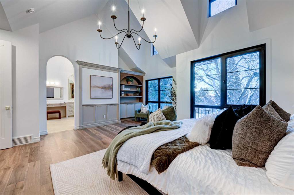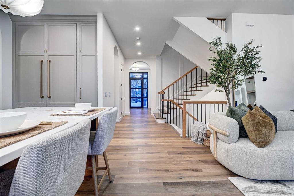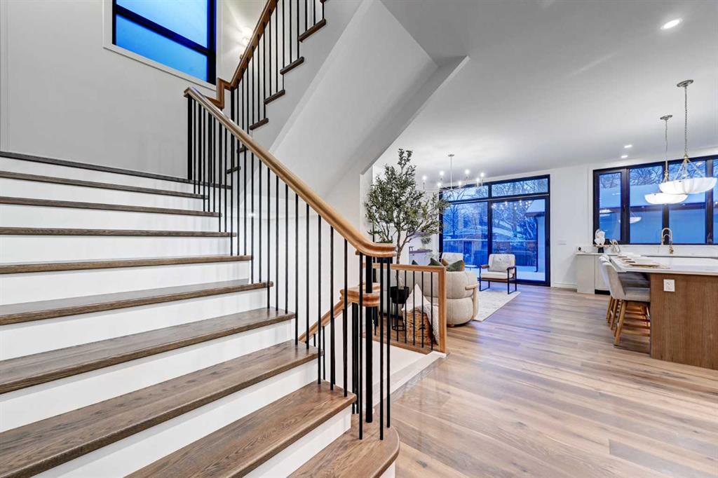 Sen Homes presents a stunning new estate home in the prestigious community of Upper Mount Royal, crafted to the highest standards and ready for occupancy. WITH 4,383 sq.ft. of meticulously developed living space, this home features three spacious upstairs bedrooms, each with walk-in closets and luxurious en-suites equipped with heated floors; the primary suite includes a steam shower and dedicated makeup counter. The main floor is thoughtfully designed with a custom mudroom, butler’s pantry, private office, formal dining room, and an open-concept kitchen and living area. White oak hardwood flooring spans the main and upper levels, with hardwood accents continuing into the basement. Premium finishes include solid core doors and extensive custom millwork such as office built-ins and a coffee station in the primary suite. The fully developed lower level boasts a gym, an additional bedroom, a full bathroom, smart strand silk carpet and a generous recreation area complete with a stunning wet bar. Noteworthy highlights include European-style black-framed tilt-and-turn windows, in-floor heating in the basement, elegant architectural arches, updated hardware throughout, and more. Situated on a quiet, tree-lined street with a sunny west-facing backyard, the outdoor space includes a large deck with two gas lines (for BBQ and fire table/heater) and an oversized double garage that is insulated, drywalled, painted, & roughed in for heat—this home is the epitome of luxury and function in one of Calgary’s most sought-after neighborhoods.