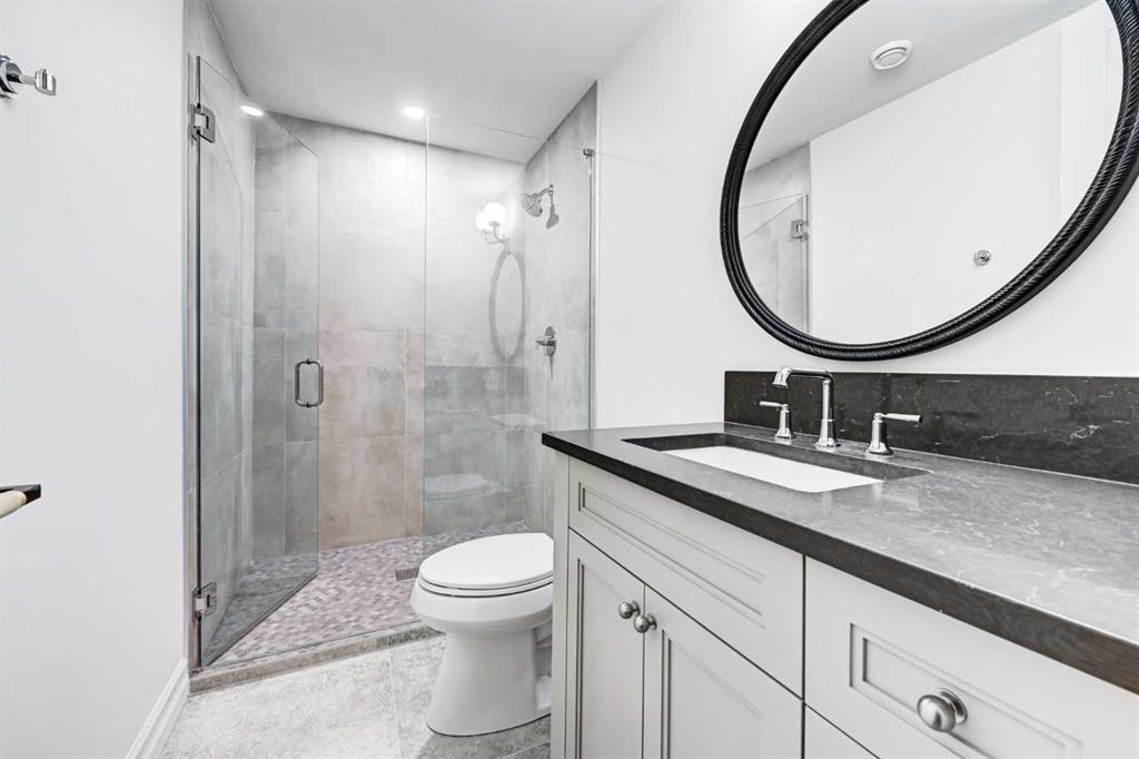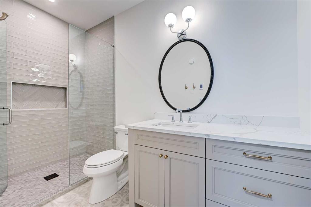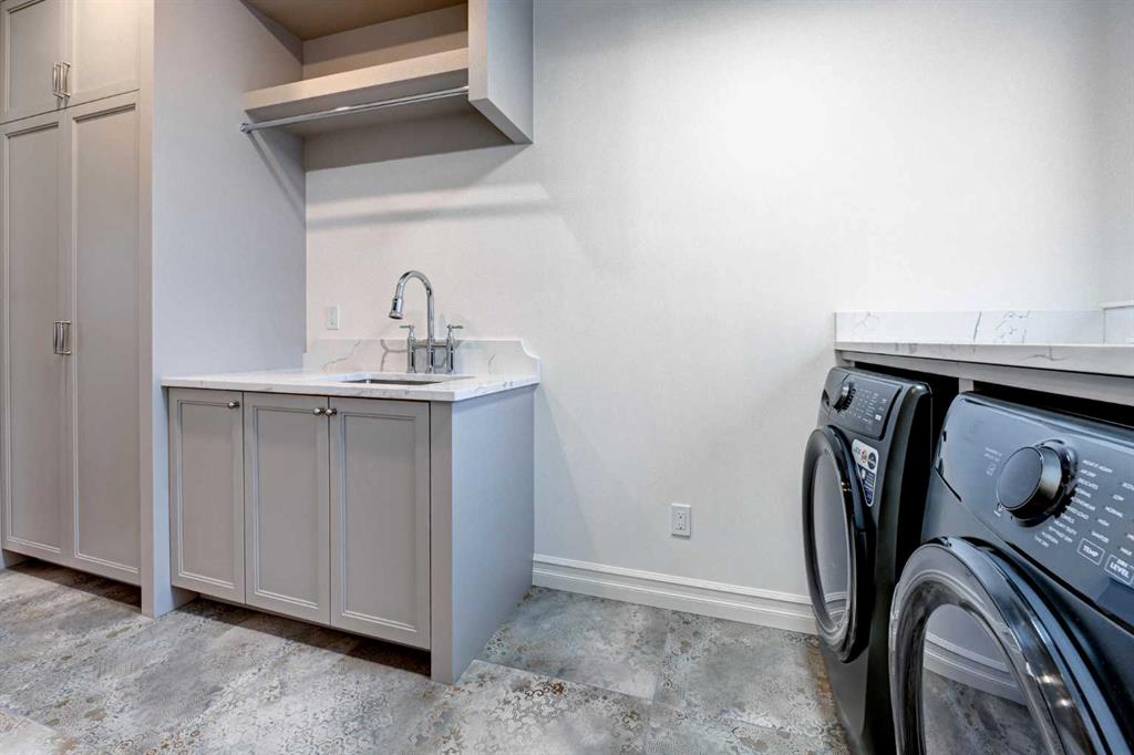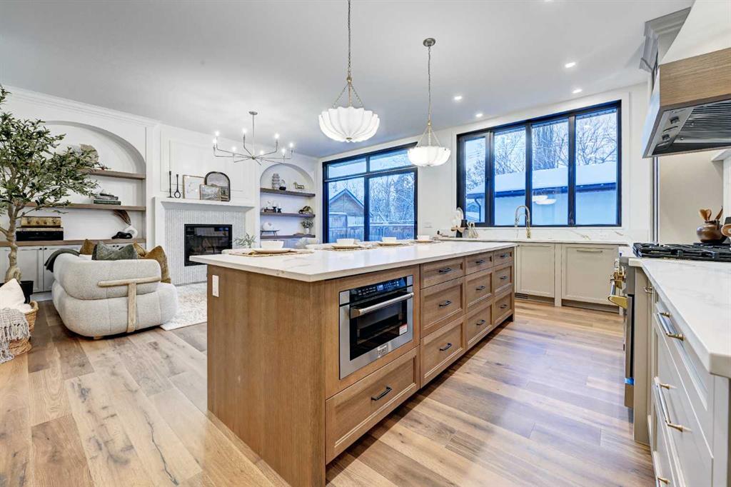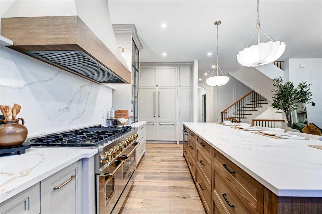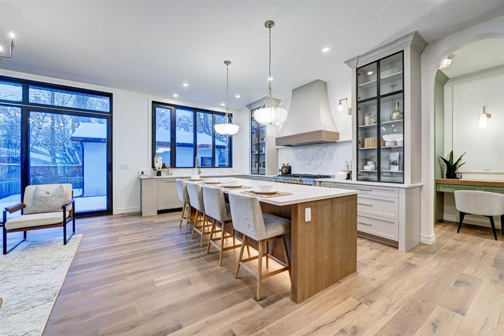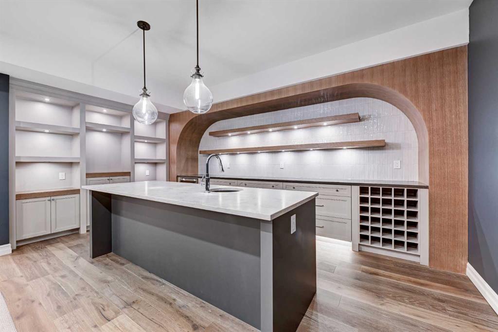 Sen Homes presents a stunning new estate home in the prestigious community of Upper Mount Royal, crafted to the highest standards and ready for occupancy. WITH 4,383 sq.ft. of meticulously developed living space, this home features three spacious upstairs bedrooms, each with walk-in closets and luxurious en-suites equipped with heated floors; the primary suite includes a steam shower and dedicated makeup counter. The main floor is thoughtfully designed with a custom mudroom, butler’s pantry, private office, formal dining room, and an open-concept kitchen and living area. White oak hardwood flooring spans the main and upper levels, with hardwood accents continuing into the basement. Premium finishes include solid core doors and extensive custom millwork such as office built-ins and a coffee station in the primary suite. The fully developed lower level boasts a gym, an additional bedroom, a full bathroom, smart strand silk carpet and a generous recreation area complete with a stunning wet bar. Noteworthy highlights include European-style black-framed tilt-and-turn windows, in-floor heating in the basement, elegant architectural arches, updated hardware throughout, and more. Situated on a quiet, tree-lined street with a sunny west-facing backyard, the outdoor space includes a large deck with two gas lines (for BBQ and fire table/heater) and an oversized double garage that is insulated, drywalled, painted, & roughed in for heat—this home is the epitome of luxury and function in one of Calgary’s most sought-after neighborhoods.