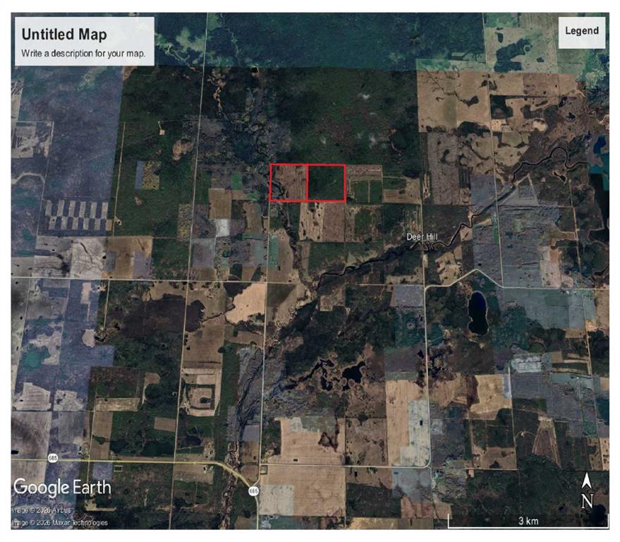 TWO QUARTER SECTIONS. Here is a beautiful opportunity to develop an acreage (or 2). The SW quarter is recently logged. A creek valley runs through it, making for exceptional scenic views. Located at the end of a dead end road, this parcel sits adjacent to a vast and wild crown landmass, making it an amazing wildlife habitat and very private. This quarter has a Registered Caveat regarding access for maintenance of land adjacent to the watercourse. The SE quarter is a Lease with parameter fencing, providing a great opportunity for extra cattle grazing. About 45 acres of deeded bush and creek, 62 acres of logged land and 48 acres of pasture. The lease is mostly treed. Hesitate and miss this rare opportunity. Call your Realtor today.
