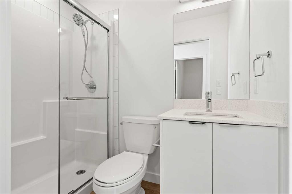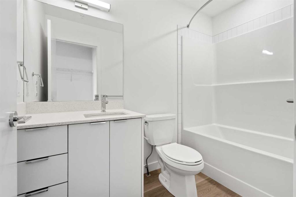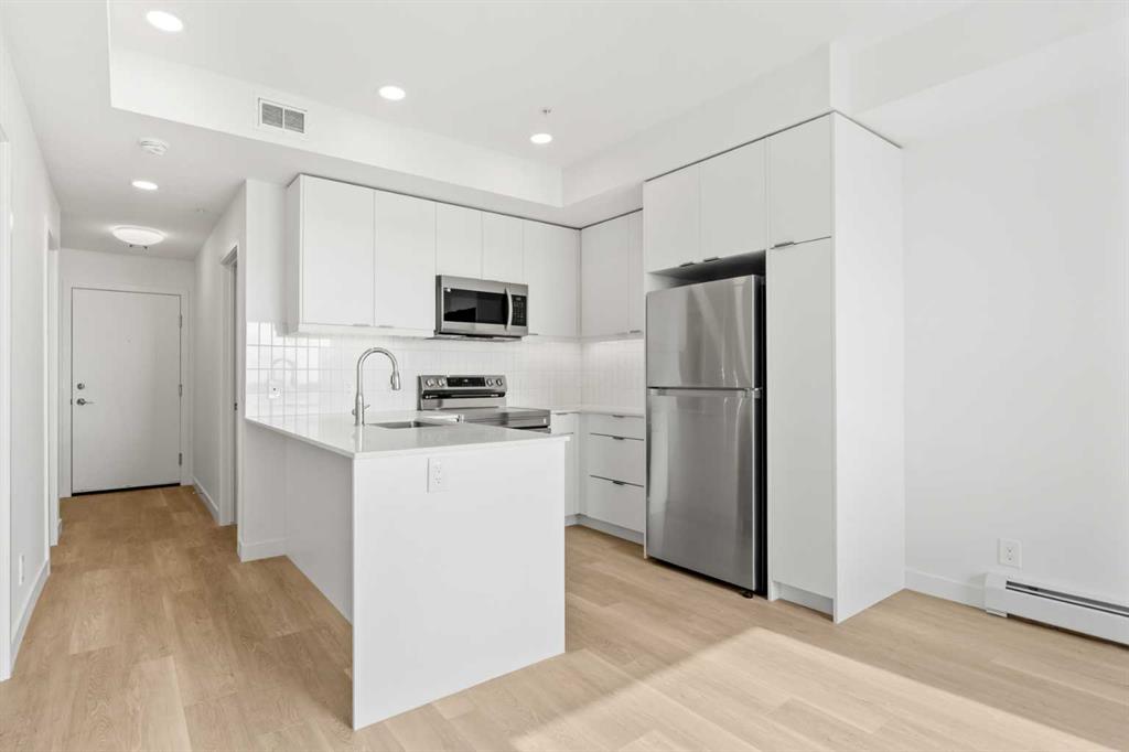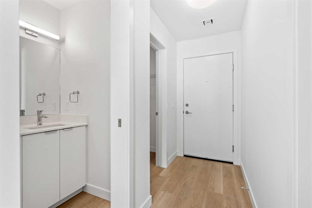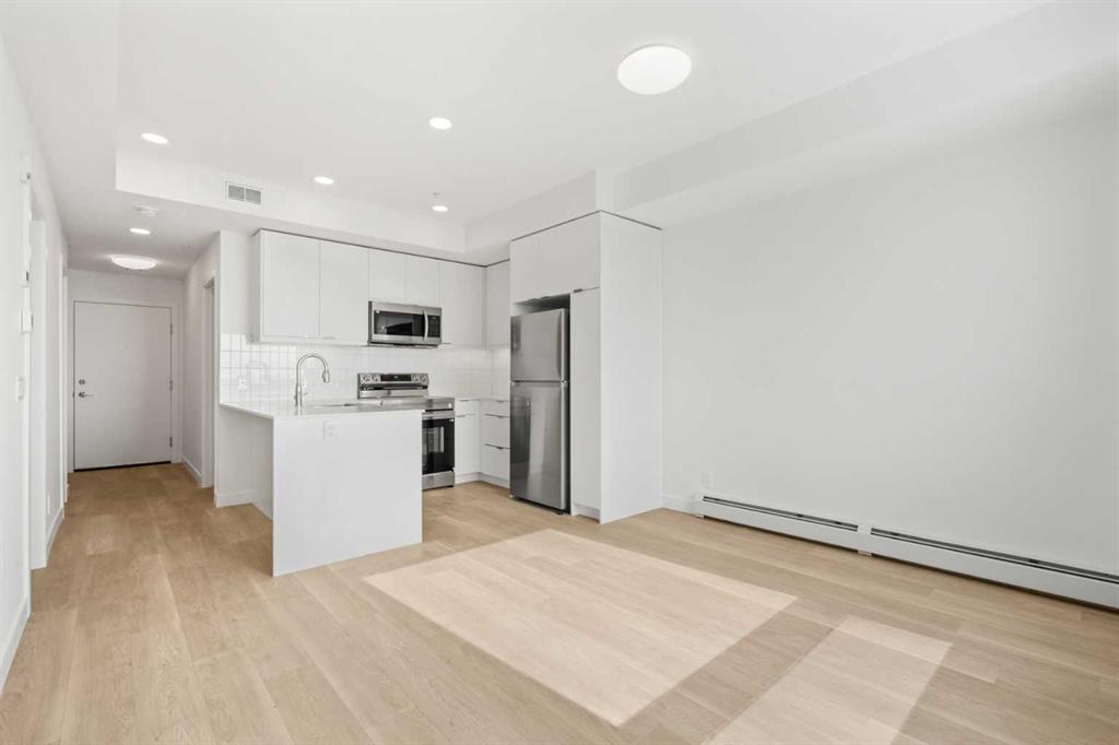 BRAND NEW | 2 BED / 2 BATH / 641 SQ FT | MODERN FINISHES | LOW CONDO FEES | TITLED PARKING – Welcome to East Hills by Minto Communities, an award-winning Canadian builder with over 70 years of experience. This condo complex is located in the growing community of Belvedere, just steps from East Hills Shopping Centre. Designed to foster a true sense of community, East Hills features pedestrian pathways, nearby greenspace, and a walkable, neighbour-friendly layout. Enjoy unbeatable convenience with Costco, Walmart, banks, restaurants, and everyday essentials right across the street, along with quick access to major roadways and public transit for an easy commute downtown or around the city. This brand-new 2 bedroom, 2 bathroom condo offers a smart and functional layout with 641 sq ft of well-designed living space and modern finishes throughout. The kitchen is centrally located within the home and features a large peninsula, stainless steel appliances, and ample cabinetry for storage. The open-concept design flows seamlessly into the living area at the back of the home, where you’ll find access to the south-facing balcony—ideal for relaxing, entertaining, or enjoying summer evenings. The thoughtfully designed split-bedroom layout provides added privacy, with bedrooms located on either side of the home. The primary bedroom is situated beside the living room and includes a walk-in closet and an ensuite bathroom. The second bedroom is located just beside the foyer and is positioned near the additional 3-piece bathroom—an ideal setup for guests, roommates, or a home office. You’ll also find additional storage, in-suite laundry, and a front closet conveniently located near the entry, completing this functional and well-appointed condo. Additional highlights include titled parking, a pet-friendly building (with restrictions), access to an on-site fitness centre located in Building 3000, and a rooftop patio in Building 1000—both available to all residents—enhancing the lifestyle appeal of this low-maintenance home. With modern design, low condo fees, and an exceptional location, this is an excellent opportunity for first-time buyers, investors, or those looking to downsize in one of southeast Calgary’s most convenient communities. Contact Minto’s sales staff and book your visit today!