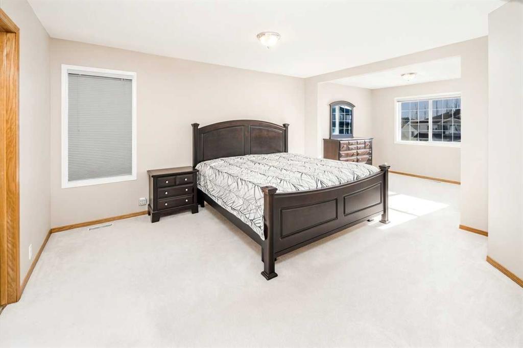 Well maintained 2,240 sq ft two-storey home featuring 4 bedrooms on the upper level, ideally located on a quiet street with a west-facing backyard perfect for afternoon sun. The spacious primary bedroom offers a comfortable sitting area and a 4-piece ensuite with separate shower. The main floor features hardwood flooring throughout the hallway, family room, kitchen, breakfast nook and staircases, a cozy family room with gas fireplace and built-in bookshelves, plus a formal living room and dining room, ideal for family gatherings and entertaining. Functional kitchen with bright breakfast nook and direct access to the large backyard deck, perfect for summer BBQs. Main floor office/den and laundry add everyday convenience. The fully developed basement includes a large bedroom, huge recreation room with wet bar, hobby room and another 4-piece bathroom, offering plenty of space for family living or guests. New carpet on the main level (2026) and hot water tank replaced in 2021. No poly-B plumbing in this property. Excellent location within walking distance to bus stops, playgrounds, parks and nearby shopping amenities.