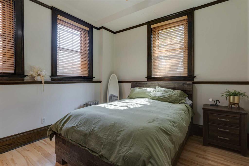 Welcome to Historic Anderson Estates, a beautiful heritage building with a rich history offering unique inner city living! At over 1,200 sf this is the largest unit in the building. This 2 Bedroom, 2 Bathroom unit, features original maple hardwood floors, 12' ceilings, 5' windows & dark stained 12" wide-oak baseboards throughout. The kitchen opens to the living room and dining area make the space open, and perfect for entertaining. Fully equipped with stainless steel appliances, tiled backsplash, granite counter tops, maples cabinets and island with breakfast bar, this kitchen is a rarity for this building. Large windows allow for natural light throughout. The primary suite offers an ensuite with original claw-foot tub, tiled wainscoting, and tiled floors. The main washroom has a large walk-in shower. Being a larger unit you will appreciate the in-suite laundry room with full size machines and extra storage. One of only two units in the building that allows for a "Home Based Professional Office", perfect if you are looking for an optimal work/live space. The building is quiet concrete construction and has concierge service Monday-Friday 9:30-5:30. There is a shared courtyard with conversation seating to enjoy all summer including movie nights and resident social gatherings. Permit parking is available through the City of Calgary for $45/year, 1 per address; there are also a parkade at Shoppers Drug Mart that is next store to the building. Amenities include bicycle stalls for $100/year lease rate and a BBQ and fire table for resident use. Steps to trendy 17th Ave with all amenities within walking distance! Whether you commute or work from home, this is the perfect unit for anyone looking for a warm & classic living space mixed with the bustle of inner city!
