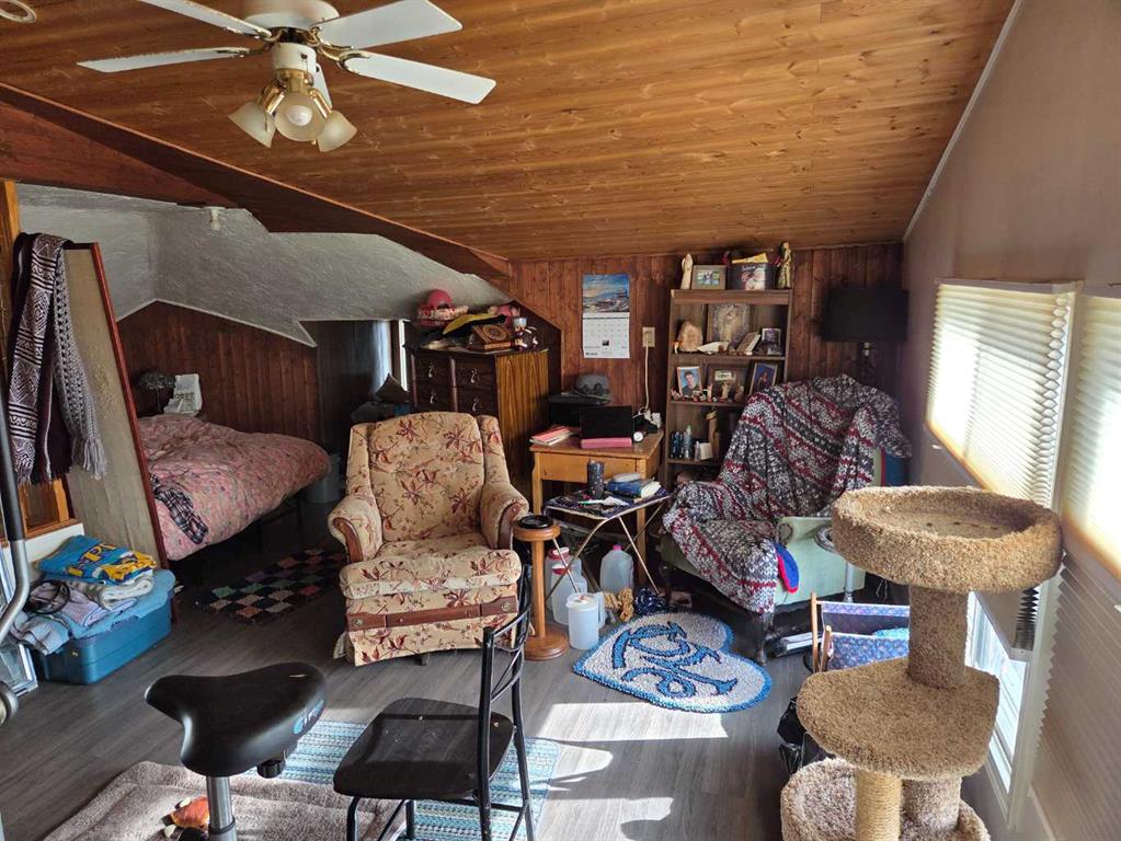 Opportunity awaits in this cozy home with loads of potential. Featuring 2 bedrooms on the main floor and a unique loft-style bedroom. The basement is roughed in and offers great potential for future development with access to the garage. Enjoy your morning coffee on the front porch, perfect for watching the sunrise. The large backyard includes RV hookup and parking, with space to relax and enjoy summer evenings around the gas BBQ. Single attached garage adds everyday convenience.