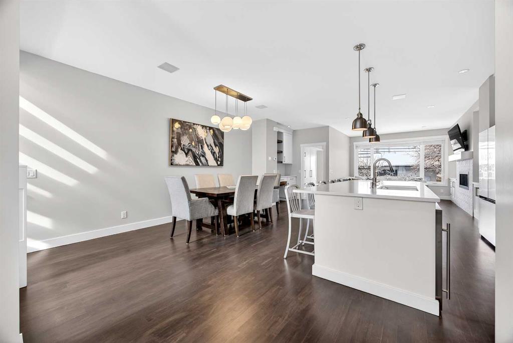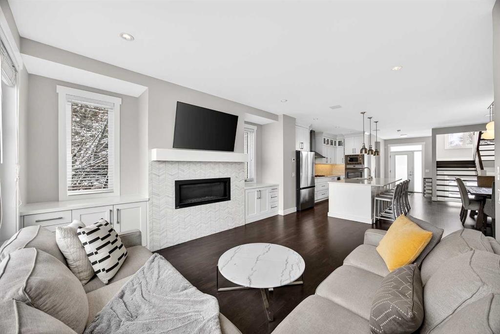 Welcome to this beautifully crafted semi-detached infill with over 2700 SQ Ft of developed living space, nestled on a quiet street in the highly sought-after community of Capitol Hill. Just steps away from Confederation Park's picturesque pathways and sprawling green spaces, this home offers a unique blend of tranquility and urban convenience—only minutes from downtown Calgary. From the moment you step inside, you’ll notice the exceptional attention to detail and the high-quality materials that set this home apart. The open-concept main floor exudes warmth and sophistication, thanks to rich site-finished hardwood flooring and an elegant open-rise staircase. The heart of this home is the chef’s kitchen, thoughtfully designed for both daily living and entertaining. Here, you'll find a spacious central island, premium stainless-steel appliances, custom Marvel cabinetry, and sleek quartz countertops. The kitchen flows seamlessly into a spacious living room, anchored by a modern fireplace and extending into a welcoming dining area—an ideal setting for hosting family and friends. Rounding out the main floor are a stylish powder room and a practical mudroom for added convenience. Upstairs, three generously sized bedrooms continue the theme of luxury with hardwood flooring throughout. The primary suite is a true retreat, featuring a walk-in closet and a newly renovated, spa-inspired ensuite with dual vanities, a freestanding soaker tub, heated tile floors, and a glass-enclosed shower. A full bathroom and a convenient laundry area complete the upper level. The fully finished basement adds even more living space, boasting a large family/rec room with a wet bar, an additional bedroom, and a full bathroom—perfect for guests, a home office, or a growing family. Comfort is elevated with in-slab heated basement floors. Step outside to your own private, landscaped backyard oasis, complete with a spacious patio and mature trees, providing the perfect backdrop for relaxation or entertaining. The double detached garage is both insulated and heated, ensuring year-round usability. Additional features such as built-in home audio and central vacuum add to the home's modern conveniences. Located in one of Calgary’s most desirable inner-city neighborhoods, this property offers fantastic access to parks, schools, transit, and major amenities. You’ll enjoy quick connections to the Southern Alberta Institute of Technology, University of Calgary, and downtown. If you’re searching for the perfect balance of style, comfort, and functionality in a vibrant community, this Capitol Hill infill is a must-see. Please reach out if you’d like more information or to schedule a private showing today.