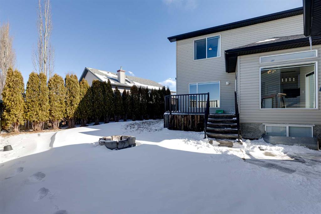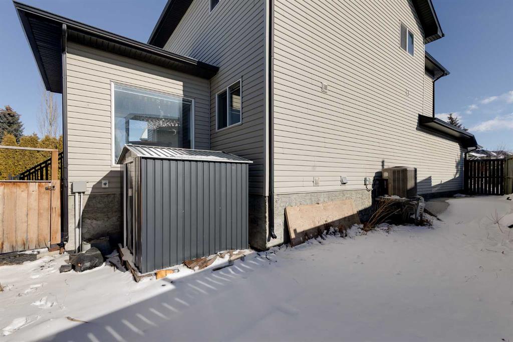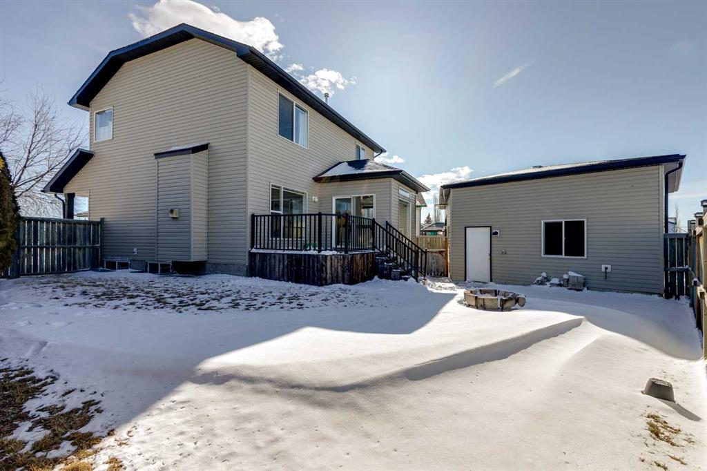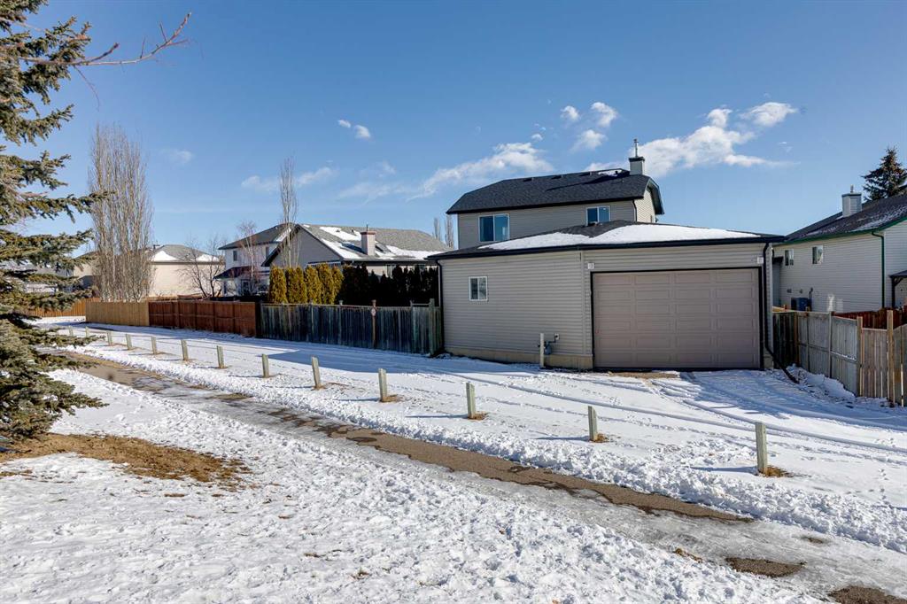 Exceptional QUAD AND DOUBLE GARAGE (yes, both) and parking pad makes this Stonegate property a rare find. This fully developed 2-storey home offers over 2,900 sq ft of living space, 4 bedrooms and 3.5 bathrooms, plus an impressive garage setup featuring an attached double garage and a heated, insulated detached quad garage 27' by 30' for 760 sq ft! With back lane access and parking for up to 8 vehicles, this property is ideal for buyers needing space for vehicles, hobbies, or workshop use. The main floor offers a functional layout with a comfortable living room featuring a gas fireplace, a bright kitchen with island, pantry and plenty of workspace, and convenient main floor laundry. Upstairs you’ll find three bedrooms including the spacious primary suite with walk-in closet and ensuite. The fully developed basement includes a fourth bedroom, additional living space and a second gas fireplace, providing flexibility for family, guests or recreation. Step outside to a large pie-shaped lot backing onto no neighbours, complete with a fenced yard, deck, fire pit, dog run and storage shed. Important mechanical updates include shingles approximately 7 years old, furnace approximately 15 years old with a new blower motor, and two hot water tanks approximately 5 years old. Central air conditioning adds comfort during the summer months. Located close to parks, schools, shopping and everyday amenities, this property combines a family-friendly location with the kind of garage and parking capacity that is difficult to find in Airdrie.