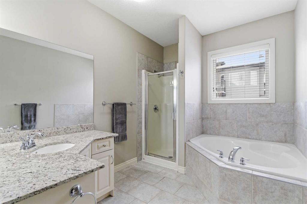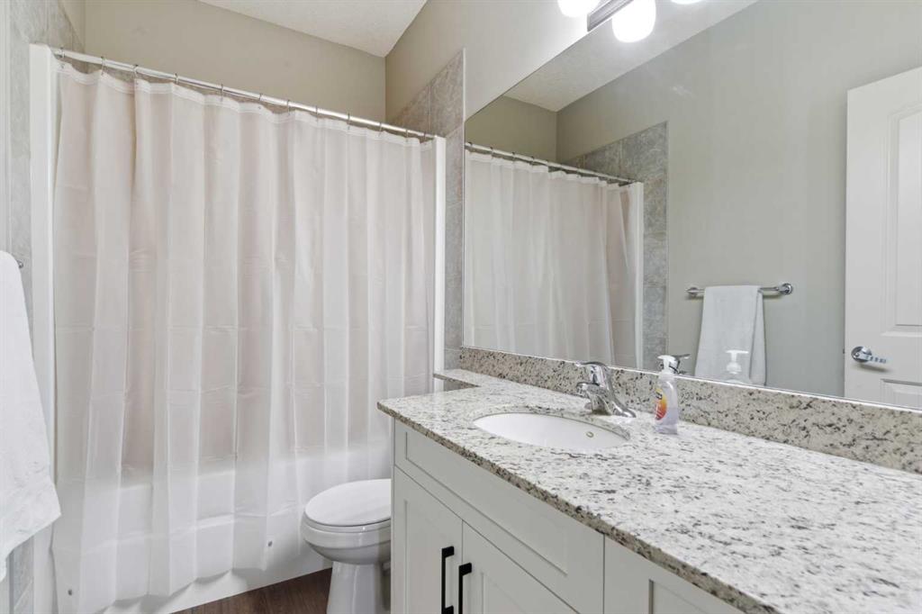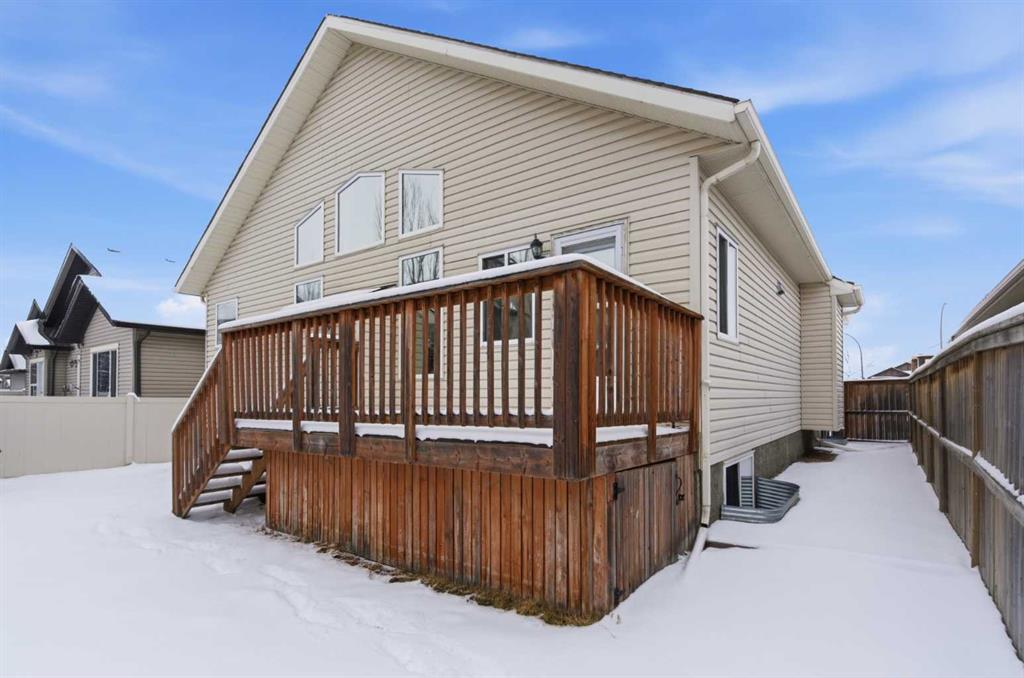 Beautiful and ideally located this 5 bedroom bungalow is well maintained and move in ready! Whether you are a empty nester or a family you will love this functional open concept layout from the moment you come into the vast entryway. The impressive main floor features a modern kitchen with loads of cabinets and drawers, quartz countertops, island with breakfast bar, pantry and stainless steel appliances (brand new dishwasher!) all open to a good sized dining area and the spacious living room that centers around a cozy fireplace for those cold days and evenings. The expansive windows are tinted for extra privacy or if you wish take off the tint to let the beautiful sunshine in. No need to worry about the heat in the summer with the central air conditioning! Completing the main floor is a 4pc bathroom, laundry room and 3 spacious bedrooms including the primary bedroom where there is plenty of room for a king bed and extra furniture. Off the primary you will find a large walk-in closet and a 4pc en-suite. The finished basement adds more living space with the expansive family and rec room area, 2 more huge bedrooms, a storage room or maybe make it into a work out room or craft room and a 3pc bathroom that will be completed with a shower before possession day. Step out onto your lovely deck that has a gas BBQ line and relax in your landscaped back yard. Here you will also find a shed for those extra items you don't want to store in the heated garage. This home is located near to walking paths, lake, playground, schools and other amenities. You won't want to miss out on this home!