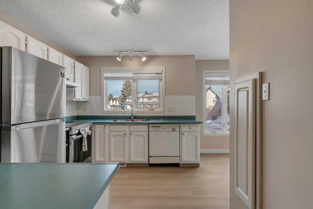 3 BEDROOMS | 2 BATHROOMS | 5-LEVEL SPLIT TOWNHOME | 1,496 SQ FT OF LIVING SPACE | ATTACHED GARAGE | WALKOUT | RANCHLANDS COMMUNITY Welcome to this bright and spacious 5-level split townhome in the highly desirable Ranchlands Courts! With over 1,500 sq.ft. of living space, a rare attached garage, and a functional layout designed for modern living, this home is ready for the next owner to make it their own. Enjoy west-facing exposure and abundant natural light throughout the home. Moving up from the foyer, you’ll find a spacious and functional living area, perfect for relaxing, entertaining, or spending time with family. On the 3rd level, the kitchen, dining area, and breakfast nook create a central hub for meals and gatherings, ideal for everyday living and entertaining friends. The 4th floor features two generous bedrooms, while the top floor is home to the expansive primary suite. This large master offers ample space for a sitting area or workspace, multiple closets, and a 4-piece ensuite. Large windows fill the room with natural light, creating a bright and inviting retreat. The lower-level recreation room adds flexibility, featuring a wood-burning fireplace and a walkout to serene greenspace, ideal for indoor-outdoor living and peaceful relaxation. Life in Ranchlands offers a vibrant lifestyle with parks, shopping, and transit nearby, combining convenience with a welcoming community atmosphere. This rare townhome with size, layout, attached garage, And walk-out is full of potential. Come see why Ranchlands Courts living is so desirable!