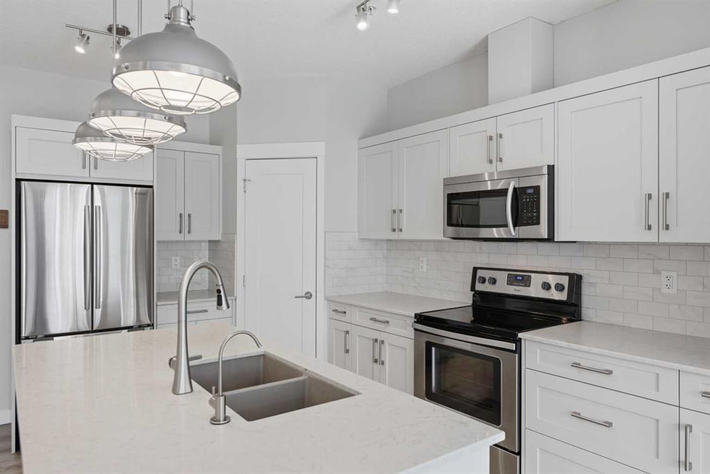 Move in ready 2 bedroom, 2 bathroom home with titled underground parking and low condo fees in the highly walkable community of Walden just steps to Township Shopping Centre! Inside, you’ll find 795 square feet of sun filled, open concept living featuring luxury vinyl plank flooring, comfortable carpet in the bedrooms, large windows, and an added air conditioner for year round comfort and additional value. This floor plan is anchored by a tastefully finished kitchen featuring quartz countertops, modern shaker cabinetry, stainless steel appliances, a large central island, corner pantry, and the added bonus of a built in water filtration system! This area flows seamlessly into the dining room and spacious living room, creating the perfect layout for entertaining or gathering with friends. The primary bedroom offers a comfortable retreat with a walk through closet leading to a spacious 5 piece ensuite, highlighted by a quartz topped double vanity with pedestal sinks and built in cabinetry for additional storage. The second bedroom is well situated with a full bathroom just outside the door and provides flexibility for guests, roommates, or a home office, while the in suite laundry adds everyday convenience. The outdoor living area highlights a large balcony with a gas line installed ready for summer BBQ's and adds additional space to entertain or relax! This home also includes a titled underground parking stall and a separate storage locker in the parkade, keeping your vehicle warm and secure while providing additional storage space outside of the unit. Located in Walden Place, you’ll love the walkable lifestyle with groceries, restaurants, cafés, fitness studios, and everyday amenities just across the street. The community is known for its scenic pathways and parks with Fish Creek Park just minutes away, while commuting is easy with quick access to Macleod and Stoney Trail. Perfect for first time buyers, down sizers, or investors seeking stylish, low maintenance living in one of south Calgary’s most convenient communities. Don’t miss your opportunity to view this beautiful home, book your private showing today.