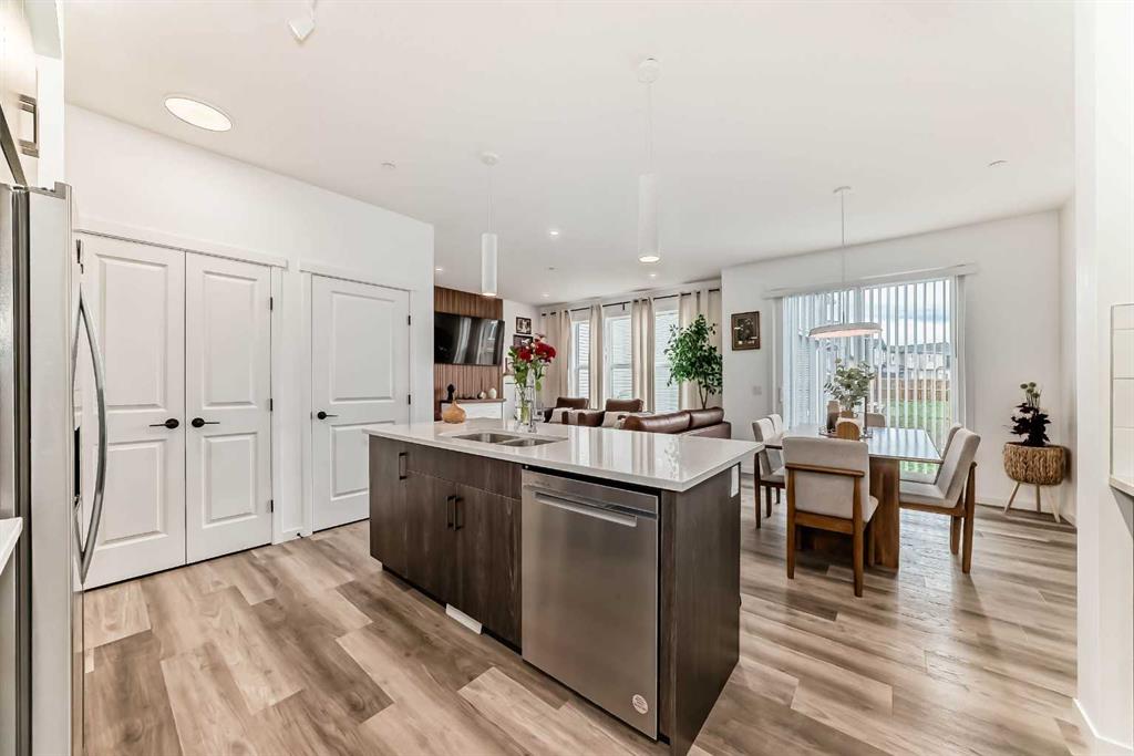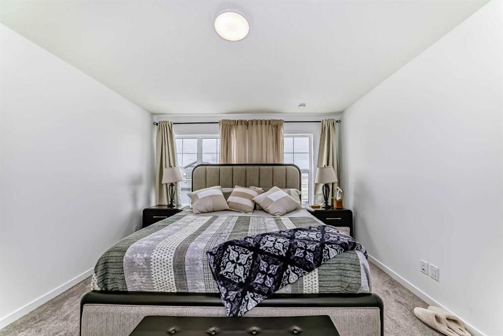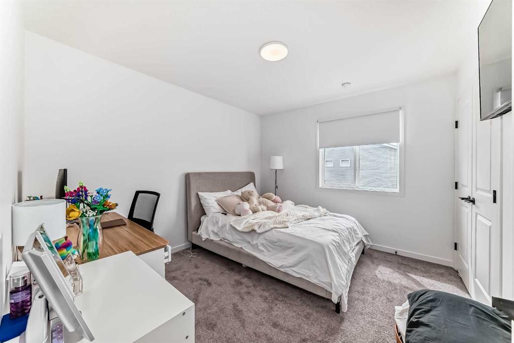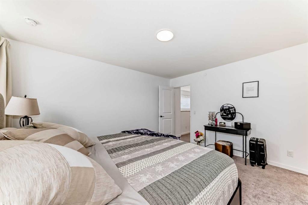 Welcome to this stunning two-storey home that perfectly blends modern design, comfort, and functionality. Offering just under 1,700 sq. ft. of thoughtfully planned living space, this beautifully crafted residence is still protected by a comprehensive new home warranty, ensuring peace of mind for years to come. The main floor impresses with 9-foot ceilings and durable luxury vinyl plank flooring, setting the stage for a bright and inviting open-concept layout. A dedicated pocket office provides the ideal workspace for remote professionals or students. The gourmet kitchen is a true showpiece, featuring full-height cabinetry, premium stainless steel appliances, a gas range, and a chimney-style hood fan—combining everyday practicality with upscale style. Adjacent to the kitchen, the living room offers a cozy retreat highlighted by a stylish accent wall and a portable fireplace, creating the perfect space for relaxing or entertaining. Upstairs, you’ll find three well-appointed bedrooms, including a spacious primary suite with a private ensuite bathroom. A versatile bonus room adds extra living or play space, while a conveniently located laundry area enhances everyday functionality. The basement offers exceptional potential with a separate side entrance and a rough-in for a future bathroom—ideal for future development or a legal secondary suite (subject to city approval). Located just minutes from East Hills Shopping Centre and offering quick access to Stoney Trail, this home delivers the best of suburban tranquility and urban convenience. A must-see for discerning buyers—schedule your private showing today!