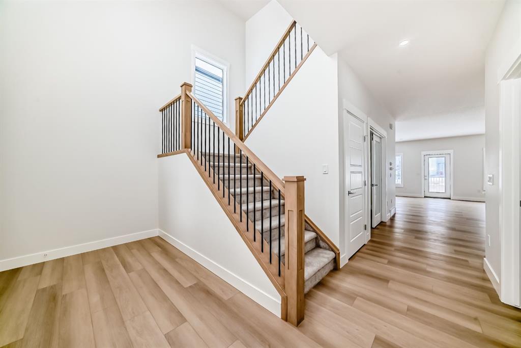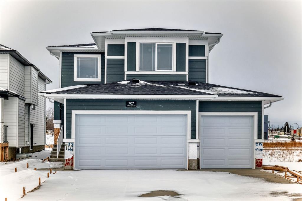 Discover this thoughtfully designed home, built to impress with quality craftsmanship and modern finishes. The main floor welcomes you with a bright open-concept layout featuring a spacious family room with a fireplace, a well-appointed kitchen with a large island and walk-in pantry, and a generous dining/nook area that leads out to your future patio. A dedicated main-floor den offers the perfect space for a home office or quiet study. Upstairs, you’ll find three spacious bedrooms, including a stunning primary suite complete with a spa-inspired ensuite and a large walk-in closet. The upper level also features a sizeable bonus room, full bathroom, and a convenient laundry room designed for everyday ease. The basement remains undeveloped and backs onto a green space, giving you the opportunity to customize the space to suit your family’s future needs. A triple-car garage provides ample parking and storage. Exterior finishes include Hardie siding and elegant stone accents for timeless curb appeal. Located in a growing family-friendly community with access to parks, green spaces, and future amenities, this home blends modern comfort with everyday practicality. Secure your chance to own a brand-new home in an exciting new neighbourhood.