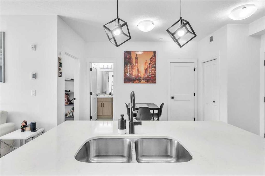 This bright and modern 2 bedroom, 2 full bathroom home offers a thoughtfully designed living space. Inside, you'll find a natural light-filled open layout featuring a sunny kitchen with sleek quartz countertops and stainless steel appliances that opens onto the living area with South balcony. The bedrooms are strategically positioned on opposite sides of the suite, offering enhanced privacy—ideal for roommates or guests. The primary bedroom boasts a luxurious 5-piece ensuite with dual sinks, adding a touch of spa-like indulgence to your daily routine. This home includes the added convenience of in-suite laundry and dedicated storage, making everyday living even more seamless. Step out onto the south-facing balcony to enjoy your morning coffee or unwind at sunset. Additional perks include large windows to bring in the natura light, secure underground parking with more storage, visitor parking and a well-maintained building with professional management. Just one block from two grocery stores, essential businesses and the new Starbucks, the location provides unbeatable convenience without sacrificing comfort. Whether you're a first-time buyer, downsizer or investor, this stylish unit is a standout opportunity in one of Calgary’s most desirable NW neighborhoods.