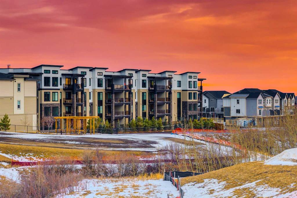 The Whitney is an impeccably designed boutique condo building, situated in the esteemed Aspen Park/Springbank Hill area. Your new home graces one of the finest locations, nestled beside a protected environmental reserve (ravine) that winds through the community, offering extensive recreational walking paths. The Whitney boasts stunning mountain, prairie, and community vistas, with Aspen Landing just a 5-minute stroll away and Downtown a quick 10-minute drive. Your new 2 bed/2 bath GRAMERCY unit offers 946 sq.ft. of architectural measurement (878 sq.ft. RMS measurement) of living space, inclusive of en-suite laundry, open concept living, a large patio, air-conditioning, titled underground parking, walk-in storage, luxury vinyl plank flooring, quartz counters, custom cabinetry, designer tile, and stainless appliances. The beautiful unit facing the municipal reserve and looks out onto green space! Developed by Cove Properties, one of Calgary’s most respected multifamily builders known for their dedication to quality craftsmanship. An annual HOA fee is anticipated, though not yet finalized. BUILDING IS COMPLETE AND MOVE IN READY! This is a limited opportunity to own in one of Calgary’s most desirable southwest communities. Contact your agent today to arrange a private viewing of the unit.