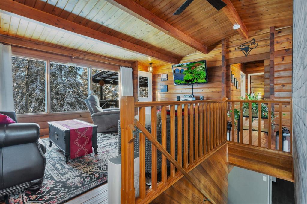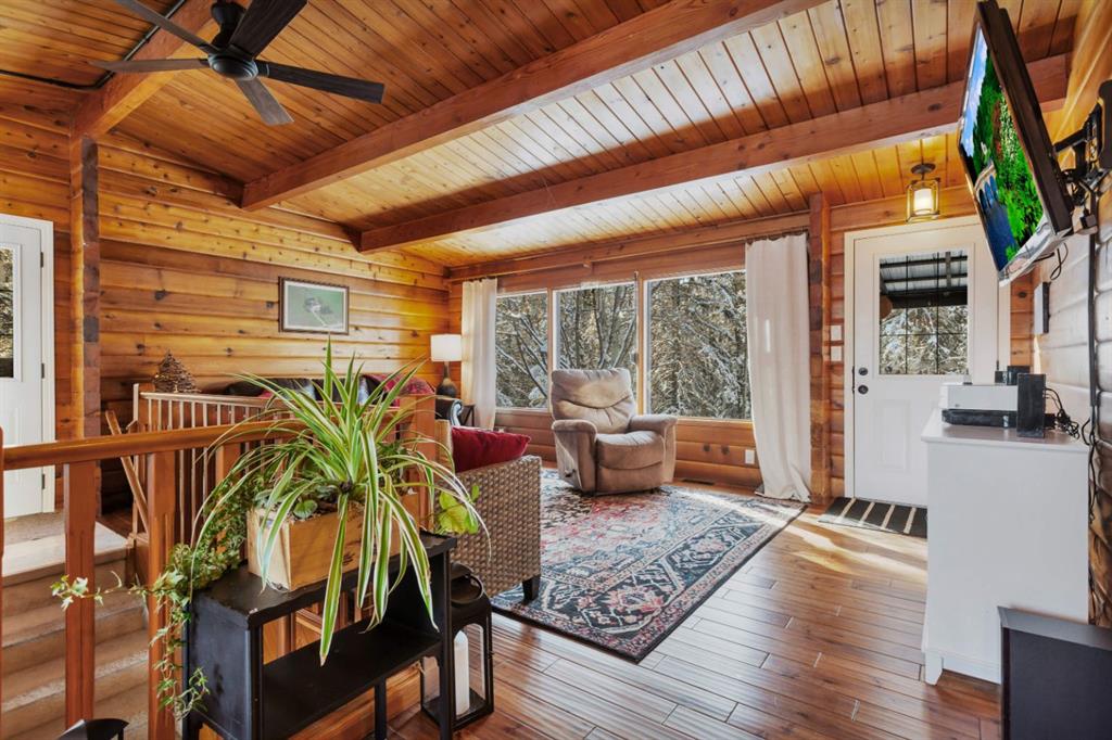 If you’re looking to call the West Country home, you won’t want to miss this private and beautifully treed 5.5 acre property located just 10 km west of Rocky. The main level features cedar log construction with vaulted ceilings, the kitchen flows into the dining area and the cozy living room offers beautiful views to the back yard. Three bedrooms, a fully renovated bathroom complete with a spacious custom tile shower and newly added main floor laundry. The walkout basement offers a versatile family living space, flex room for guests, crafts, home office or hobbies, optional downstairs laundry, a 3-piece bathroom, and ample storage/workshop space. A large, partially covered wrap-around deck is the perfect place to enjoy your morning coffee, watch the wildlife and relax while soaking in the peaceful surroundings. Recent upgrades ensure effortless living, including new shingles, furnace, central air, exterior and interior doors, basement windows, and a new septic tank and lines. The 24' x 26' double detached garage is fully finished and heated, and there is also an RV site further down the driveway. The beautifully landscaped yard features mature trees and trails. Fibre high-speed internet has been installed, making it easy to work from home while enjoying the peaceful country setting.