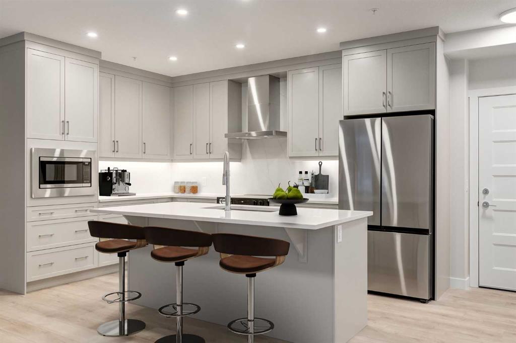 The Whitney is an impeccably designed boutique condo building, situated in the esteemed Aspen Park/Springbank Hill area. Your new home graces one of the finest locations, nestled beside a protected environmental reserve (ravine) that winds through the community, offering extensive recreational walking paths. The Whitney boasts stunning mountain, prairie, and community vistas, with Aspen Landing just a 5-minute stroll away and Downtown a quick 10-minute drive. Your new 2 bed/2 bath LIBERTY unit offers 1187 sq.ft. of architectural measurement (1093 sq.ft. RMS measurement) of living space, inclusive of en-suite laundry, open concept living, a large patio, air-conditioning, titled underground parking (additional stall is available for purchase), walk-in separate storage unit, luxury vinyl plank flooring, quartz counters, custom cabinetry, designer tile, and stainless appliances. Developed by Cove Properties, one of Calgary’s most respected multifamily builders known for their dedication to quality craftsmanship. An annual HOA fee is anticipated, though not yet finalized. Please note that all photos shown are from Cove Properties' previous show suites and are intended to illustrate the level of interior finishes that can be expected at The Whitney. BUILDING IS COMPLETE AND MOVE IN READY! This is a limited opportunity to own in one of Calgary’s most desirable southwest communities. Contact your agent today to arrange a private viewing of the unit.