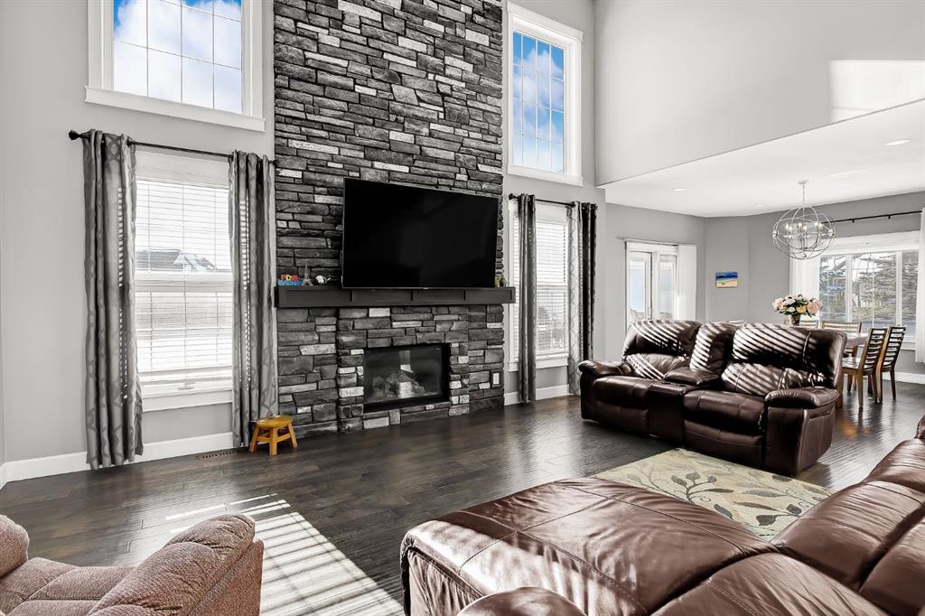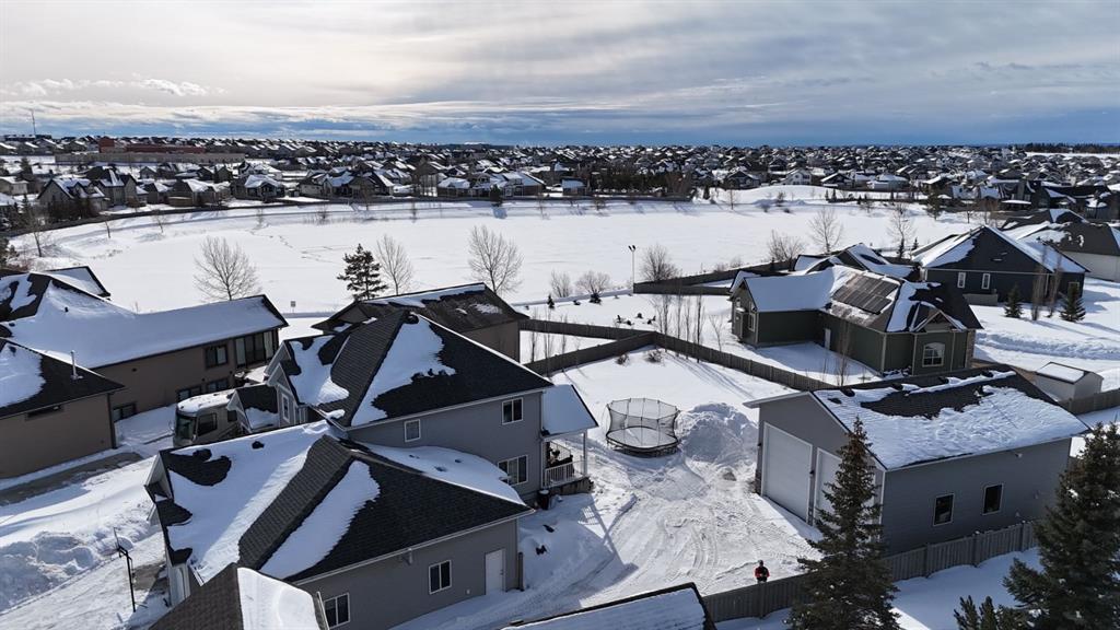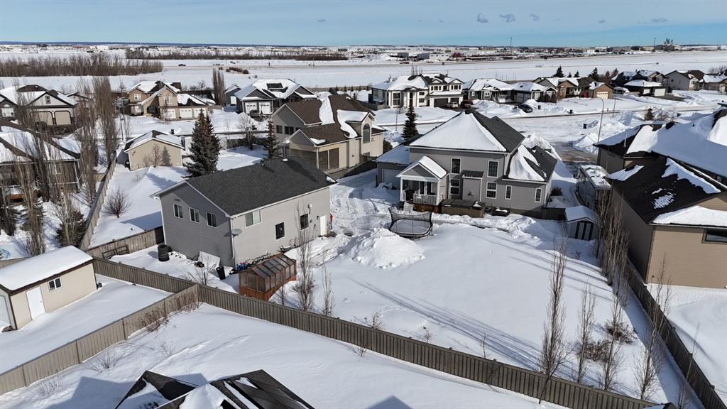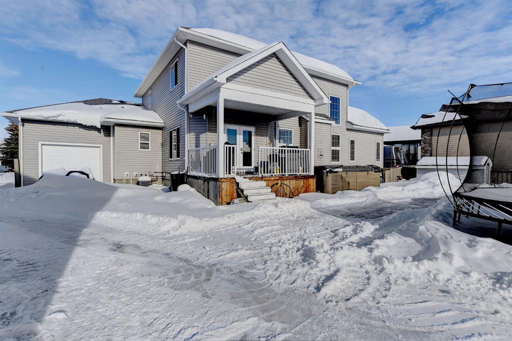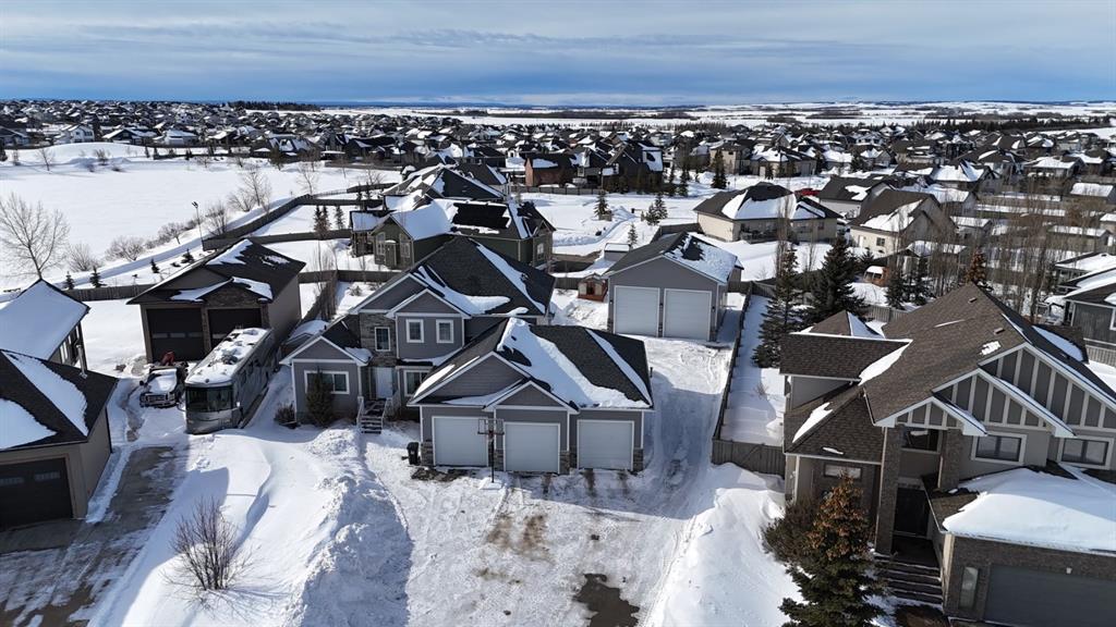 Stunning Custom Two-Storey with Lake Views on a Private Cul-de-Sac Welcome to this beautifully crafted, fully developed 6 bedroom, 4 bathroom custom two-storey home offering stunning lake views and exceptional living space throughout. Thoughtfully designed for both comfort and entertaining, this impressive residence blends luxury finishes with outstanding functionality. The heart of the home is the chef-inspired kitchen featuring a large island, wine fridge, stylish backsplash, and abundant cabinetry—perfect for cooking and gathering. The spacious living room showcases soaring 18-ft tray ceilings and a dramatic floor-to-ceiling stone fireplace that creates a warm and inviting atmosphere. The main floor primary suite is a true retreat, complete with custom closet built-ins and a luxurious ensuite featuring dual vanities, a soaker tub, private laundry, and a separate walk-in shower. Upstairs you’ll find three additional bedrooms and second laundry area. The fully developed lower level is designed for entertaining and relaxation, featuring a custom wine room, built-in bar, two additional bedrooms, a large family room, gym area, and a spa-like bathroom with steam shower. Outside, the property continues to impress with a 38’ x 38’ heated triple garage with 9-ft doors and drive-through bay, paved RV parking with exterior waste hookup, and a 0.52-acre fully fenced pie-shaped lot located in a quiet cul-de-sac. Enjoy the beautifully landscaped yard with turf lawn, stamped concrete patio, greenhouse, and storage shed. Additional highlights include central air conditioning, high-efficiency furnace, irrigation system, and a massive 40’ x 30’ heated shop with 14-ft doors. The shop also features a studio apartment complete with bathroom and kitchenette, offering excellent flexibility for guests, workspace, or rental potential. A rare opportunity offering luxury, space, and exceptional amenities in a prime location.