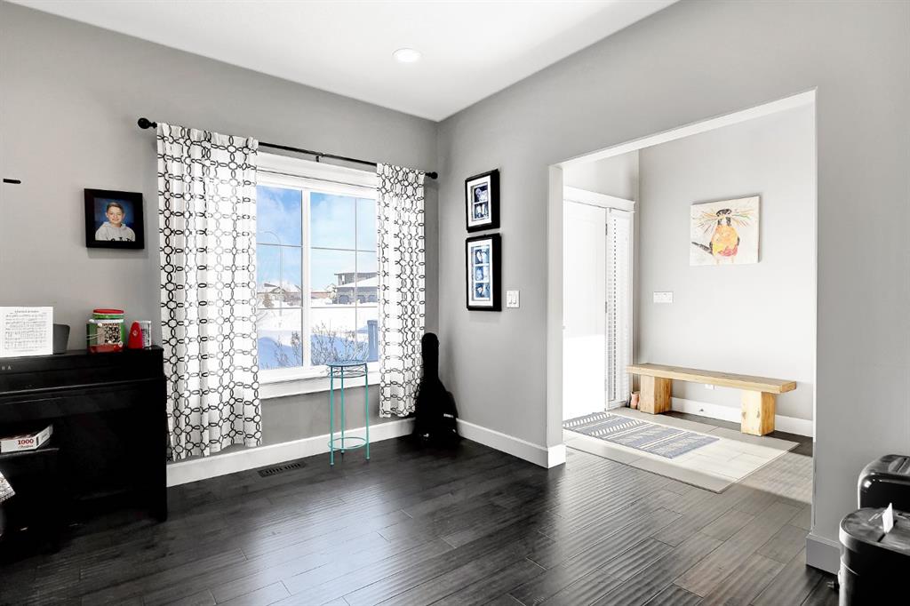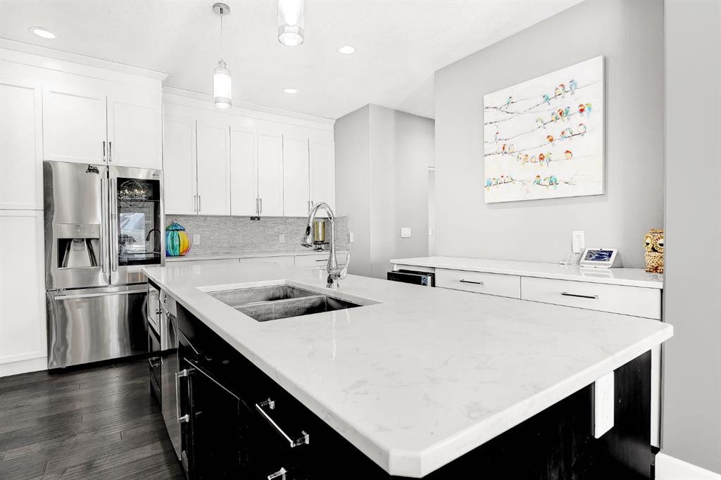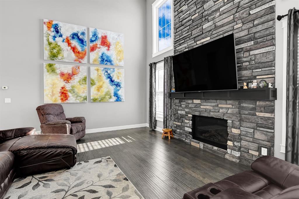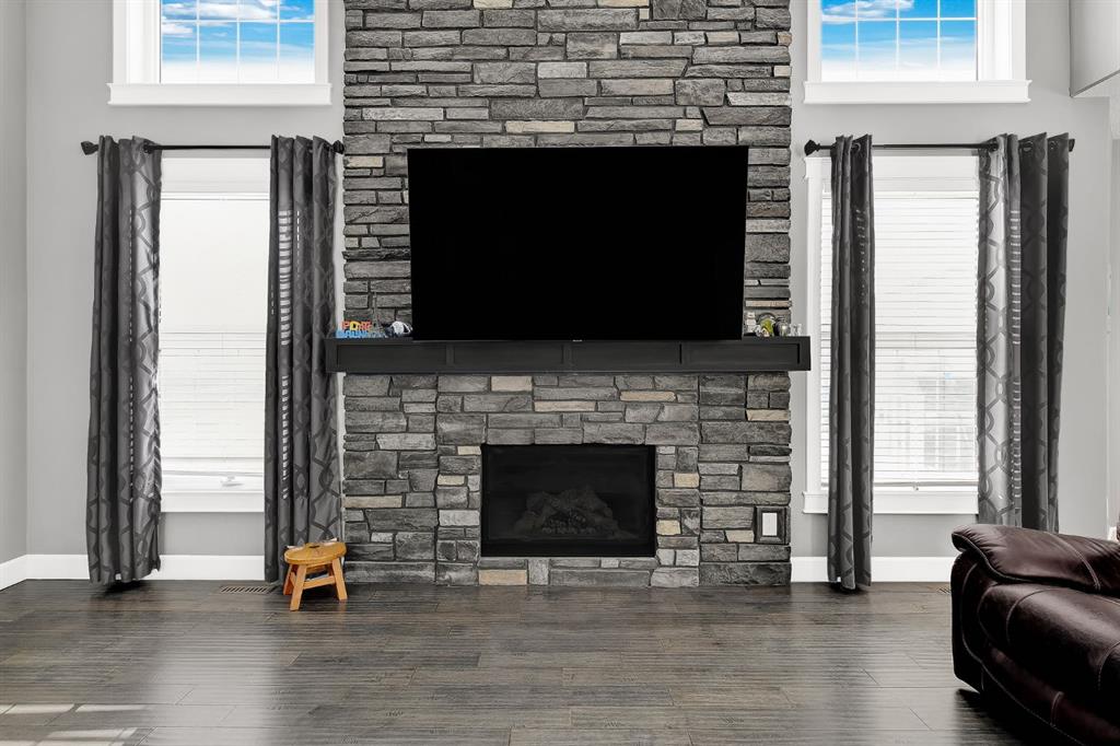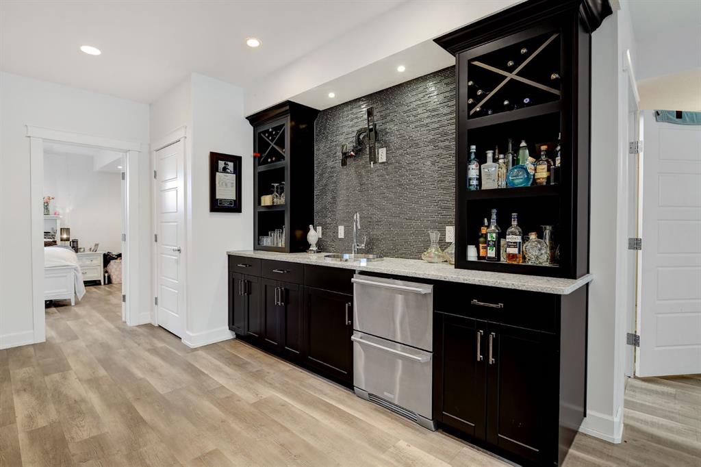 Stunning Custom Two-Storey with Lake Views on a Private Cul-de-Sac Welcome to this beautifully crafted, fully developed 6 bedroom, 4 bathroom custom two-storey home offering stunning lake views and exceptional living space throughout. Thoughtfully designed for both comfort and entertaining, this impressive residence blends luxury finishes with outstanding functionality. The heart of the home is the chef-inspired kitchen featuring a large island, wine fridge, stylish backsplash, and abundant cabinetry—perfect for cooking and gathering. The spacious living room showcases soaring 18-ft tray ceilings and a dramatic floor-to-ceiling stone fireplace that creates a warm and inviting atmosphere. The main floor primary suite is a true retreat, complete with custom closet built-ins and a luxurious ensuite featuring dual vanities, a soaker tub, private laundry, and a separate walk-in shower. Upstairs you’ll find three additional bedrooms and second laundry area. The fully developed lower level is designed for entertaining and relaxation, featuring a custom wine room, built-in bar, two additional bedrooms, a large family room, gym area, and a spa-like bathroom with steam shower. Outside, the property continues to impress with a 38’ x 38’ heated triple garage with 9-ft doors and drive-through bay, paved RV parking with exterior waste hookup, and a 0.52-acre fully fenced pie-shaped lot located in a quiet cul-de-sac. Enjoy the beautifully landscaped yard with turf lawn, stamped concrete patio, greenhouse, and storage shed. Additional highlights include central air conditioning, high-efficiency furnace, irrigation system, and a massive 40’ x 30’ heated shop with 14-ft doors. The shop also features a studio apartment complete with bathroom and kitchenette, offering excellent flexibility for guests, workspace, or rental potential. A rare opportunity offering luxury, space, and exceptional amenities in a prime location.