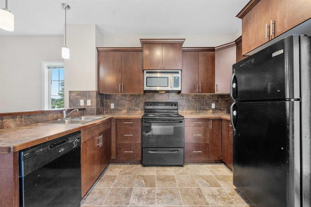 End Unit Townhome | Move-In Ready | Family Friendly Neighbourhood | Parking Stall | 2-Large Primary Bedrooms | 2-Full Bathrooms | 2-Half Bathrooms | Open Floor Plan | Breakfast Bar in Kitchen | Finished Basement | Rec Room | Basement Laundry | Built-in Shelving | Storage. Welcome to this spacious and well maintained 2-storey townhome with a finished basement boasting a total of 1683 SqFt throughout all 3 levels. The front door opens to a foyer with closet storage and views of the open floor plan main level. The living room is framed with windows that fill the space with natural light. The open floor plan living room and kitchen make it a great space to entertain friends. The kitchen is outfitted with a raised breakfast bar, laminate countertops, ample cupboard storage and black appliances. Just on the other side of the kitchen is the dining room has a door that leads to the backyard making indoor/outdoor living easy. The main level is complete with a 2pc bathroom. Upstairs holds 2 primary bedrooms each with an ensuite bathroom. The 1st primary bedroom is expansive with plenty of space for a large king size furniture set or even a bed & crib. This primary has a 4pc ensuite bathroom with a tub/shower combo and a good size closet. The 2nd primary has a walk-in closet and 3pc ensuite bathroom with a walk-in shower. Downstairs, the finished basement has a large open space rec room great for an evening unwind or a space for overnight guests. The basement holds the washer/dryer set tucked into a hall closet not to take up any living space. This lower level has plenty of storage and has a 2pc bathroom. This home is located in a family friendly complex and is a minutes walk to all shopping, transit and parks and playgrounds. Hurry and book a showing at this incredible home today!