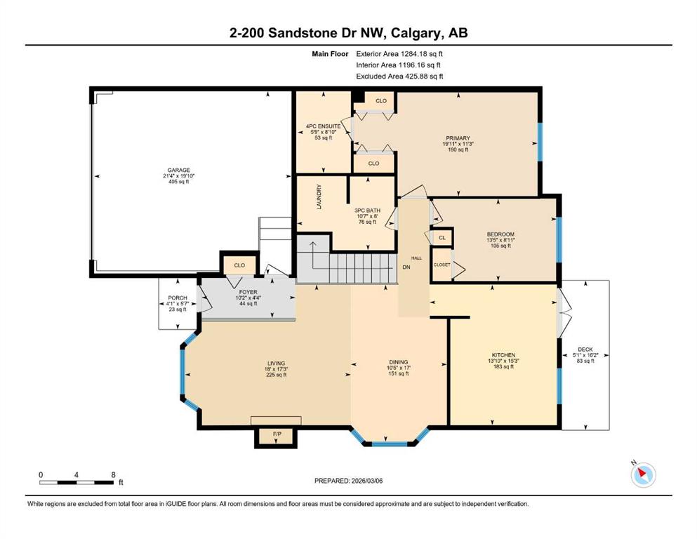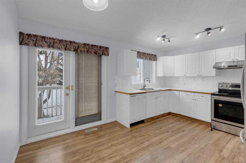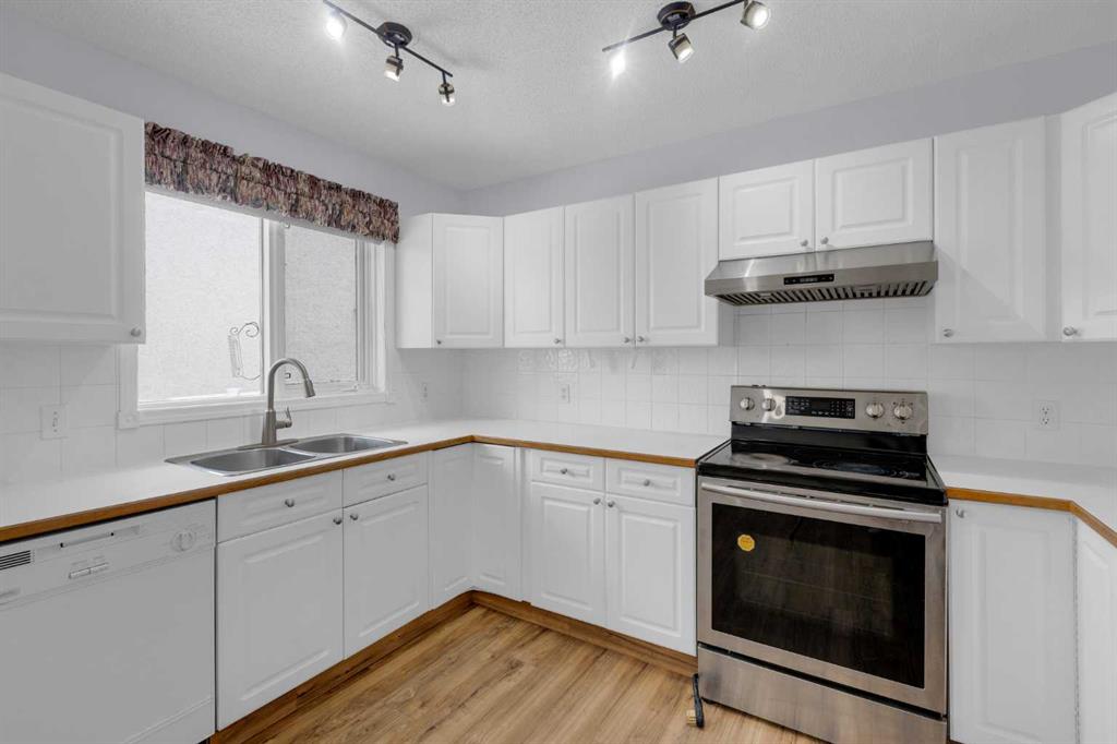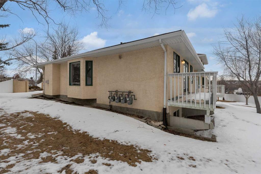 This 1,196 sq. ft. bungalow is tucked away in a quiet, friendly cul-de-sac in the sought-after community of Sandstone. The open floor plan features vaulted ceilings that span the living and dining areas, creating an airy feel. Large windows flood the living room with natural light, while the formal dining room boasts charming bay windows overlooking a private side yard. The kitchen offers ample cabinetry and direct access to a 16' x 5' southeast-facing deck. The main floor includes a spacious primary suite with double closets and a 4-piece ensuite, plus a second bedroom and an additional 3-piece bath with integrated laundry. Peace of mind comes standard, as all Poly-B piping has been replaced. The undeveloped basement, featuring high ceilings and rough-in plumbing, is a blank canvas for your finishing touches. Complete with an insulated double garage and a large lot near transit and shopping, this home is an exceptional find.