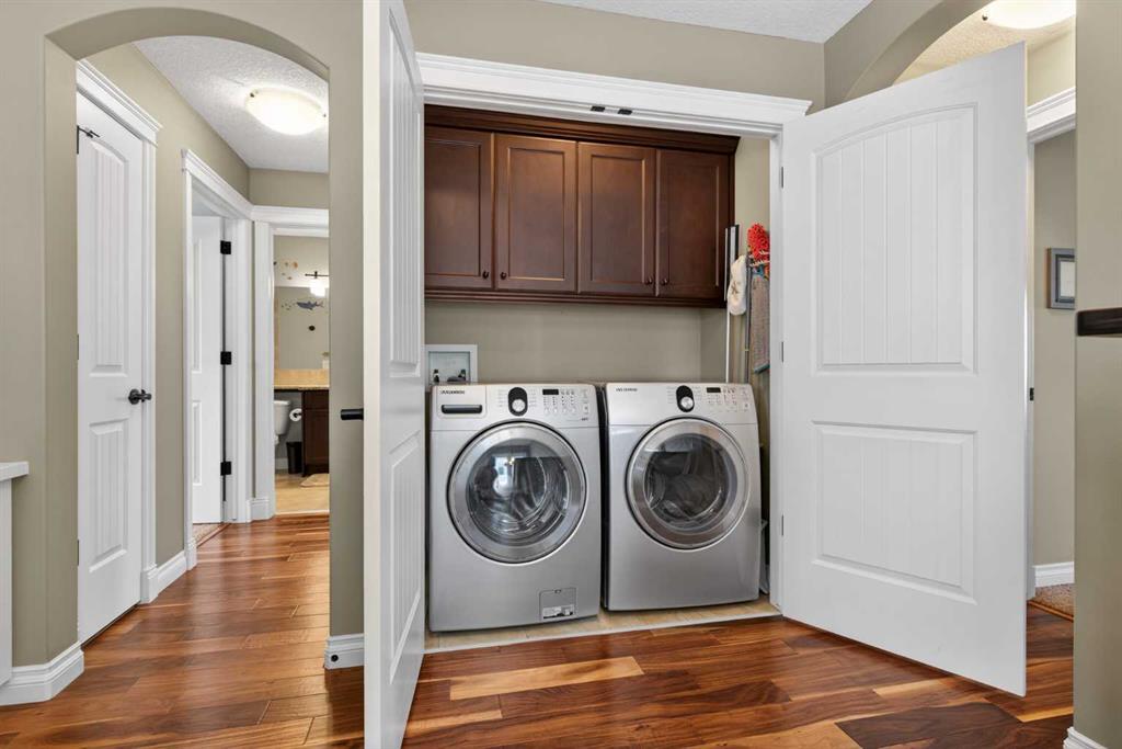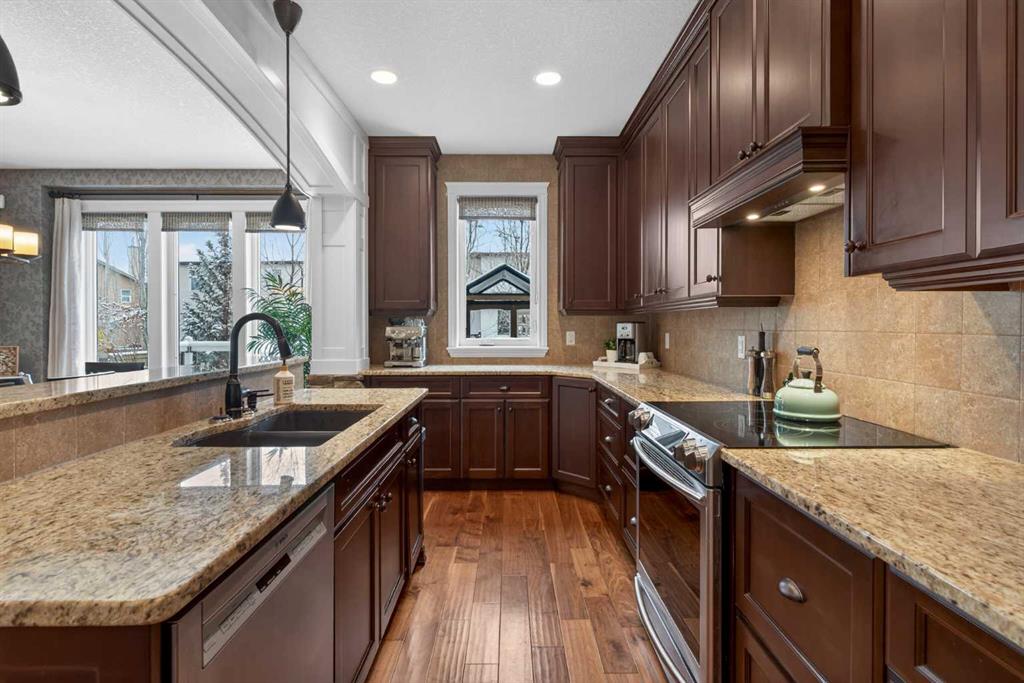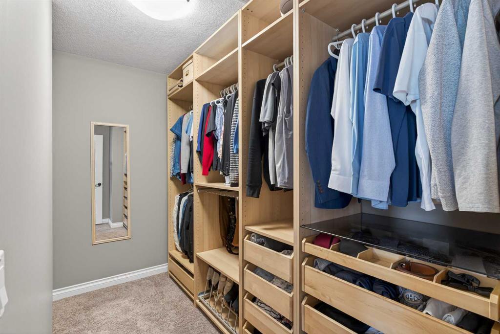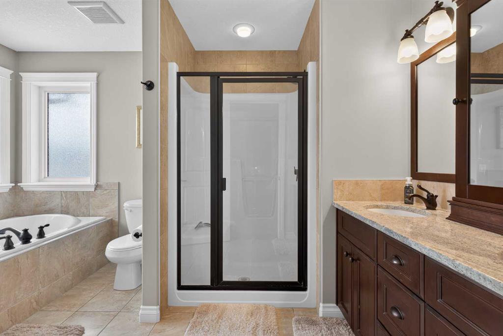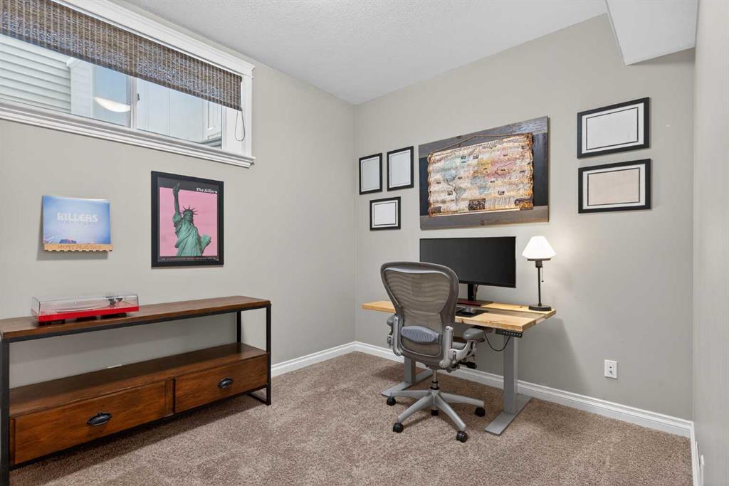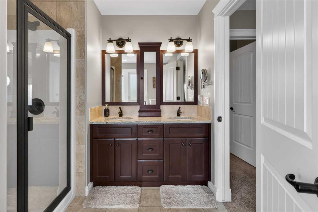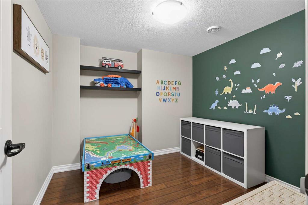Everything you’ve been looking for in your next home is here in this stunning executive two storey in Cooper’s Crossing…4 BEDROOMS & CENTRAL AIR, highly sought-after HEATED 3 CAR GARAGE, 2 gas fireplaces & wonderful outdoor living space for the family to enjoy! This extensively upgraded custom home boasts WALNUT & ACACIA HARDWOOD FLOORS, fully-loaded chef’s kitchen with GRANITE COUNTERTOPS, 3.5 bathrooms & is WALKING DISTANCE to neighbourhood schools & leisurely stroll to Discovery Park. Complemented by expansive 9ft ceilings & wide-plank walnut flooring, you will truly be impressed by the elegant feel of the main floor with its inviting living room with STONE-FACING FIREPLACE accented by built-in cabinets, airy open concept dining room with picture windows looking out into the backyard & beautiful kitchen with full-height cabinets & island with raised bar, GRANITE COUNTERS, walk-in pantry & sleek stainless steel appliances including BOSCH DISHWASHER & Samsung stove/convection oven. Upstairs there are 3 fantastic bedrooms & 2 full bathrooms – highlighted by the owners’ retreat with vaulted ceilings, big walk-in closet & luxurious soaker tub ensuite with double vanities & separate shower. One of the kid’s bedrooms also has built-in shelving & walk-in closet. Completing the 2nd floor is an OFFICE ALCOVE/LOFT with built-in desk & laundry with front-loading Samsung washer & dryer. The lower level – with 9ft ceilings, is beautifully finished with a 4th bedroom & full bath, PLAYROOM, loads of storage space & wonderful rec room with ANOTHER STONE-FACING FIREPLACE. The 3 CAR GARAGE…tandem-style…is insulated, drywalled & HEATED, with built-in shelving & 1 bay currently set up as an awesome HOME GYM. For your outdoor pleasure, the backyard is fully fenced & landscaped, complete with STONE PATIO WITH FIREPIT, fruit trees (including sour cherry), play structure for the kids & partially covered 300+sqft DECK with gas BBQ line. Additional features include NEW FURNACE (2025) & CENTRAL AIR (2022), main floor mudroom with built-in lockers & walk-in closet, grand foyer with soaring 18ft ceilings, upgraded lighting & fixtures, wrought-iron spindles & granite counters in all the bathrooms. THREE SCHOOLS ARE ALL WITHIN WALKING DISTANCE…Cooper’s Crossing School, St. Veronica School & St. Martin de Porres High School. And only minutes away is COOPER’S TOWN PROMENADE…featuring an open-air stage & firepit, office space, restaurants & a wide variety of shopping (anchored by Shopper’s Drug Mart & Save-On-Foods). Prime location in this highly-desirable Southwest Airdrie neighbourhood within easy reach of the Sierra Springs Shopping Centre & quick access to 40 Avenue & the QE2, Cross Iron Mills, Costco & Calgary.