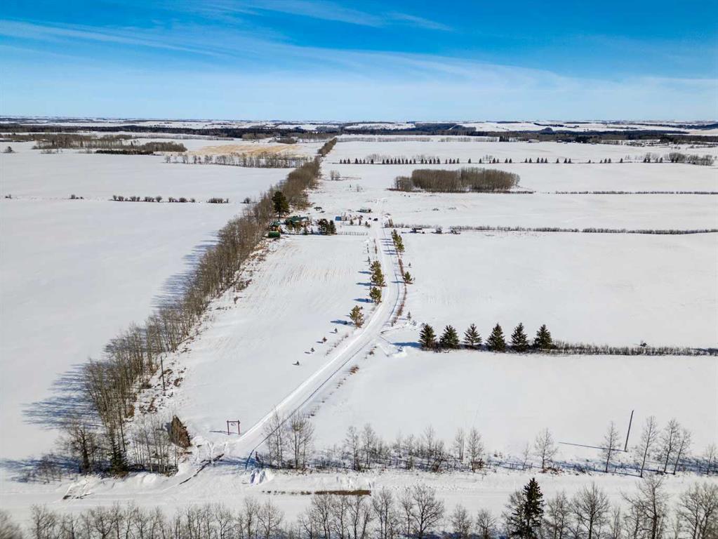 Escape to the country with 146 acres of your own to call home! Bring your dreams and your animals and unlock the rural lifestyle you've imagined. This property features a fully serviced cozy cabin with two bedrooms, one bath plus a large deck perfect for savoring your morning coffee. This land welcomes you with an winding driveway lined by trees and hedges. Caragana, spruce and lilac make up the hedge rows, crabapple , mountain ash and choke cherry trees are found in the yard-site. With a pasture and crop mix +/-100 crop, +/-42 pasture), this is the ideal setting for cattle or horses! This property features a great well, new septic system and all the services so you can start to build without extra upfront costs. Don't miss this rare opportunity to own a versatile, development -ready property in this sought after setting. Schedule a private showing today!