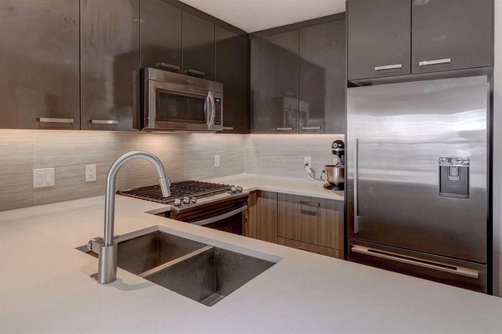 Experience the ultimate urban lifestyle in this exceptional TOP FLOOR BRIDGELAND condo, featuring 1 bedroom, 1 bathroom, insuite laundry and a versatile DEN/FLEX SPACE - perfect for modern living. Welcome to #311, 510 Edmonton Trail NE, a stylish condo in the vibrant community of Bridgeland. This modern home features an open-concept layout with large windows that fill the space with natural light. The contemporary kitchen boasts quartz countertops, a spacious island, and stainless steel appliances, seamlessly flowing into the cozy living area. Step out onto your private patio, an ideal spot for relaxing or entertaining. The generously sized bedroom includes a walk-through closet that leads to a well-appointed bathroom, offering both comfort and functionality. This condo also offers HEATED, underground TITLED PARKING, convenient visitor parking within the parkade, and an assigned STORAGE LOCKER for larger or seasonal items. Experience an active lifestyle in this professionally managed building, which boasts a FITNESS GYM, secure BIKE STORAGE, and a tranquil private courtyard. With accessible elevators, you'll enjoy seamless movement throughout the building and can easily explore Bridgeland’s vibrant, growing community, known for its pedestrian-friendly streets and lush green spaces. Take a stroll or bike ride along the scenic Bow River pathway and love being mere minutes from trendy cafes, remarkable restaurants, and chic shops. Don’t miss the opportunity to make this beautiful home your own—schedule a viewing today!