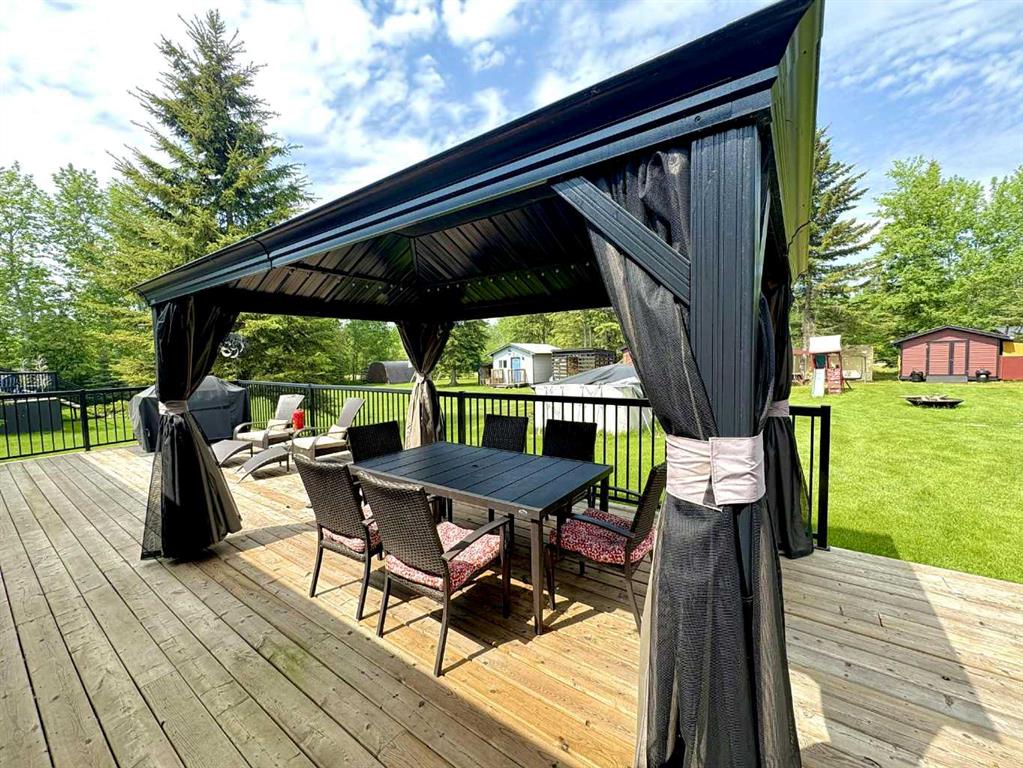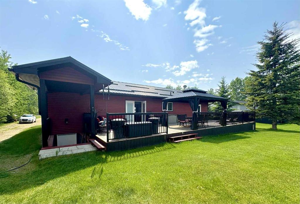 Welcome to Your Dream Home in Blais Resort! Step into modern comfort and style with this beautifully designed 1,648 sq ft home, ideally located in the peaceful Blais Resort just minutes from the boat launch, perfect for all your summer adventures. This home features a bright and spacious open-concept layout with vaulted ceilings that add a welcoming feel. The kitchen is a standout, offering a huge island, plenty of cupboards, and ample space for cooking, dining, and entertaining. The living room is warm and inviting with a cozy gas fireplace, making it the perfect spot to unwind. Step through the French doors onto a 52’ X 16’ large deck with a gazebo, ideal for enjoying your morning coffee, hosting BBQs. The primary bedroom includes its own ensuite bathroom and a walk-in closet, while two additional bedrooms and a second full bathroom provide comfort and convenience for family or guests. Outside, the property features a massive 44' x 36' garage/shop, complete with a bedroom, kitchen, bathroom and in-floor heat. Two storage sheds (24' x 12' and 12' x 12') offer plenty of room for tools, equipment, and outdoor gear. Plus, there are four RV plug-in stations, offering flexibility for visitors. Whether you're looking for a year-round home or a vacation getaway, this property offers the perfect blend of space, comfort, and location in a quiet, friendly community near the lake. Don’t miss the opportunity to step into the lifestyle you’ve been dreaming of-this home has it all.