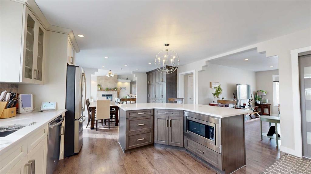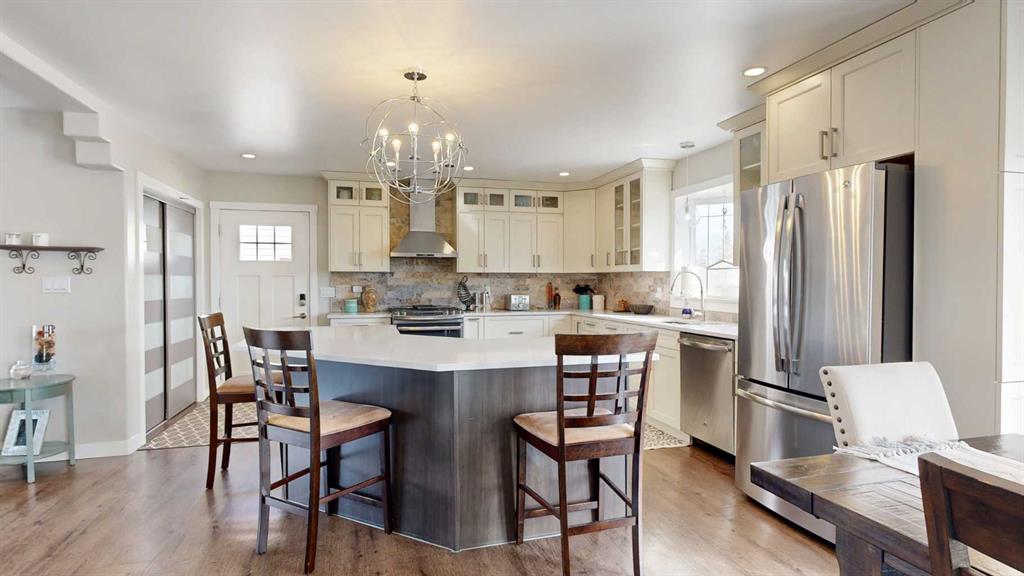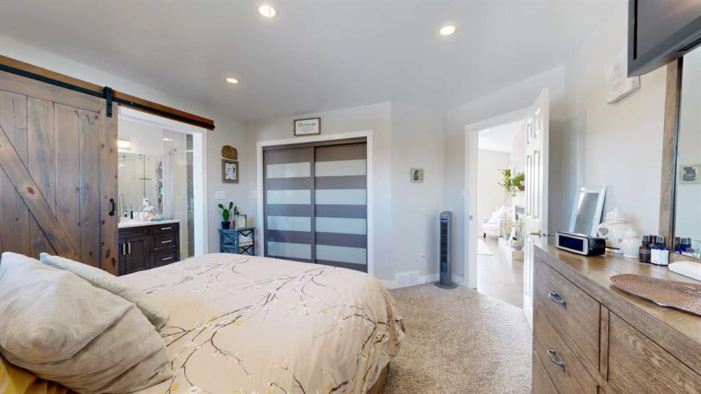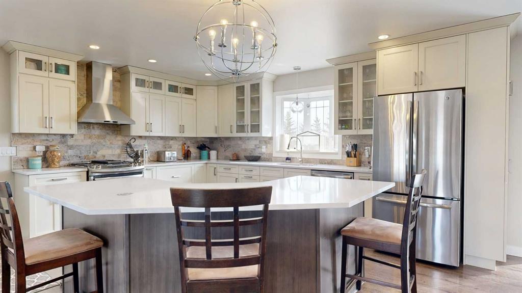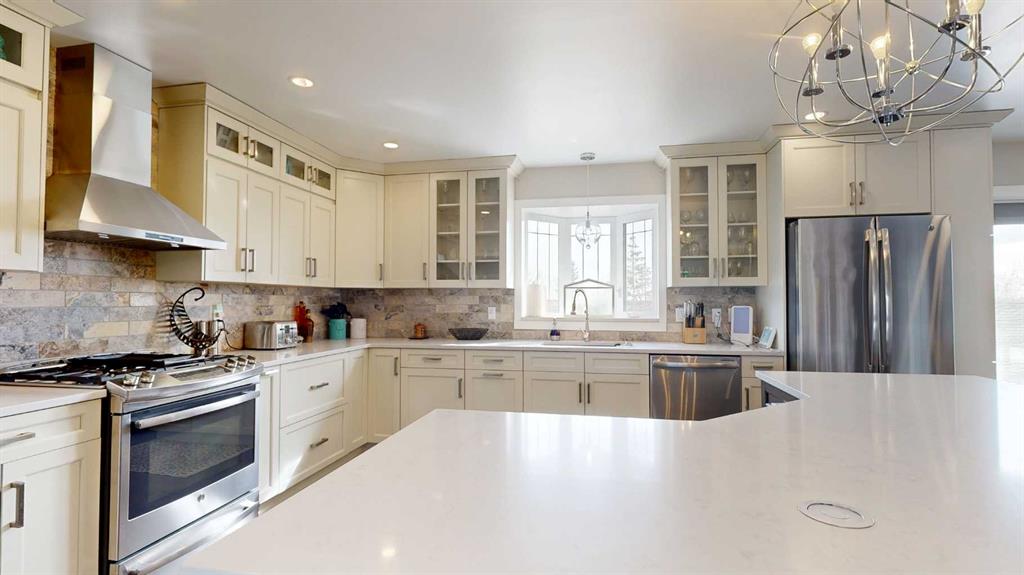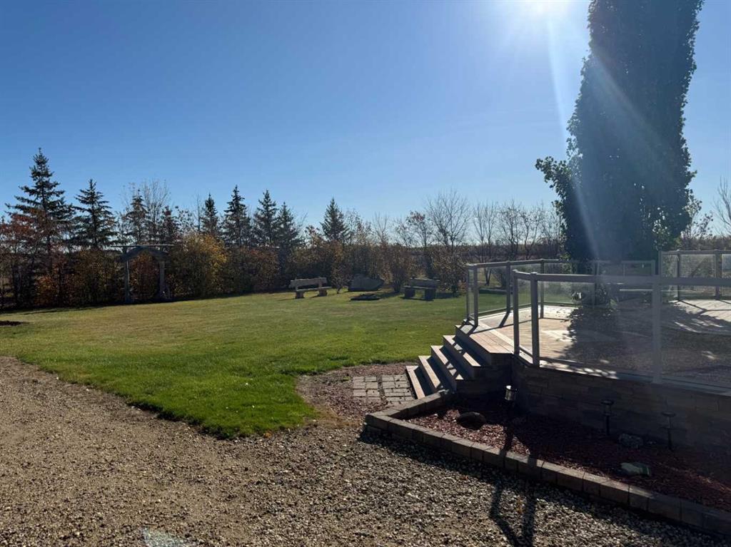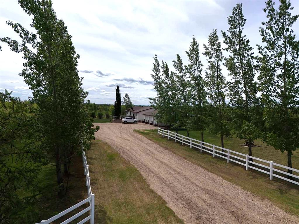 Experience the ultimate balance of tranquil country living with City amenities right at your fingertips. Situated outside of any subdivision, this meticulously kept 8+ acre estate offers an incredible lifestyle with a fully-developed five-bedroom, three-bathroom home, a dream triple garage, and a massive commercial-grade shop. Extensively renovated just 7 years ago, the home is a modern masterpiece featuring beautiful flooring, quartz countertops, and attractive cased openings. The great room highlights a spectacular floor-to-ceiling tiled fireplace, while a second upstairs living room provides additional space to relax or entertain guests. The stunning kitchen is designed to impress with contemporary two-toned cabinetry, a travertine backsplash, a large U-shaped island with seating, and high-end stainless steel appliances. When the day is done, retreat to the comfort of the primary bedroom, complete with stylish barn door leading to a beautiful ensuite with a walk-in shower and deep soaker tub. The main level also boasts 2 more bedrooms, the lovely main bathroom and a practical & thoughtfully designed, back-door mudroom. The fully finished lower level offers two generously sized bedrooms, an exquisite bathroom, massive family room with flexible space for a gym, media centre or play area, a premium laundry room with sink, multiple cabinets & easily accessible raised appliances, and to finish it all off, a sizeable storage room. The interior living area spills effortlessly outside onto the magnificent two-tiered composite deck with eye-catching glass and aluminum railing. Host guests utilizing the built-in brick outdoor cooking area with a BBQ and fridge nook, all overlooking a highly private yard framed by a variety of planted, mature trees providing a stellar windbreak, plus crisp white fiberglass fencing adds to the overall picture-perfect setting. Just steps from the home's side door, is the detached, heated & spotless triple garage which easily accommodates large pickup trucks. For business owners, the massive 40’ x 50’ shop includes 14’ x 14’ overhead doors, a heavy-duty concrete floor, a dedicated second driveway, and a locking gate. Underground power being run to shop once ground thaws. Equestrian and hobby farm enthusiasts will also appreciate the small fenced area, metal animal shelter, garden shed, and dedicated tack and feed sheds, with plenty of room to expand the pasture. Located just west of the Bear Creek Golf Club and east of Hughes Lake, this exceptionally clean property shows absolute pride of ownership. View the 3D Tour and contact a REALTOR® today to schedule your private viewing!