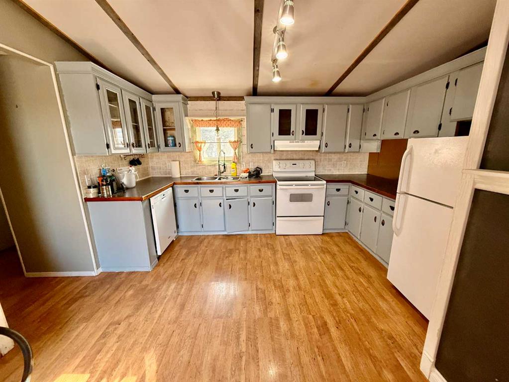 Located in the Village of Amisk, this 1,184 sqft. mobile home features 3 bedrooms, bright & open primary bedroom large enough to fit a king bed, 2 additional bedrooms with a 4pc. jack & jill bathroom. Modern & trendy open kitchen, dining area, living room with wood burning fireplace & separate laundry room. This home is situated on a nice sized lot with a 24 x 30 double detached heated garage.
