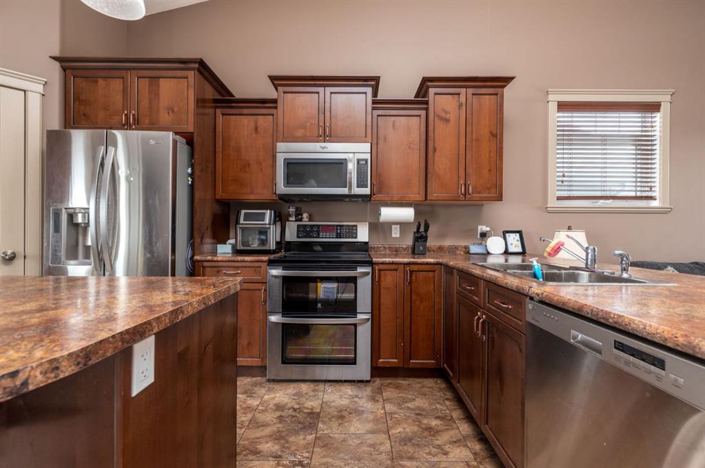 Welcome to this bi-level home in the desirable community of College Park, ideally located just steps from walking paths that lead directly to nearby schools and offering excellent accessibility throughout the area. Built in 2012, this home provides a functional layout in a family-friendly neighbourhood. The main floor features a bright open-concept design that allows for easy everyday living and entertaining. The kitchen offers an abundance of cabinetry, a convenient corner pantry, and plenty of workspace, flowing seamlessly into the dedicated dining area and spacious living room. The primary bedroom includes a walk-in closet and 3-piece ensuite, while a second bedroom completes the upper level. The fully developed basement adds valuable living space with a large family room and two additional bedrooms. Should you desire even more space, there is potential for a fifth bedroom. Outside, the fully fenced backyard features an oversized deck, perfect for relaxing or hosting gatherings. Additional highlights include a double attached heated garage and air conditioning for year-round comfort. This home offers great potential in a well-established neighbourhood close to schools, walking paths, and everyday amenities.