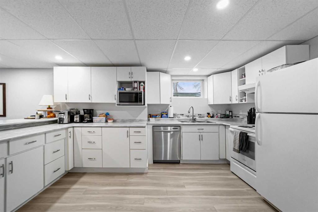 Welcome to this well-maintained, move-in-ready family home located in a quiet neighborhood in Camrose. The main floor features 3 bedrooms and 1.5 bathrooms, including a convenient 2-piece ensuite off the primary bedroom. The bright and functional kitchen offers newer appliances and a gas stove, while main floor laundry adds everyday convenience. The newly developed basement provides excellent additional living space with kitchen, living room, dining area, one bedroom, a full bathroom, plus a second set of laundry. Important mechanical updates include a new furnace (2024), central air conditioning (2024), and a newer hot water tank. Outside you’ll find a finished and heated double garage with built in storage, a large greenhouse, a fully fenced yard with patio, fruit trees, and a garden area. Alley access adds extra convenience and additional parking. This property shows nicely and offers a great combination of comfort, functionality, and outdoor space in a desirable, quiet location.