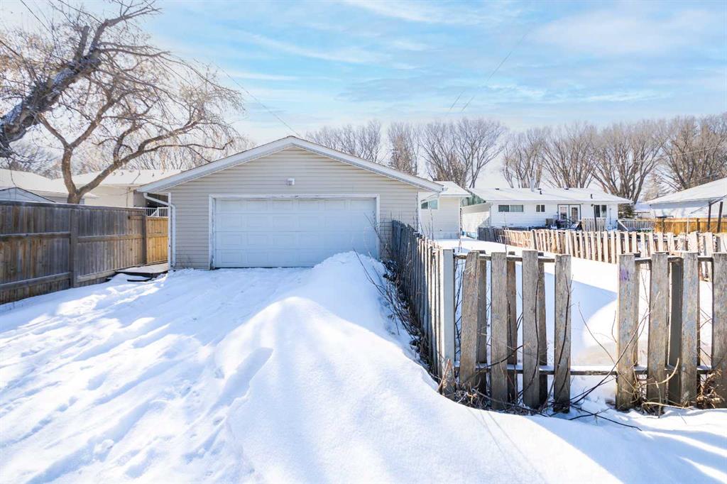 Welcome to this solid bungalow located on a beautiful tree-lined street in West Lloydminster. Offering 1,108 sq.ft. of living space, this home provides a functional layout with income potential and a double detached garage with convenient alley access. The main floor features a bright living room, kitchen and dining area, two bedrooms, and a full bathroom. One of the original bedrooms has been converted to a main floor laundry, adding everyday convenience. Some windows have been updated, and the home has been well-maintained over the years. The fully finished basement offers additional living space and includes two bedrooms, a bathroom, kitchen area, and a separate side entrance, creating excellent extended family living, multi-generational use, or future rental opportunities, subject to municipal approval. Situated on a fully fenced lot in an established neighbourhood, this property offers a great opportunity for buyers looking for a solid home they can move into and update over time. A practical home with space, flexibility, and long-term value in a mature Lloydminster location.