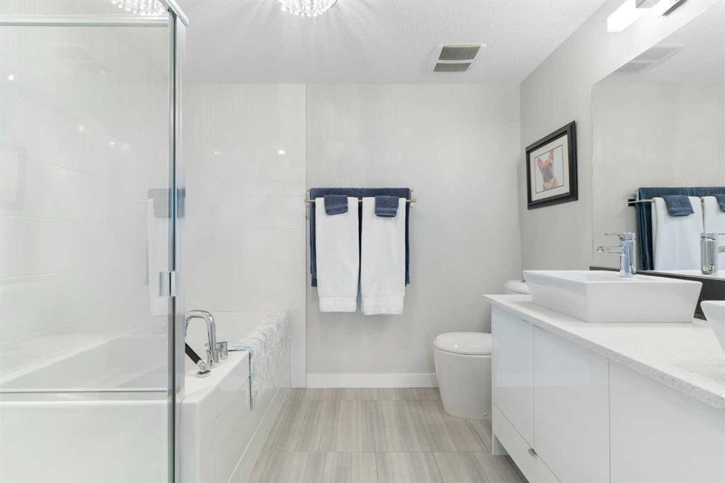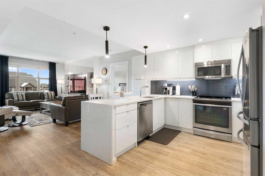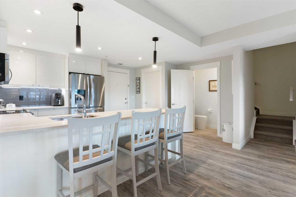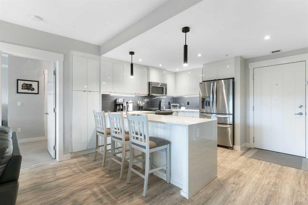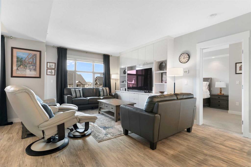 Welcome to Unit 227 at Valmont at Aspen Stone in the desirable community of Aspen Woods. This very well-maintained 1,434 sq ft unit offers a functional and comfortable layout over two levels, featuring carpet and vinyl plank flooring, updated lighting, and an abundance of natural light throughout the home. The main floor features a spacious kitchen that opens to the living and dining areas, creating an inviting space for everyday living and entertaining. The kitchen is finished with quartz countertops, quality appliances, and ample cabinetry, with additional drawers added for even more practical storage. The living room includes built-in shelving and cabinetry, and the balcony is equipped with a phantom screen, allowing fresh air to flow through while maintaining comfort. The dining area is generously sized and well suited for both everyday meals and gatherings. Also on the main floor is the first of two primary bedrooms. This room features a walk-through closet with built-in closet organizers leading to a private ensuite complete with a walk-in shower, soaker tub, and dual vanities. A powder room and a laundry room with additional storage complete the main level. The upper floor is dedicated to a second spacious primary suite, offering added privacy and flexibility. This level includes a large walk-in closet with built-in closet organizers and a well-appointed ensuite featuring a soaker tub and walk-in shower. Residents of Valmont at Aspen Stone enjoy a well-managed building with secure entry, a fitness room, bicycle storage, and a large storage area. The property is ideally located close to walking trails, shopping, and everyday amenities in Calgary. This unit also includes two titled parking stalls, both equipped with overhead heaters.