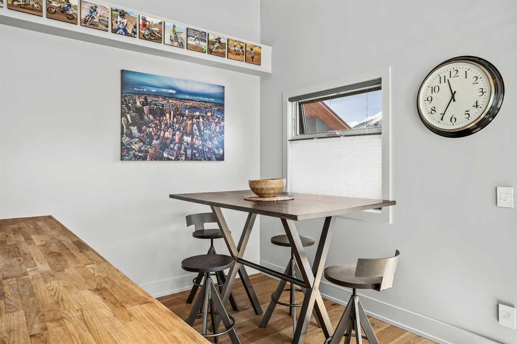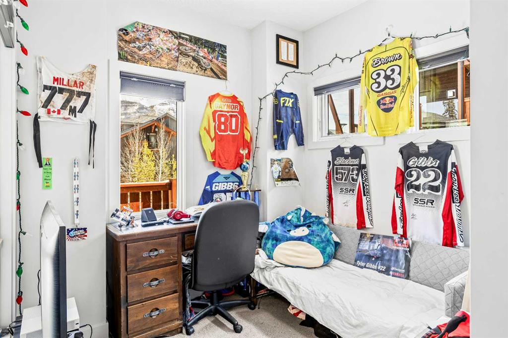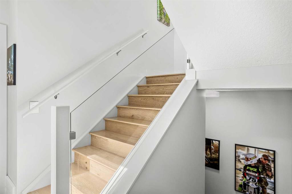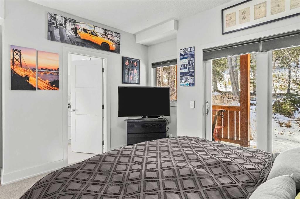 In a back row location, alongside a lovely treed hillside you'll find this well appointed, bright & spacious modern townhome. Over 3 storeys, with no one above or below you, this 1743 SF end unit provides serenity & pride of place in the Three Sisters of Canmore. On entry, vaulted ceilings & a glass bordered stairway leads up to the main level, or down to a handy flex space, laundry & single garage, perfect for active lifestyles. The middle floor offers 2 bedrooms, where the primary suite is an ideal respite with its own bath & generous closet space. A private balcony leads to the woods alongside. Upstairs, views are panoramic, where 3 walls of glass bring the outside in. A thoughtfully laid out kitchen sits together with the dining area & will be the heart of entertaining. Opposite, the living room inspires relaxation & calm under soaring ceilings. Finding inspired design which brings comfort & utility while also offering an environment that's "of" Canmore is a rare offering. We hope you agree!