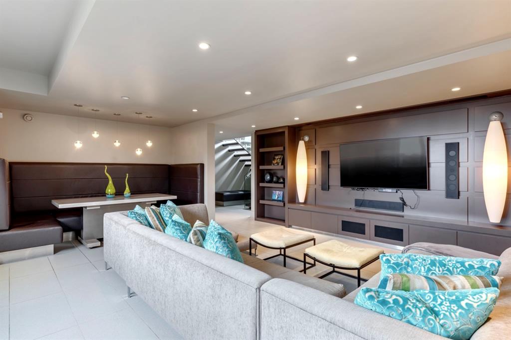 Architecturally inspired by Frank Lloyd Wright and designed to capture breathtaking west-facing views of the Rocky Mountains, this Built Green & Gold Certified, energy efficient estate is one of the most exceptional homes in Bearspaw. Thoughtfully curated on 2.91 pristine acres at the end of a quiet cul-de-sac, this 5 bedroom, 7 bath residence offers over 6,200 sq ft of developed living space, all warmed & cooled via advanced geothermal technology with in-floor heating. Striking floor-to-ceiling commercial grade windows frame the dramatic mountain vistas throughout the home. The chef’s kitchen is impeccably appointed with full Sub-Zero fridge & freezer, six-burner Wolf cooktop, custom hood fan, dual Wolf convection wall ovens, Wolf warming drawer, & Miele dishwasher & coffee station. A substantial quartz island provides abundant prep space, while the built-in kitchen table finished in Capolavoro honed granite adds warmth & texture. Entertain effortlessly as a 15.5-ft NanaWall opens to the spectacular backyard oasis, featuring a built-in Lynx BBQ, custom water feature, natural gas fireplace, & professionally designed landscaping with automated irrigation. The seamless indoor-outdoor flow is ideal for hosting gatherings large &/or small. The main level is completed by a spacious living area with dual-sided fireplace, a west-facing home office filled with natural light, formal dining room well suited for large gatherings, & a well-designed mudroom with extensive built-ins, laundry facilities, & a second floor laundry chute. A covered courtyard with motorized screens, sound system, & natural gas fire table creates an inviting outdoor lounge experience. A bright breezeway connects to the heated 4+ car garage, complete with dog wash & EV charging. The upper level hosts four generous bedrooms. The primary suite & fourth bedroom each feature private ensuites, while the second & third bedrooms share a Jack & Jill bath. The primary retreat rivals a six-star hotel, showcasing a custom built-in king bed & a Holt Renfrew-inspired walk-in dressing room. A thoughtfully designed kids’ media area completes this level. The walkout lower level is equally impressive, offering guest quarters, a media room with blackout blinds, custom banquet seating, wine room, wet bar, & a fitness studio with direct access to the private salt water hot tub. The spa-inspired bathroom features a rainfall steam shower & large infrared sauna, creating the perfect space for healthy detox & rejuvenation. A full Control4 smart home system provides advanced automation (lighting, audio video, temperature, blinds, irrigation, + security) all accessible via your smartphone. The property also has a radon mitigation system & reverse osmosis water throughout. Ideally located with quick access to the mountains, the airport, & the downtown core, this remarkable property offers a rare blend of architectural distinction, cutting-edge technology, & serene natural beauty, call for more information!